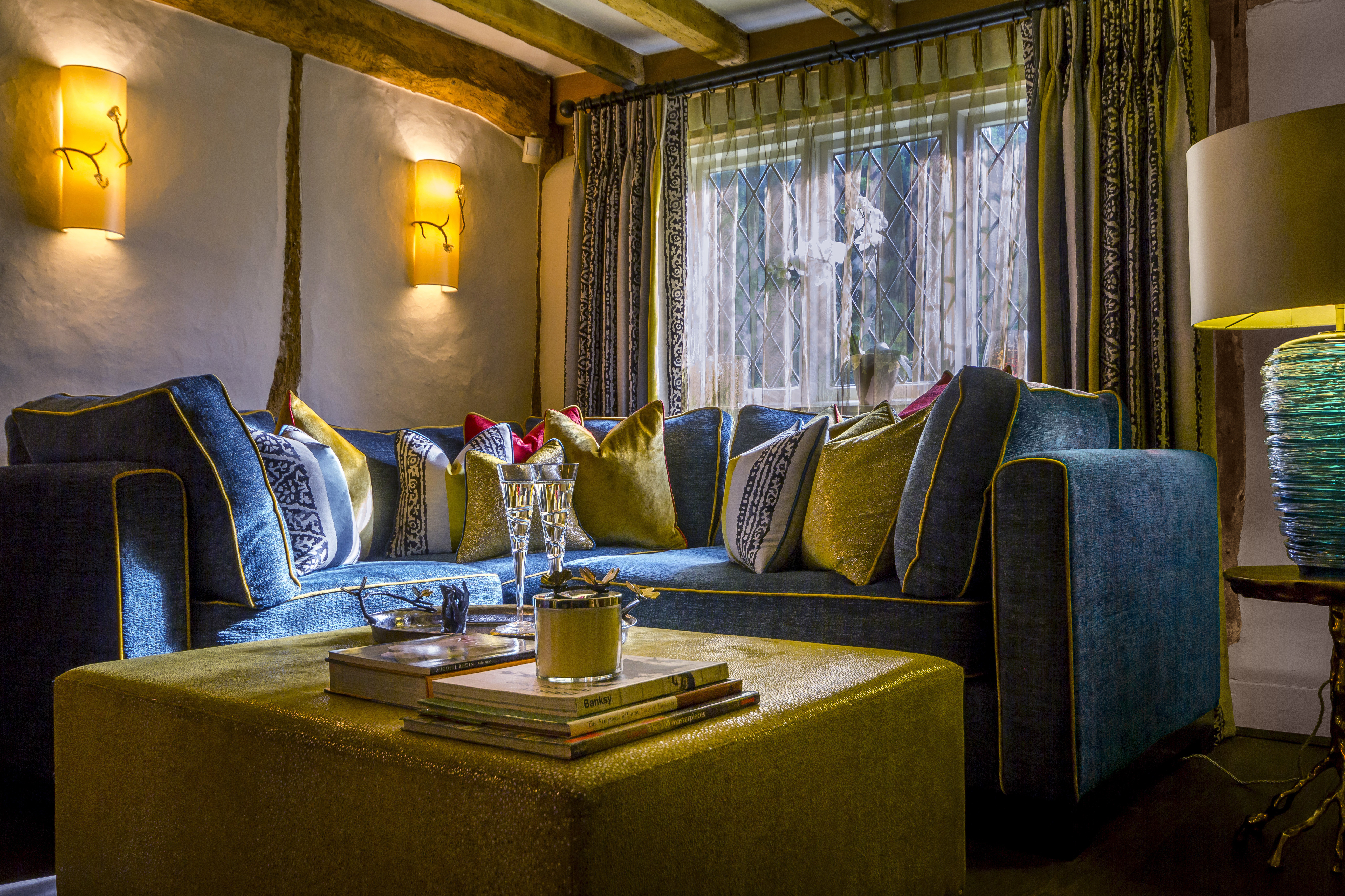 Full furnishings and decoration to this bar and lounge area of a cottage. Every project brings the design team new and diverse challenges. An example of this was for clients who owned a 16th Century grade II listed home.