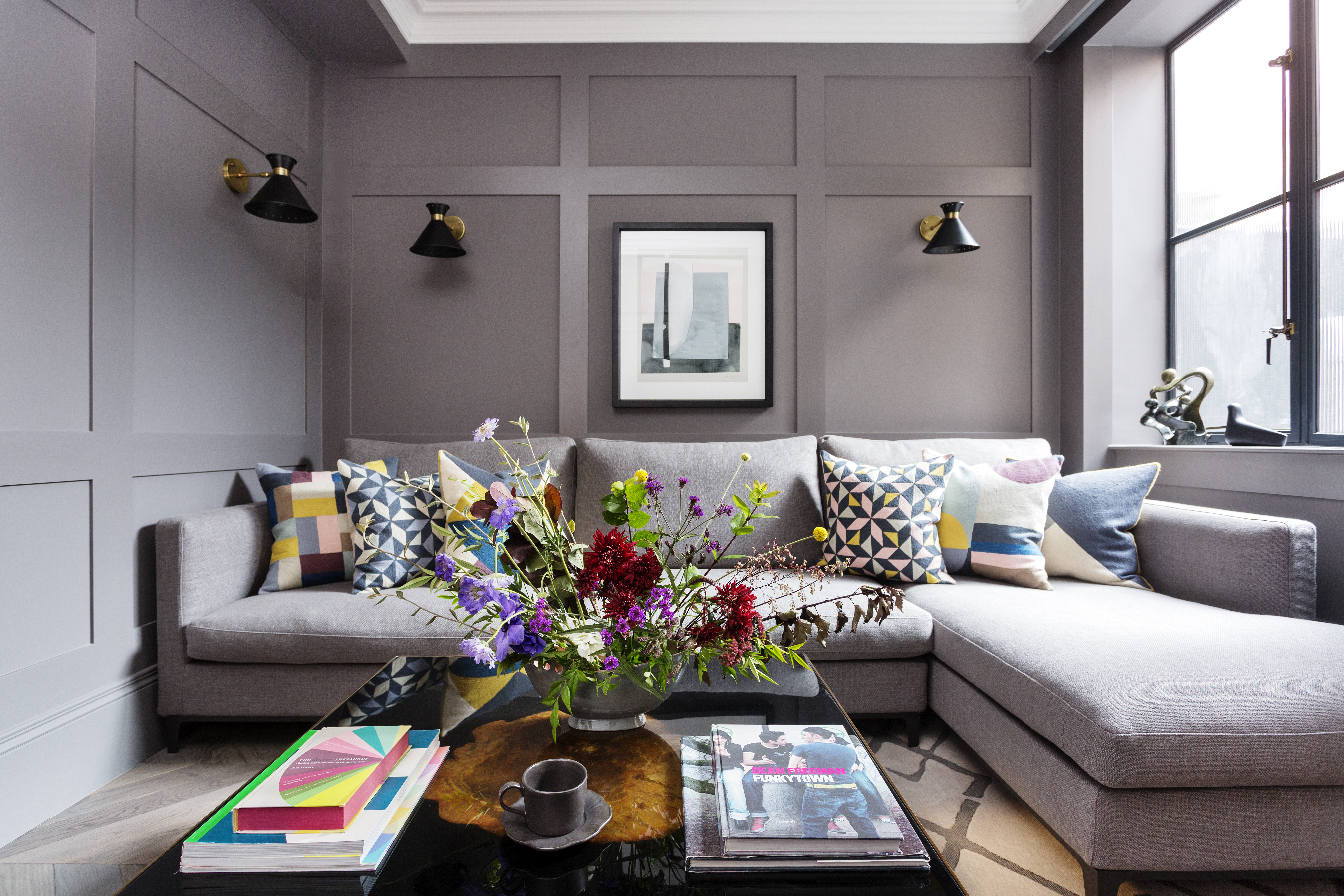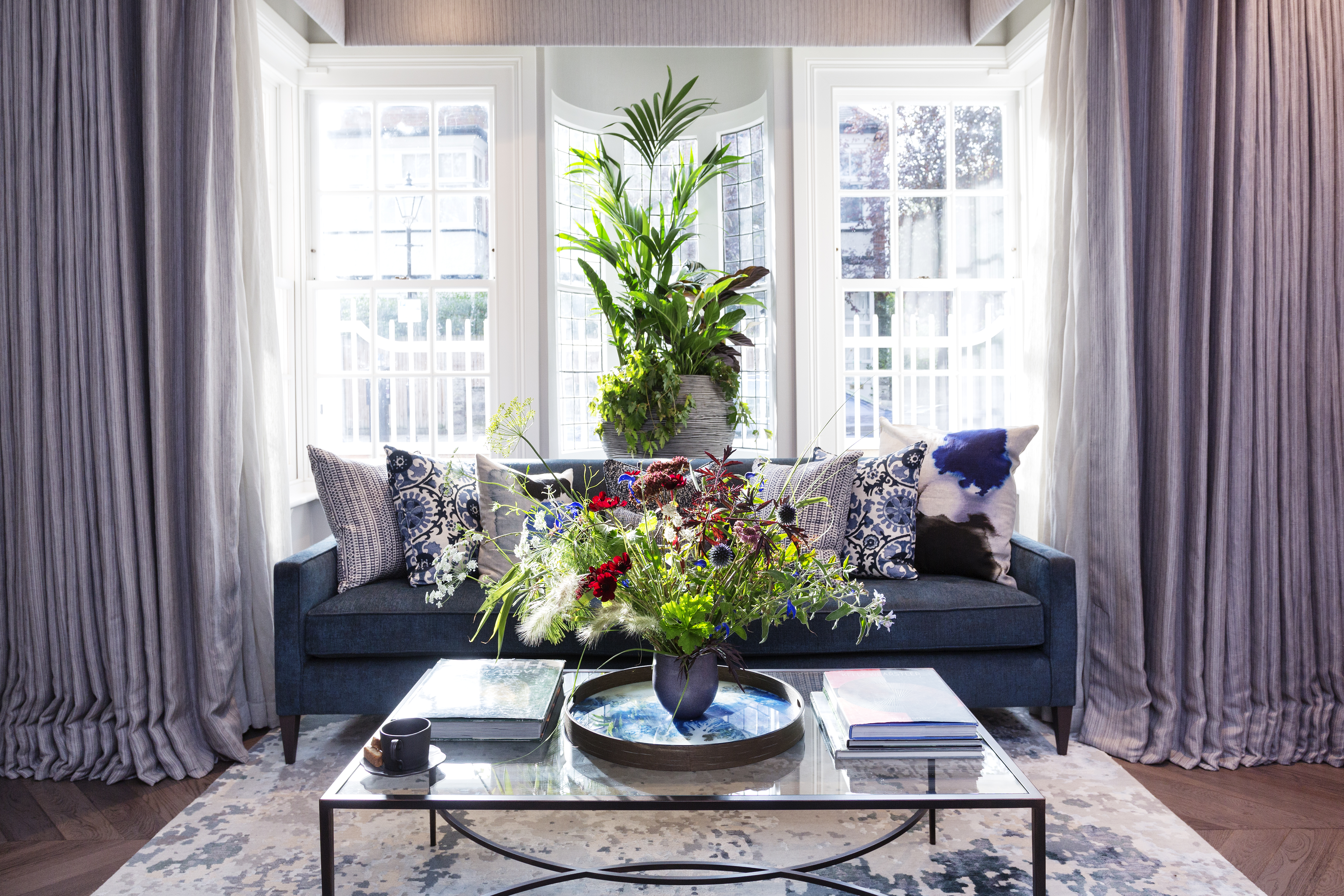A detached Edwardian villa set over three storeys, the owners of this property wanted to turn their home into a sophisticated space the whole family could enjoy. As avid foodies and cooks, the family wanted an open kitchen-dining area where they could entertain their friends, with plentiful storage and a connection to the garden. Our design team reconfigured the ground floor and added a small rear and side extension to open the space for a huge kitchen and dining area, with a bank of Crittall windows leading to the garden. Ultra-marine blue became the starting point for the kitchen and ground floor design – this fresh hue extends to the garden to unite indoors and outdoors. The snug was the darkest room so we created a cool and cosy space with elegant wall-panelling, a low corner sofa, stylish wall lamps and a wood-burning stove. It’s now the family’s favourite room, as they gather here for movie nights.