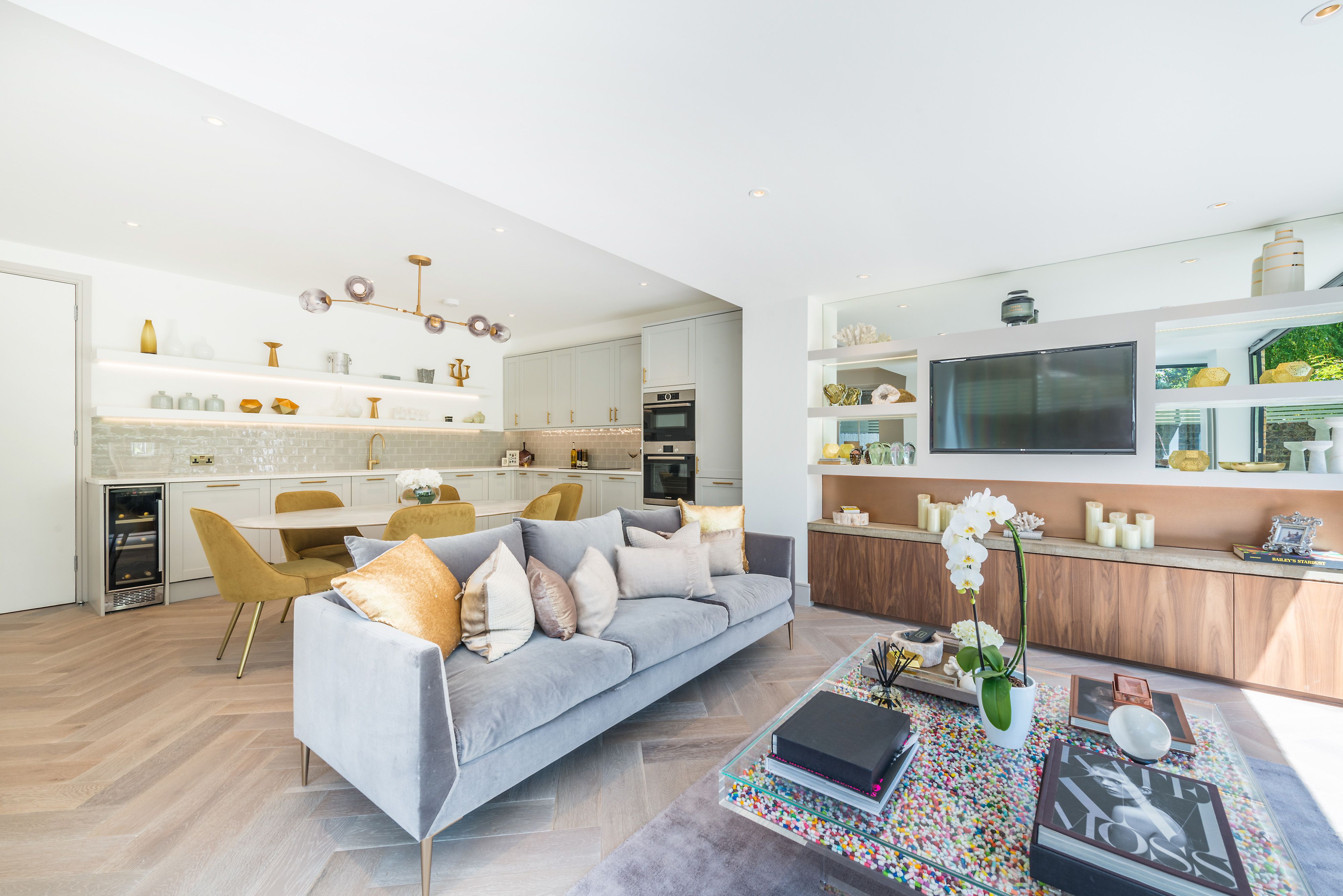 A two bedroom apartment that we created from a one bedroom foot print, the brief included planning for a rear extension and conversion of vaults to additional internal space. Lighting design, interior design and staging.