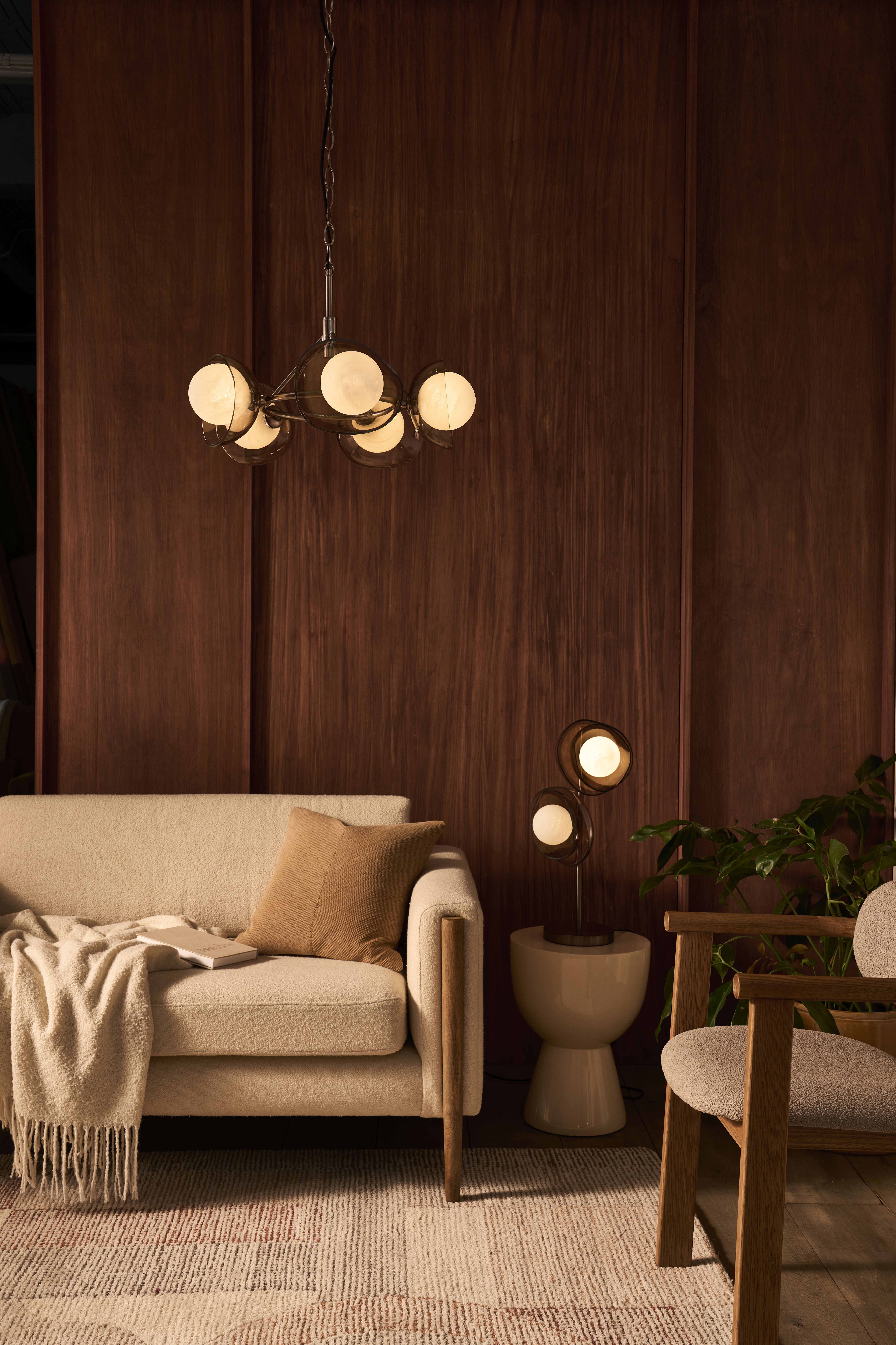 New for AW25, chandeliers join the Industville offering complementing its collection of ceiling lights, wall lights and lamps. Standout styles include the Amberley that is crafted with panels of cast glass in a rich amber hue, and a new formation of the best-selling Dulwich shade now in a suspended round chandelier drop with an exposed bronze chain.
