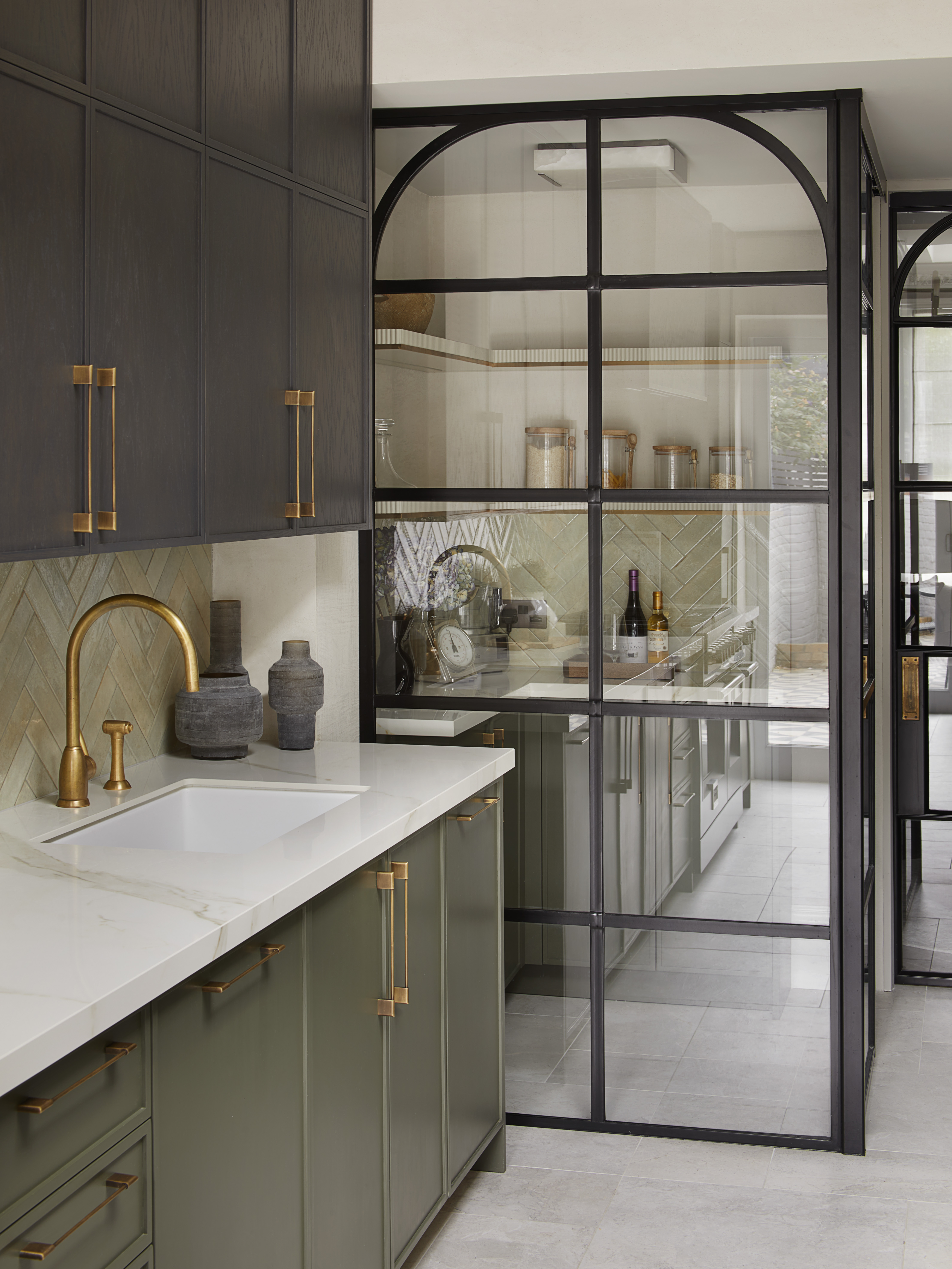 An inviting space which balances functionality and aesthetics. Our approach to this project revolved around an understanding of the historical significance of the property and a commitment to preserving its integrity and character. The tiling and ironwork for instance are key design features which are fitting of this period property.The local area is known for its charming village atmosphere, with a mix of period architecture and more modern buildings. Our project’s design mirrors this perfectly, exhibiting traditional British architectural charm with updated features perfect for our client’s lives. Keeping this and the building’s history at the centre of our planning helped achieve unity across the design. The client desired an open-plan family kitchen-dining area flooded with natural light to bring a more modern atmosphere to the home, catering to home cooking and social gatherings. We collaborated closely with them to ensure their vision was met, creating a space that served the practical needs of the family and also reflected their unique identity. The family’s Indian-Scandinavian heritage is shown with the muted Scandi colour palette, curated cookbooks and finishing touches such as ceramics.