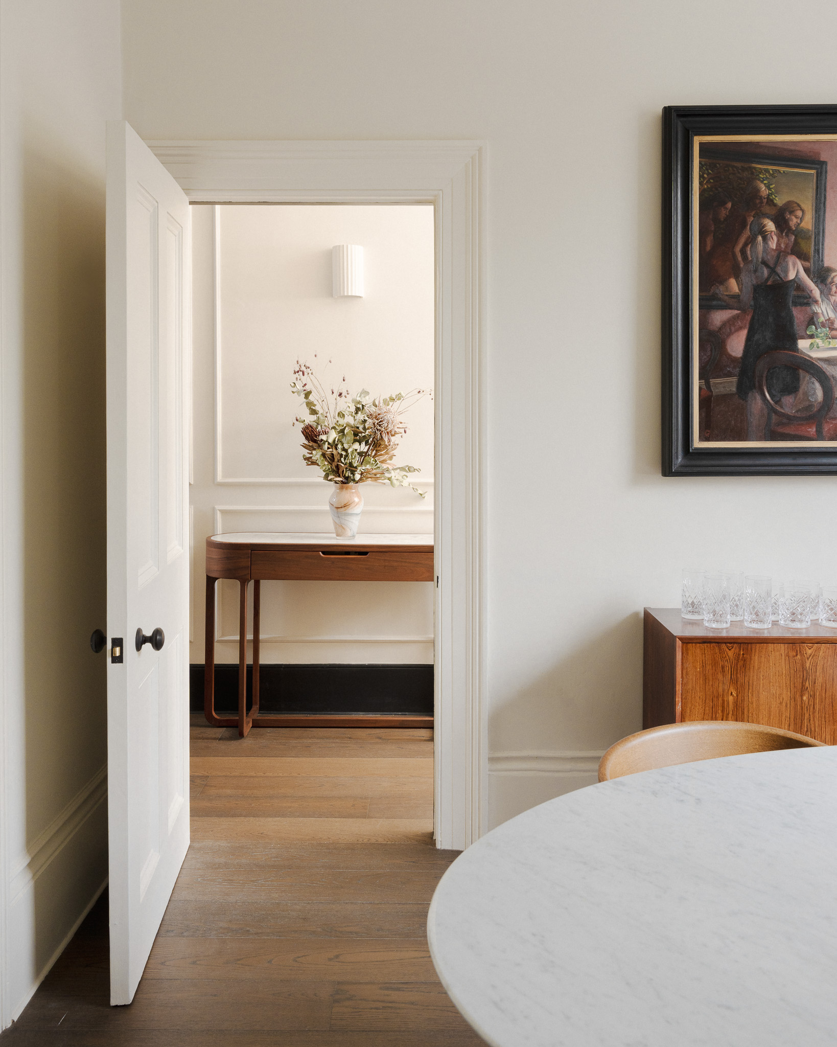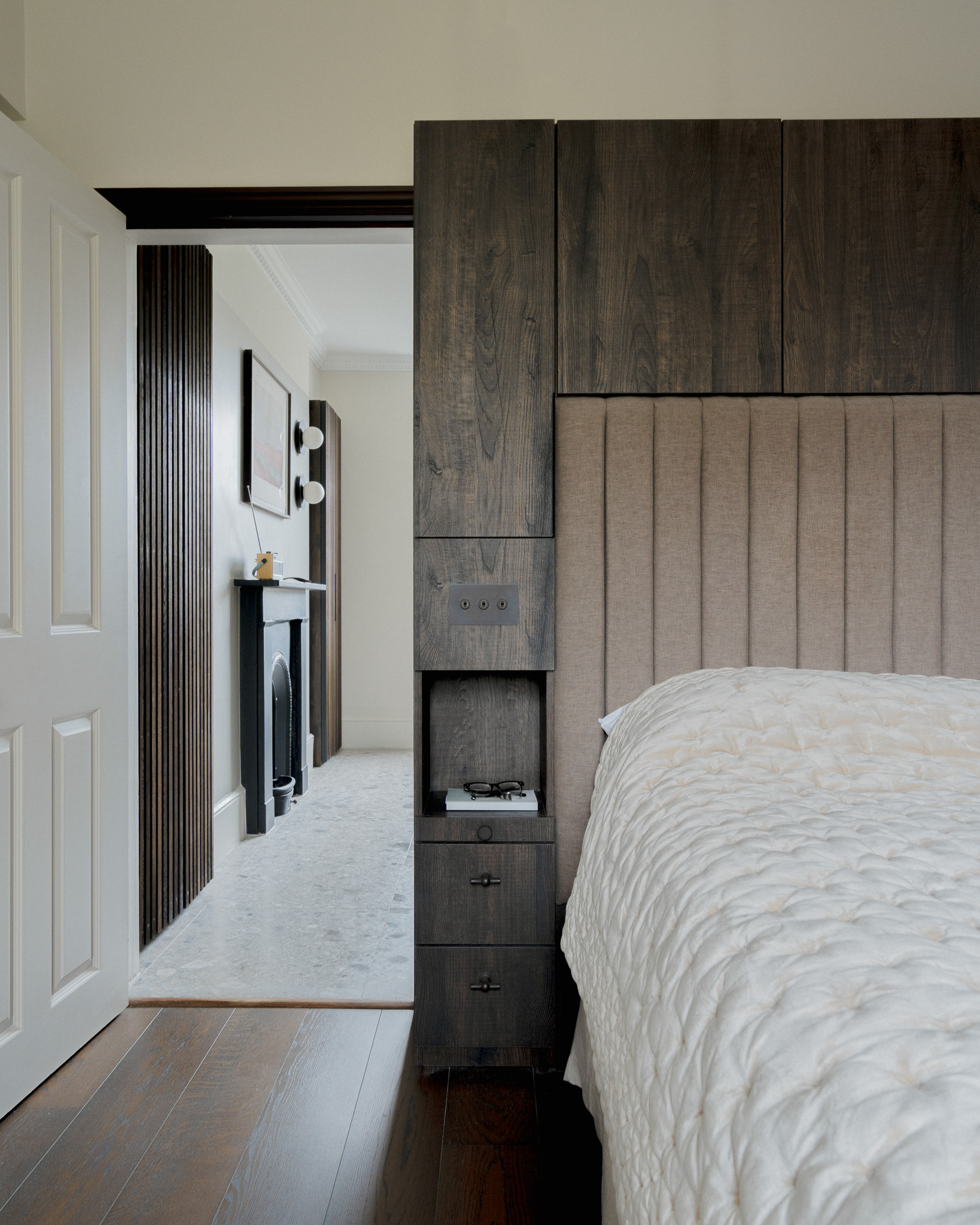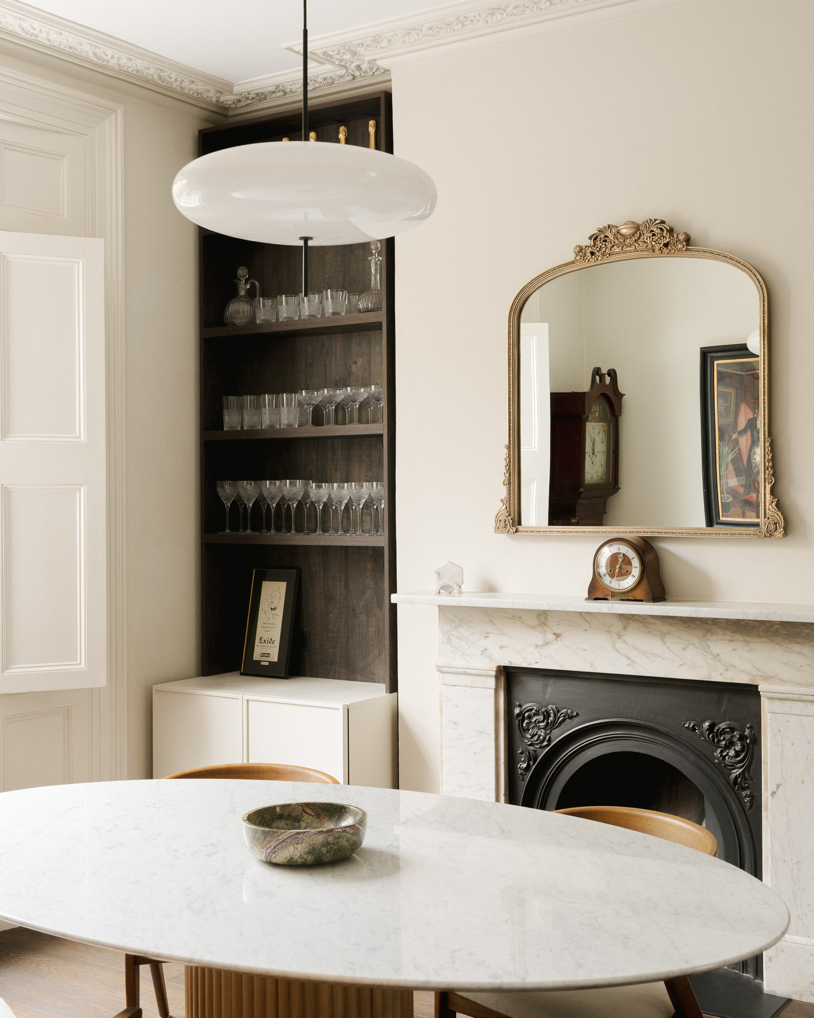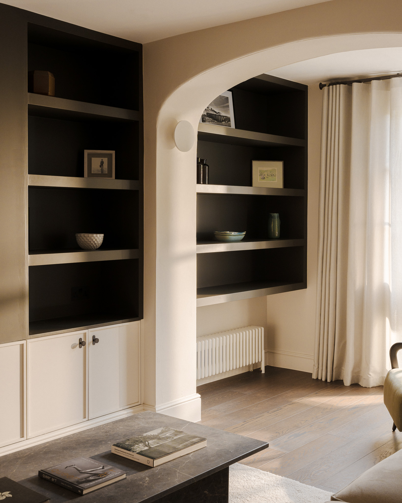 Rees Architects transformed a Grade II Listed Georgian townhouse in Islington into a contemporary home, blending historic preservation with modern functionality. A deep retrofit addressed damp proofing, plumbing, and structural updates, restoring original features like fireplaces, cornicing, and joinery. The reconfiguration included a new ground-floor kitchen, a basement guest suite, and flexible spaces for family living. Thoughtful design elements—such as a marble-topped kitchen island, bespoke joinery, and minimal, timeless finishes—balance the home’s historic character with modern aesthetics. Skylights, garden views, and bronze accents enhance the interiors, creating a harmonious, light-filled space ideal for modern city living.