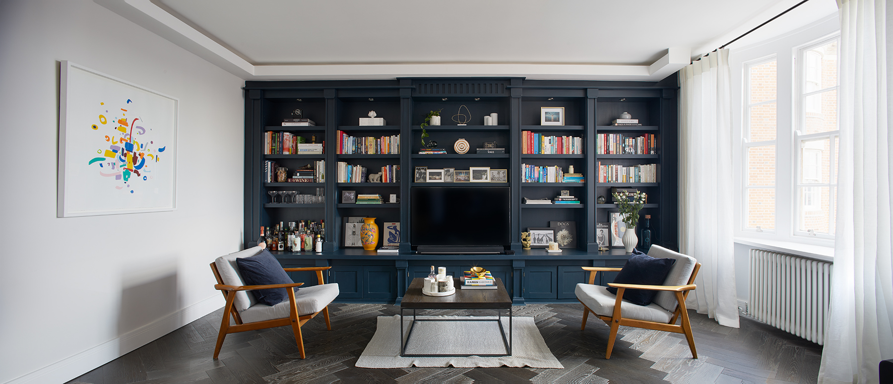 The client approached us after completing the long-winded and complex process of getting the building license. They had a vision of what the finished project will look like. Originally this apartment was 2 bedrooms, one bathroom with a separate kitchen apartment. The challenge was to squeeze in an ensuite bathroom and provide a new utility room. The client likes to entertain so it was important to create an impactful open plan living room/kitchen. We managed that by borrowing some space from the oversized hallway. We came with the technical expertise needed to deliverer this project and knowledge of the marketplace ensuring that product for this refurbishment is of excellent value. We designed colour schemes, lighting, specified finishes and managed the contractor on site.