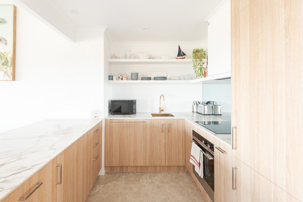This amazing beach flat in Australia was refurbished during the lockdown from London. The plans were designed before and the works realised with video calls management. We chose a light wood, white and soft colours to enhance light with the sun flowing in. All the details are done with a simple but delicate attention for an everyday easy use.