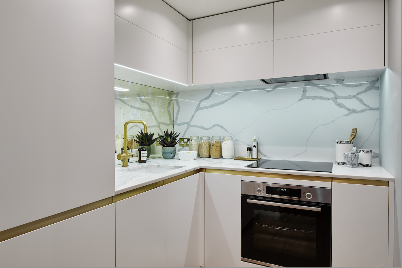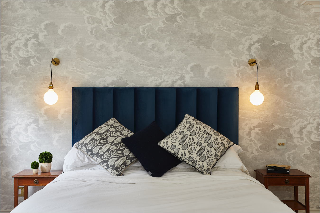 In addition to the planning process, Huntsmore redesigned the interior of the property. This included a new kitchen, woking alongside kitchen designers REMEB, new bathroom featuring pieces from Lusso Stone and revamped the bedroom with some fantastic wallpaper on both sides of the room with Cole & Son's ‘Nuvolette’.