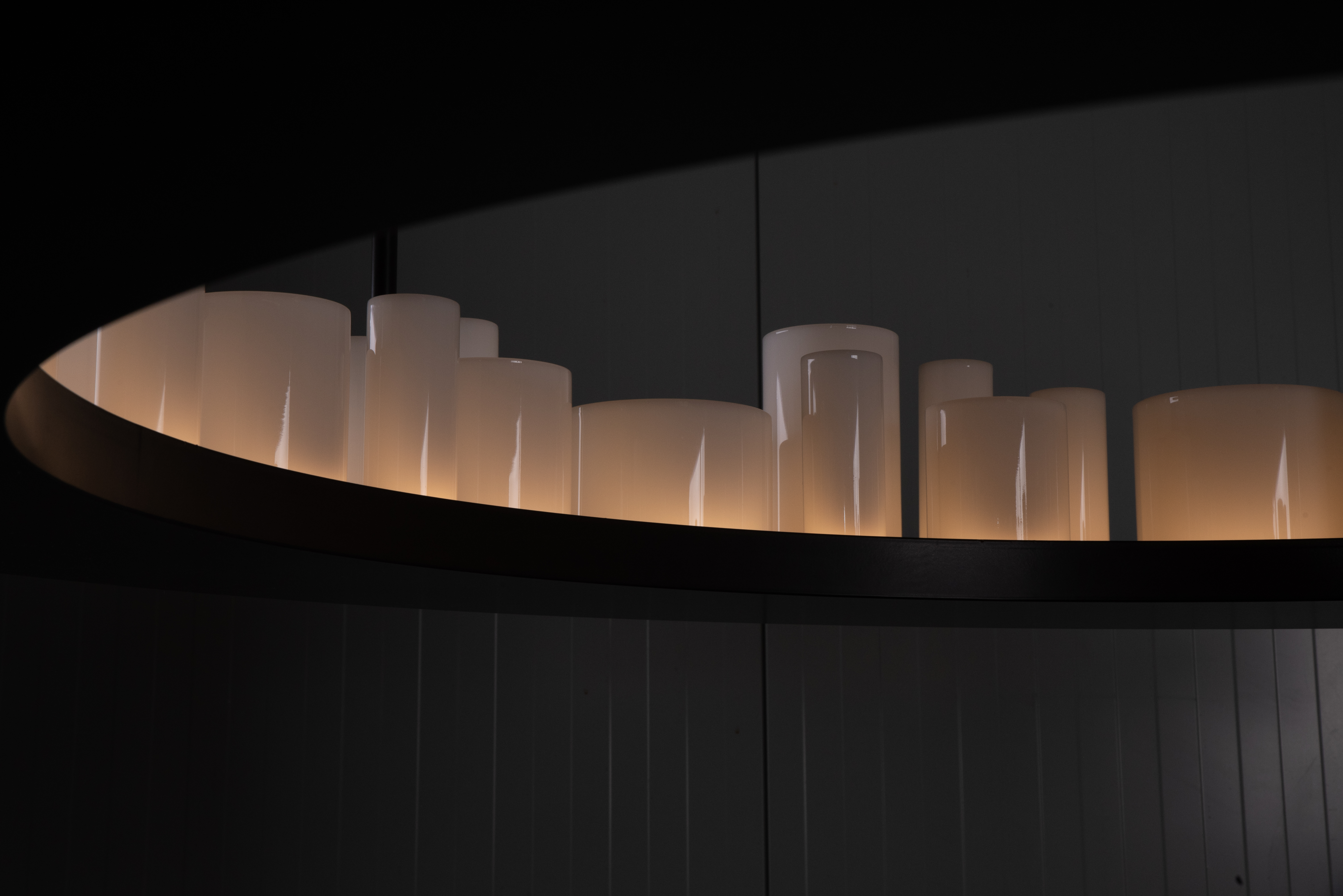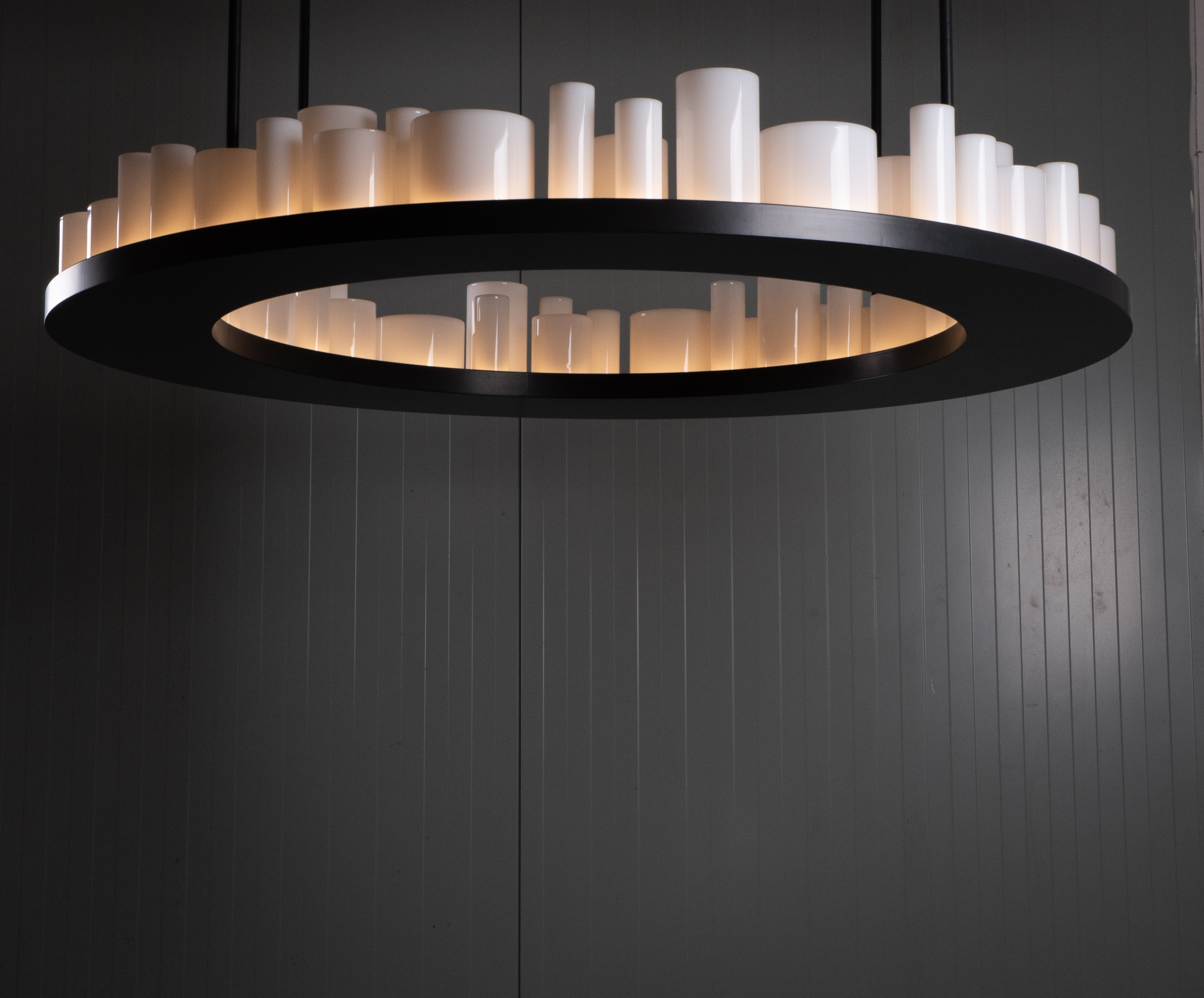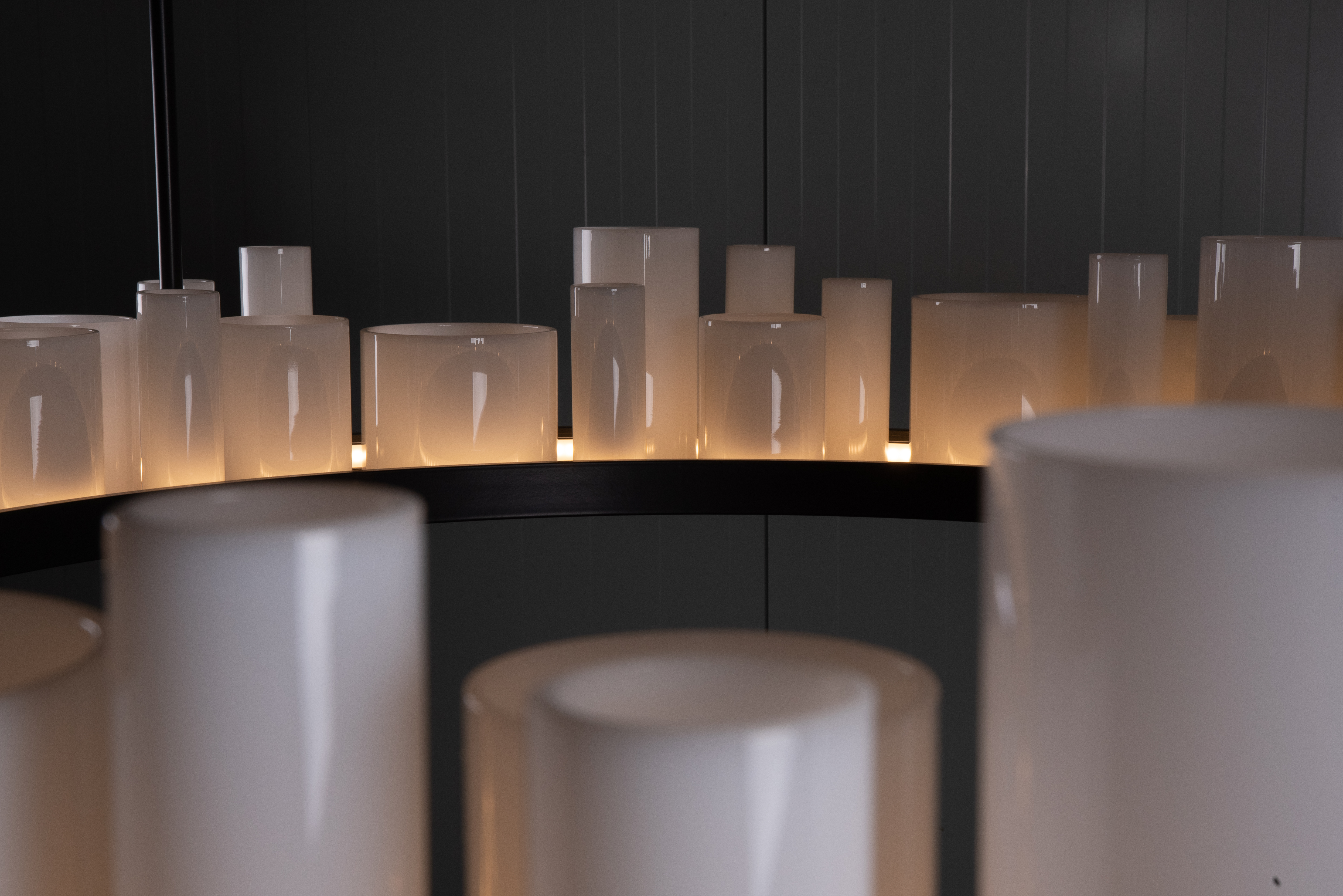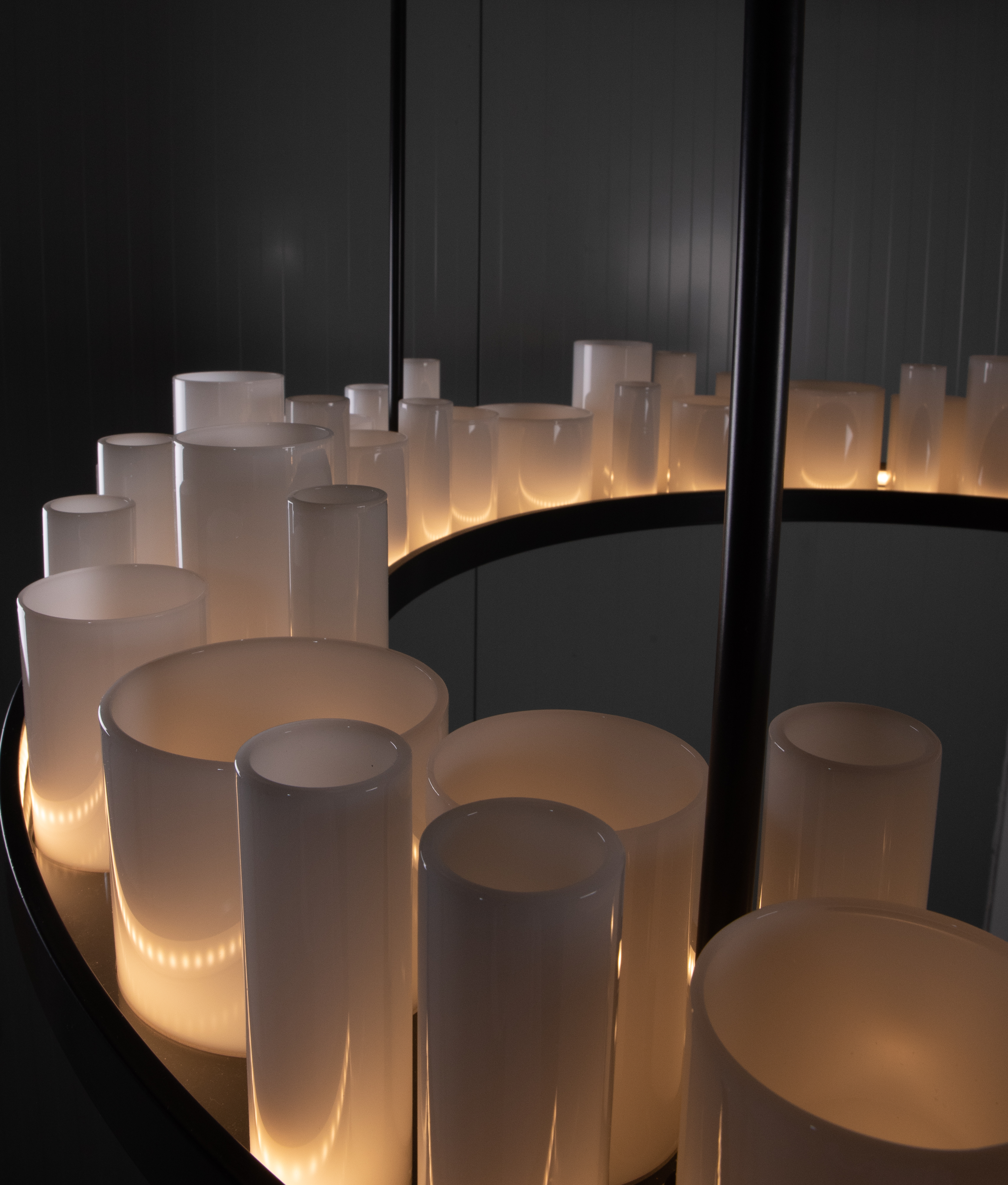 The difficult task for the design team was how to illuminate the 64 individual, detachable opal tubes? The solution the design team devised, was to make a ring shaped tray, this is where the opal tubes would sit and then LED strips would line the inside of the tray, lighting the contents inside it.