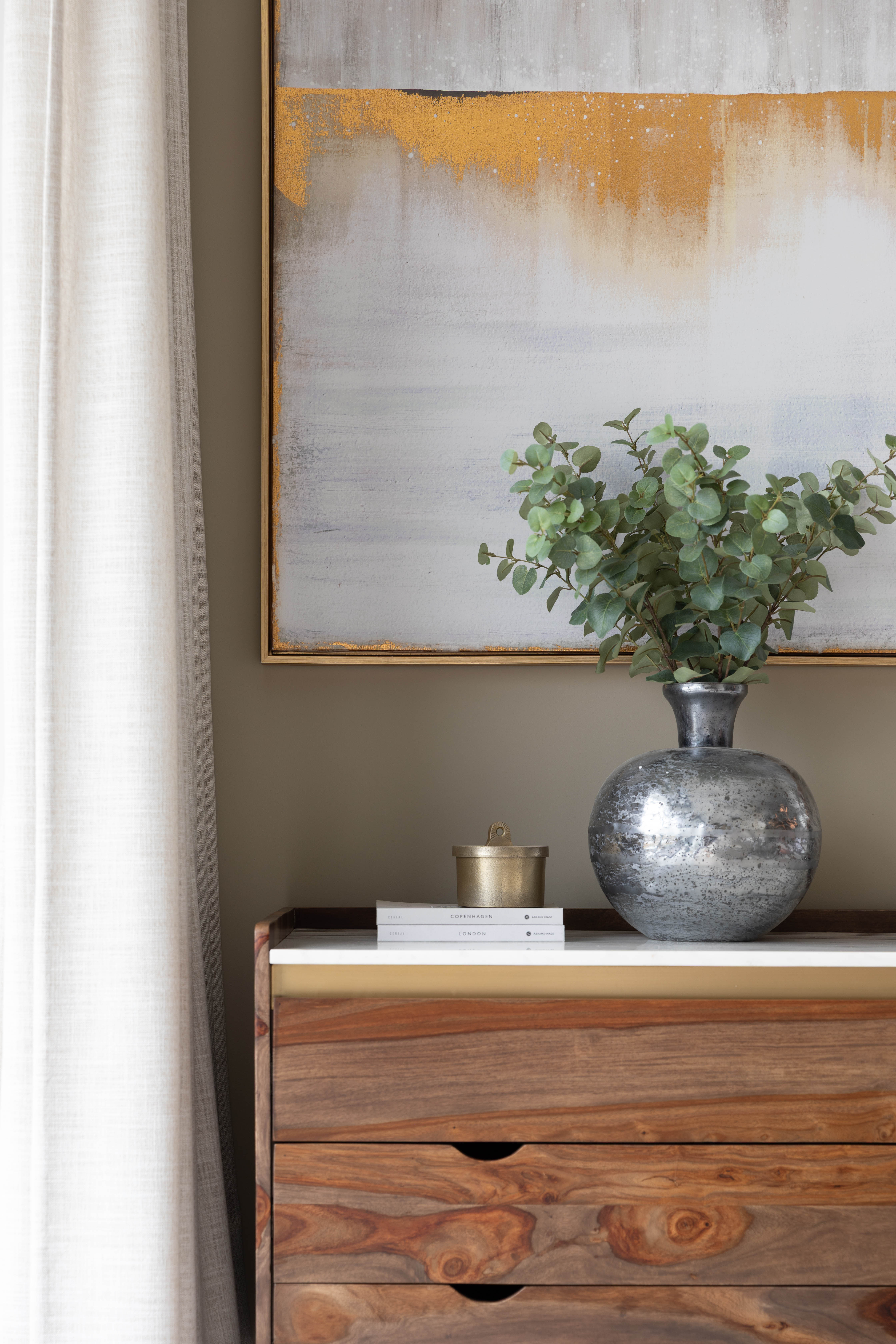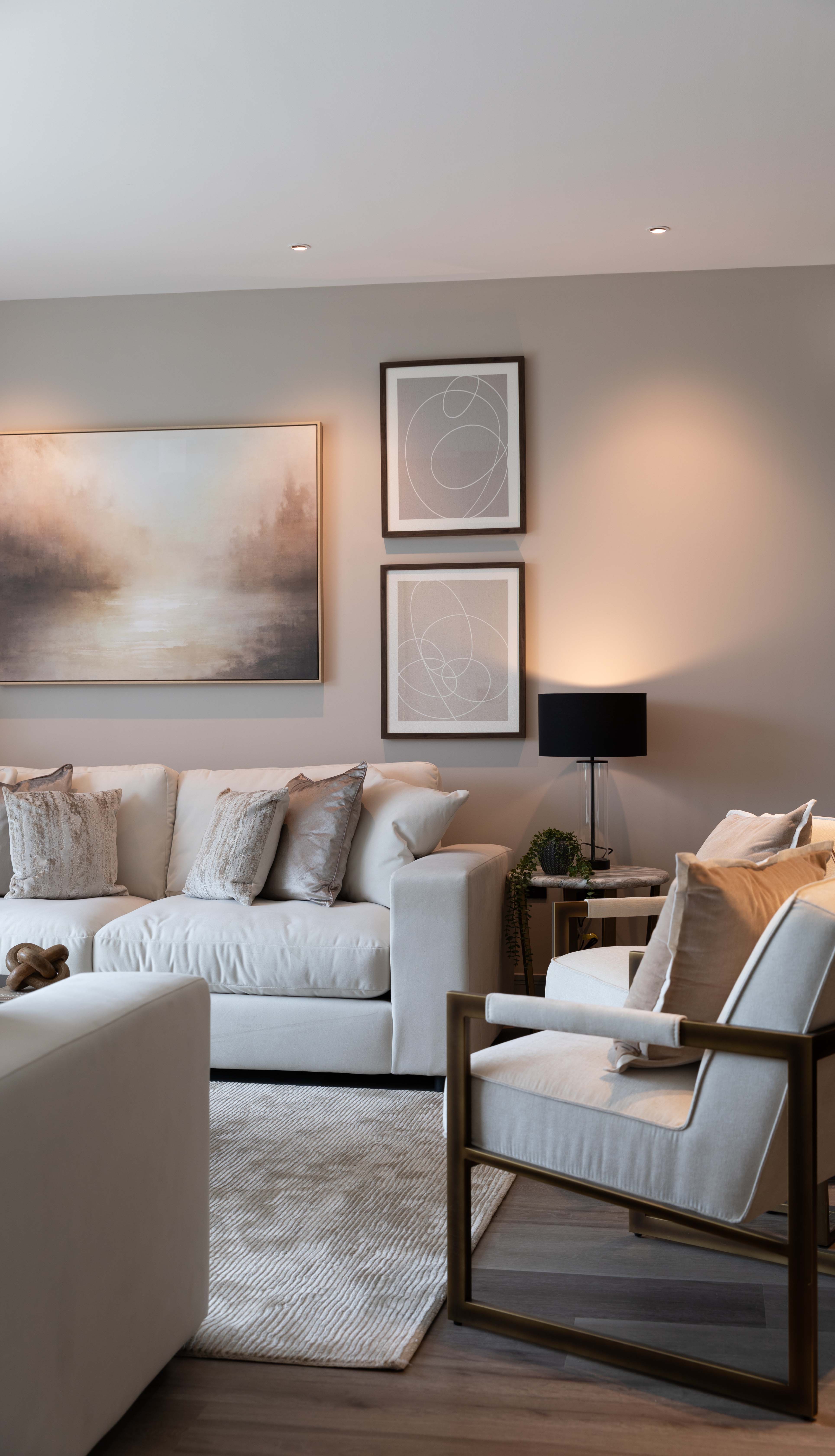 This curated 5-bedroom home at The Bowers in Rochester has been styled to reflect a calm, contemporary way of living. The interiors are grounded in soft, layered neutrals – a palette chosen to create a sense of ease and timelessness. Sculptural shapes, natural textures, and brushed brass details bring quiet sophistication, while abstract artworks and tactile finishes lend warmth and personality to every room.