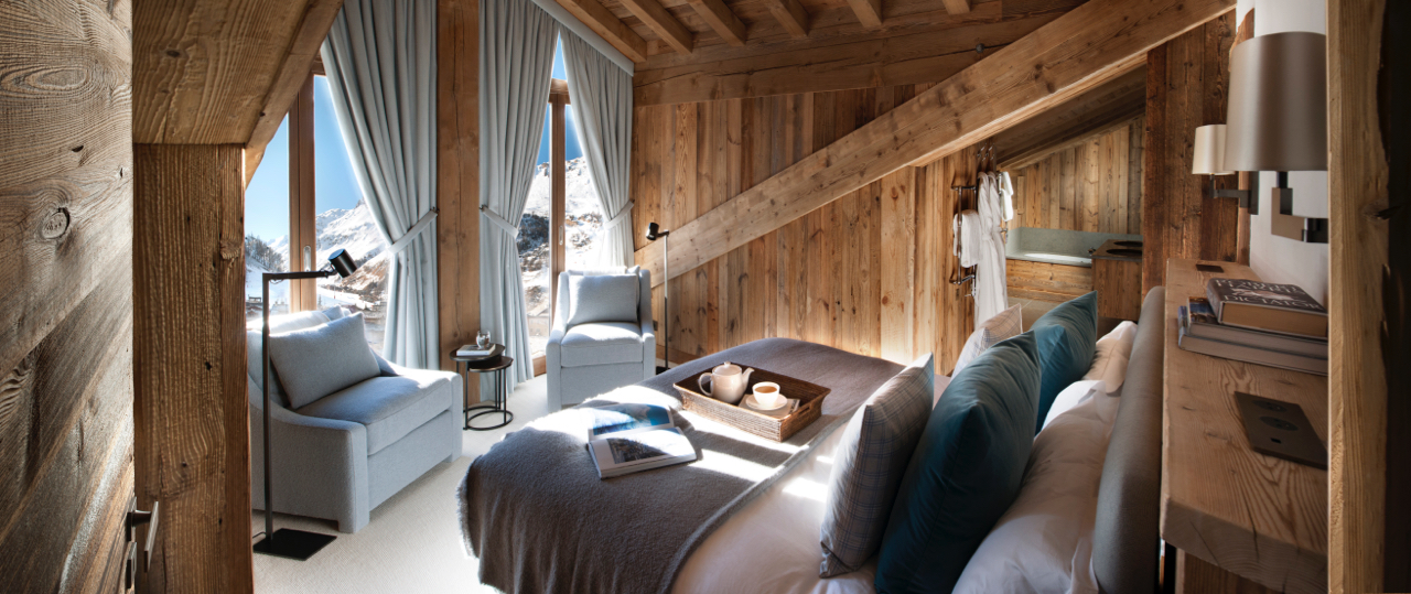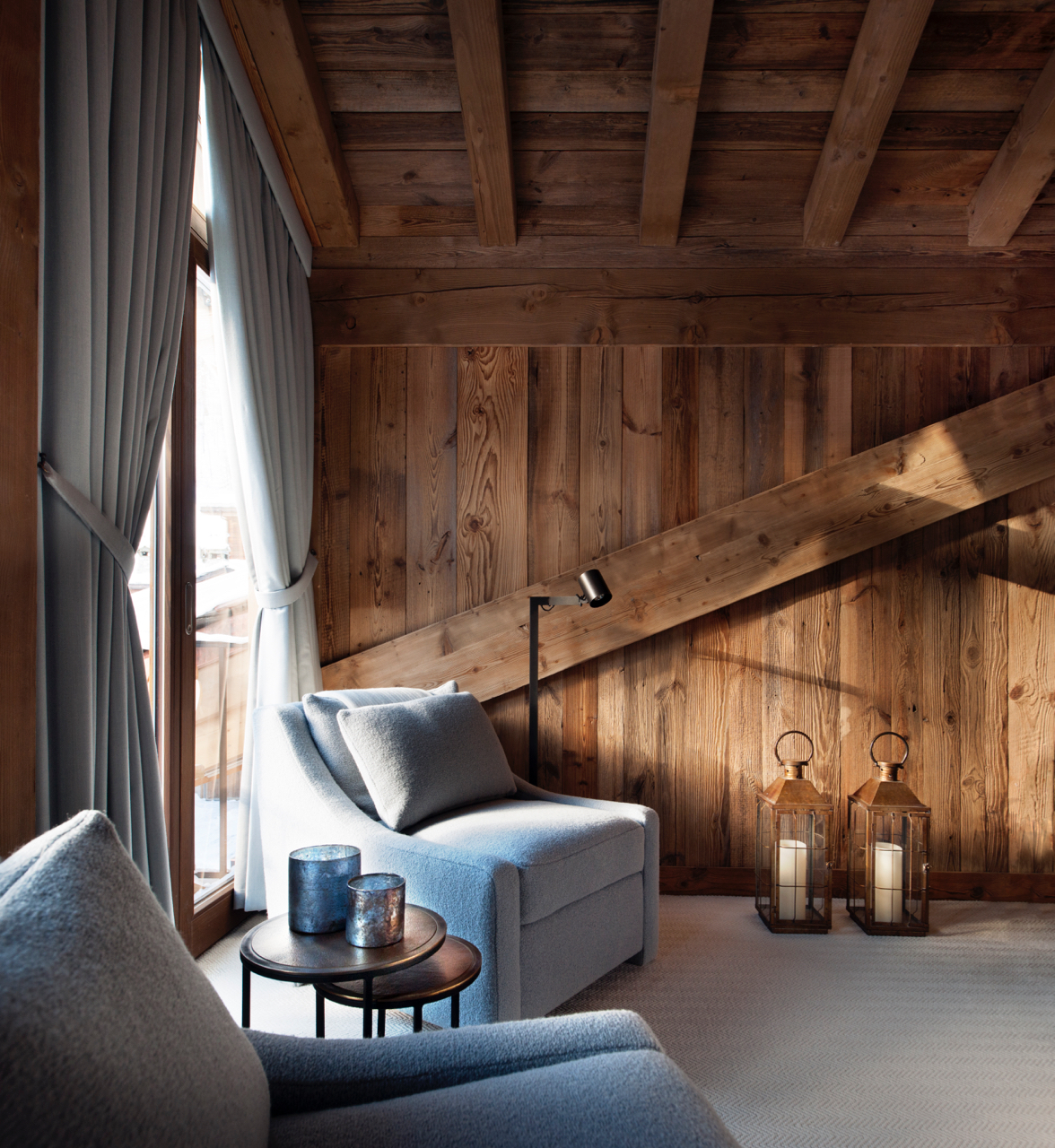 You are here: Nicky Dobree Interior Design Ltd project Chalet La Canadienne See Nicky Dobree Interior Design Ltd profile Gallery sitting room Living guest bedroom ensuite master bedroom master bedroom chairs and reading lamps