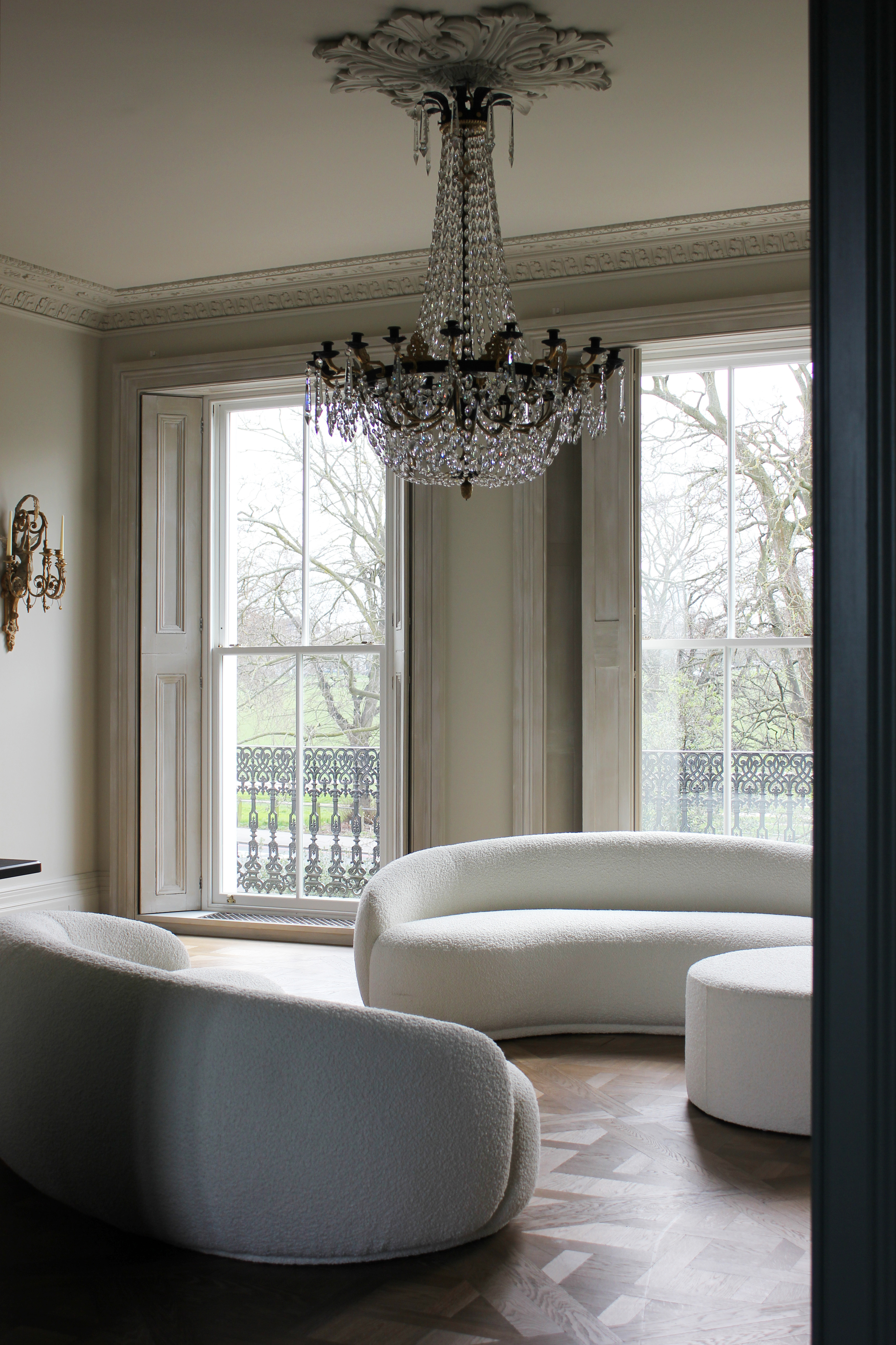 Much of the historical building fabric was carefully removed and restored ready for reinstatement, including original internal shutters, fireplaces and door ironmongery. Moulds were made of all original cornicing and plasterwork in order to repair and reinstate where required. The original staircase was removed from basement to first floor and replaced, in a new location with an elegant limestone-clad stair with traditional cast iron balustrades.