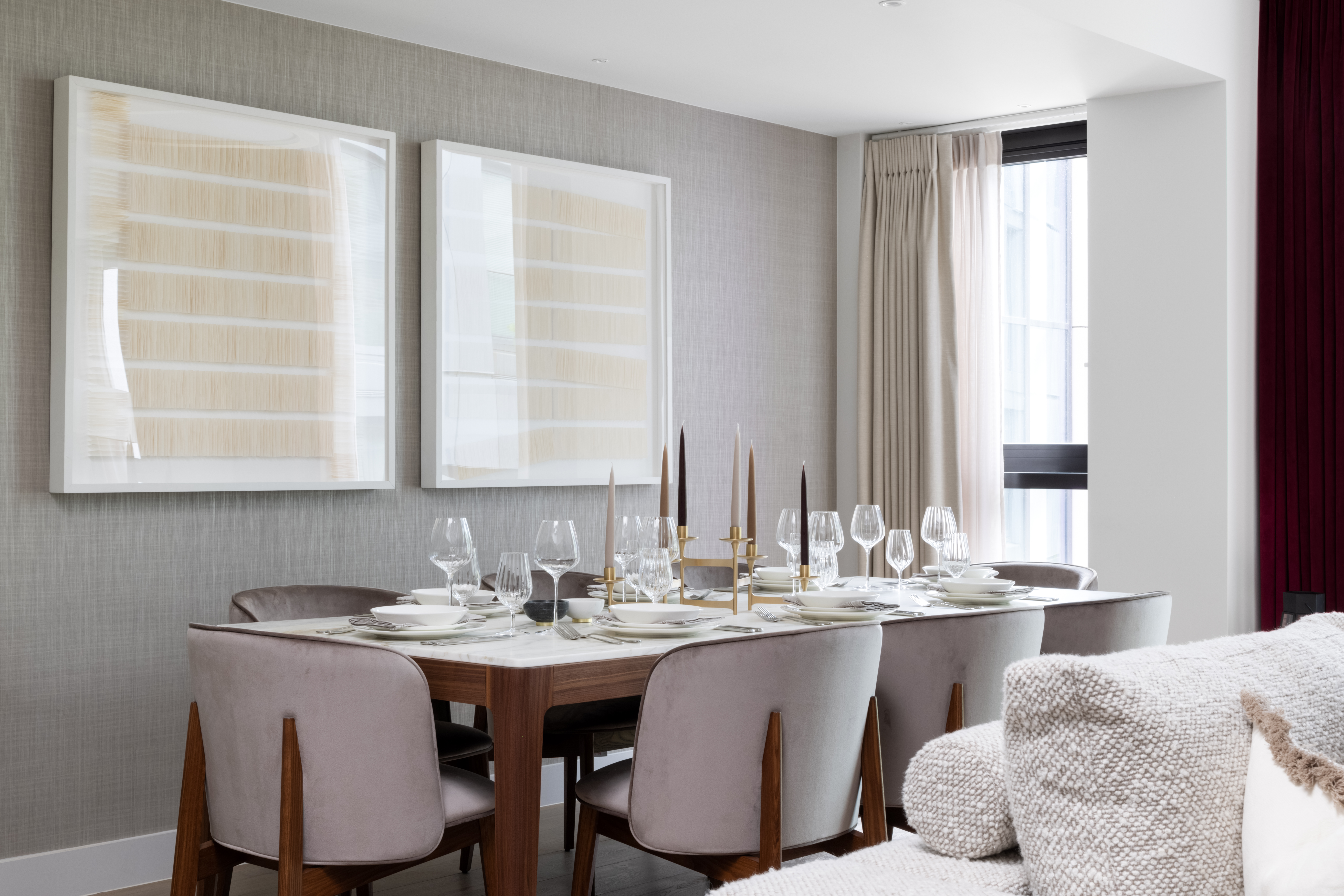 The client's brief was to strip back this early 2000’s built property to its core structure and transform it into a refined and sophisticated pied-a-terre. We aimed to design a home in which to stay, relax and entertain when in the city; a haven of tranquillity tucked away from the bustle of Central London.