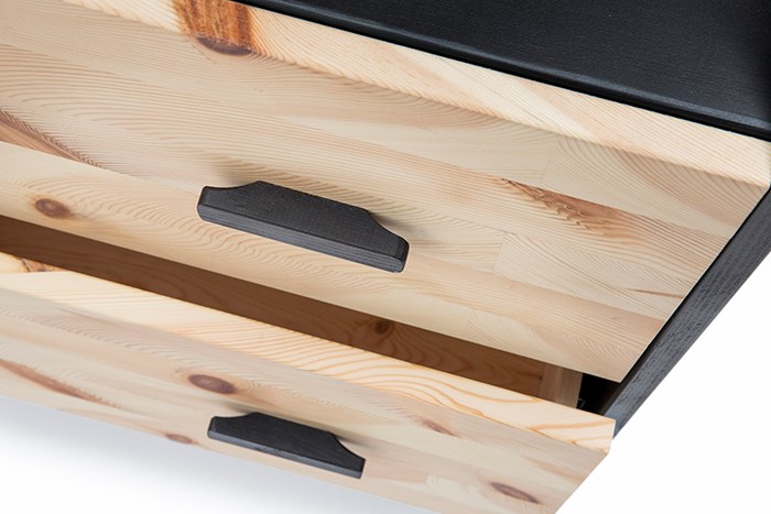 The pine has been sawn using a special technique so that the grain of the wood mimics the wave, how the water moves behind the ship.
