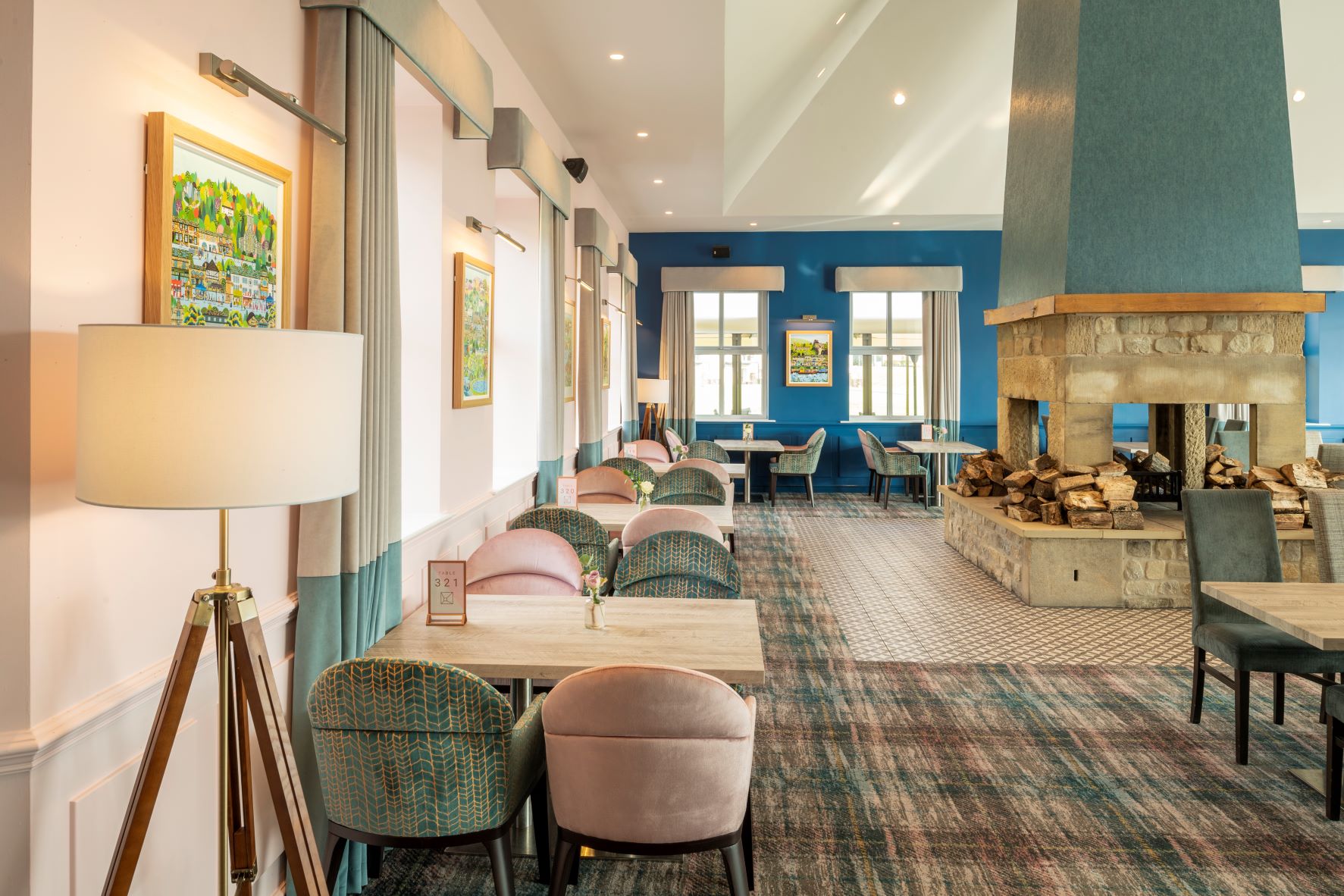 Continuing the Hotel’s refurbishment, the directors of the Coniston approached Skopos to produce new schemes for their Classic Bedrooms and The Banister Suite function room. The bedroom brief was to update the current décor for a more bright and modern feel. The team at Skopos put together 5 mood boards including curtains, pelmets, upholstery and cushion fabrics. These were presented to the directors and the 2 favoured schemes were put into production.