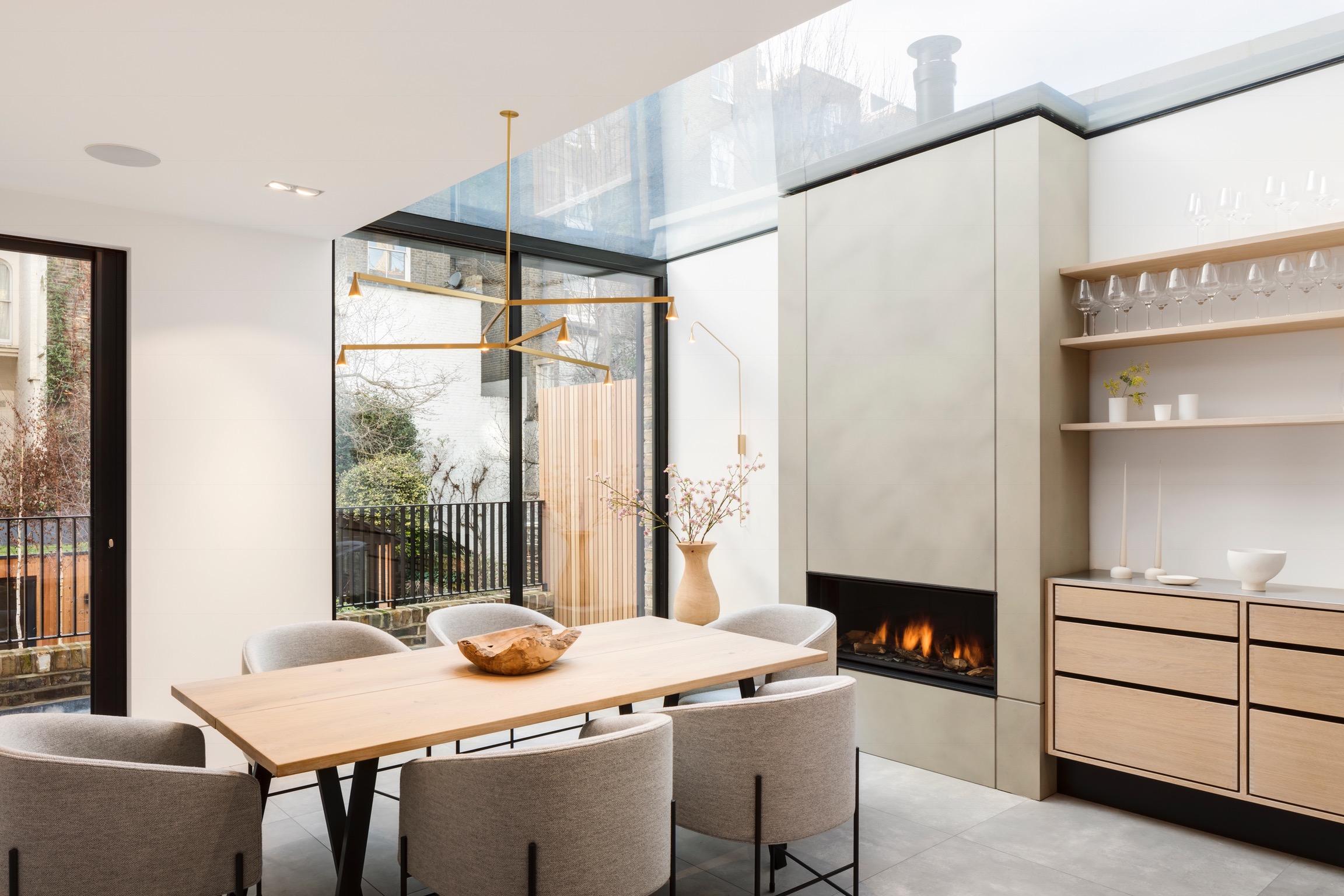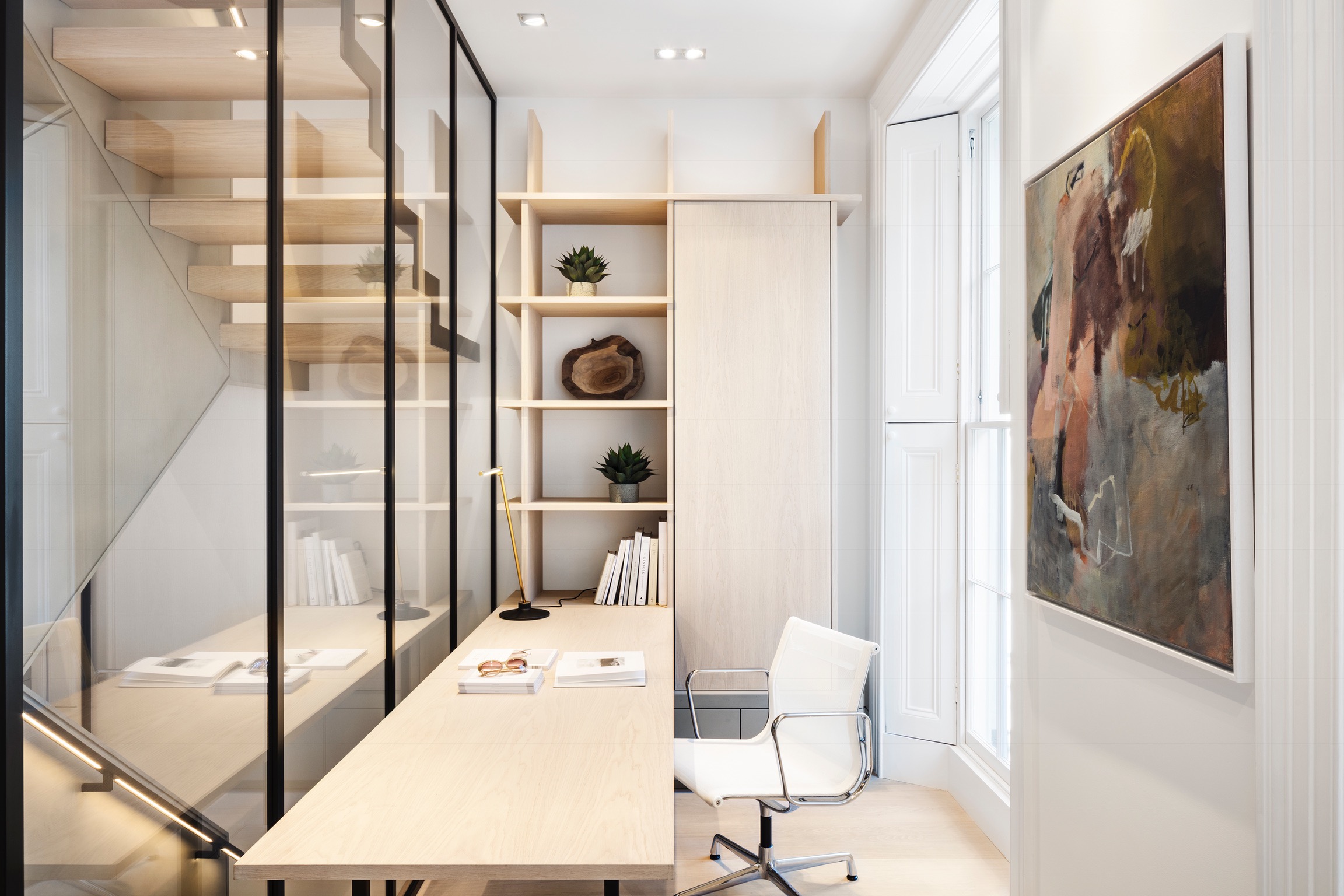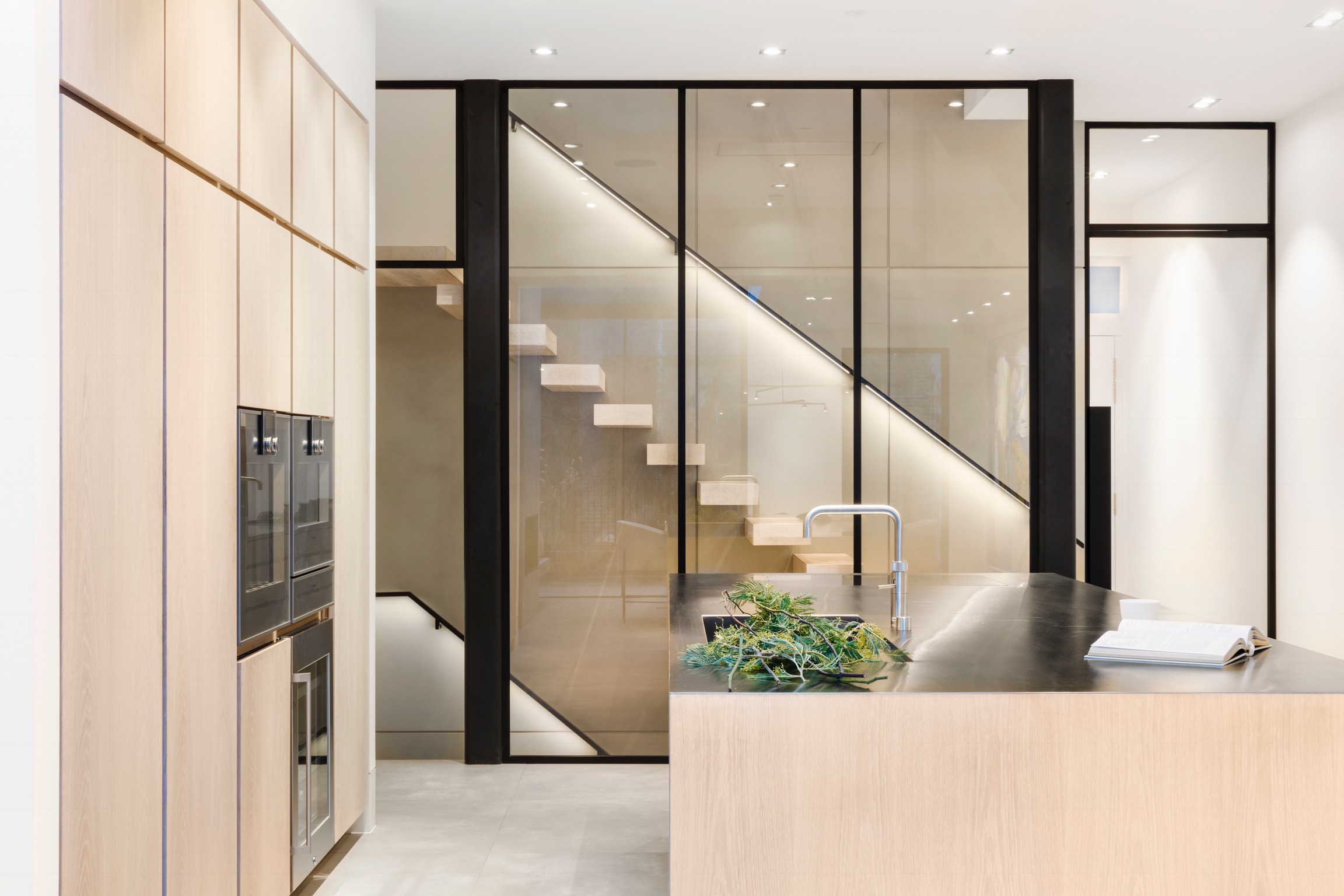 For the refurbishment of this town house in Notting Hill we drew on both Japanese and Scandinavian elements, employing a pared-back aesthetic with emphasis on materiality, clean lines and the cool tones of pale timber against dark metal work.