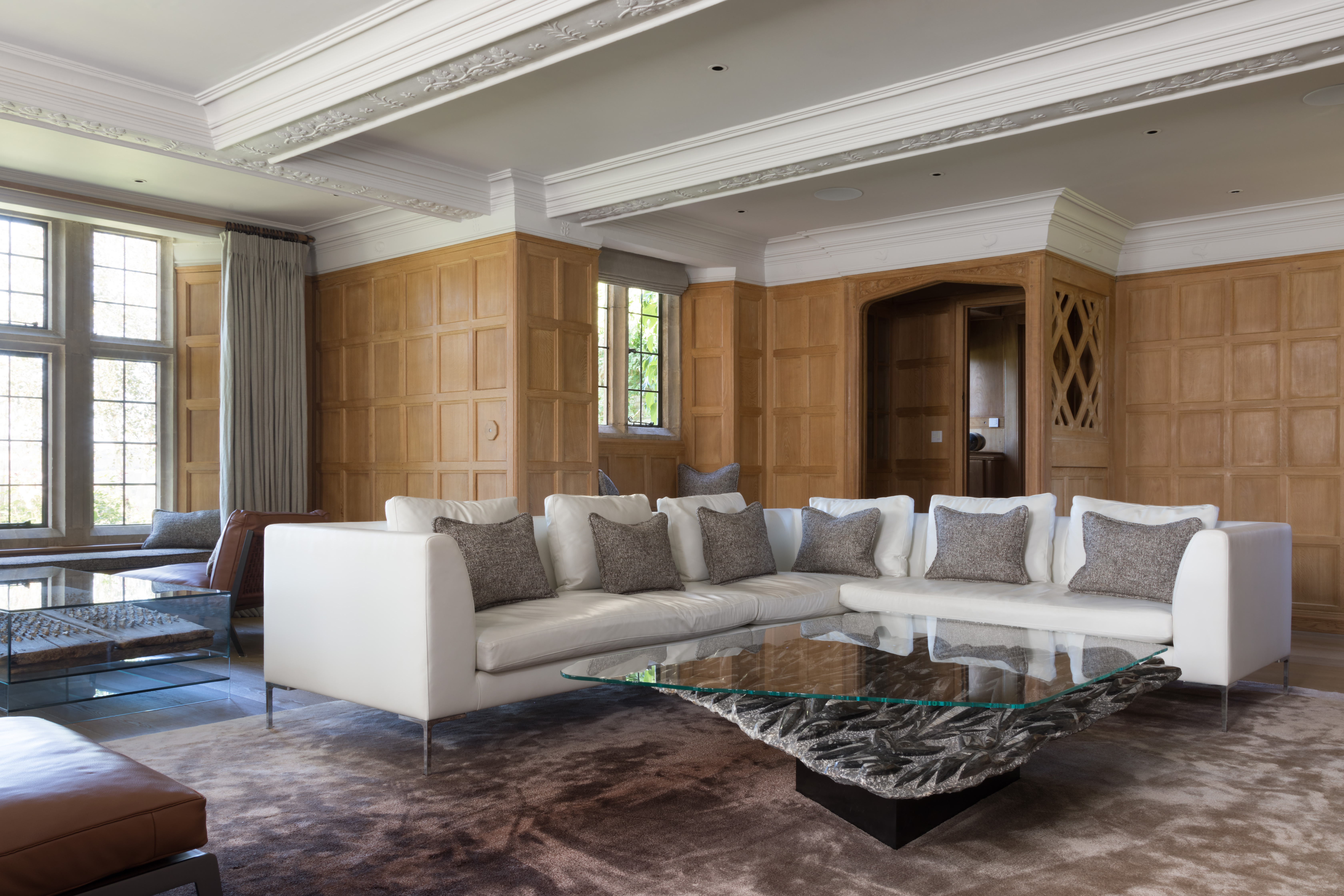 Appointed as lead consultant on the comprehensive renovation of this important Grade II listed Cotswold estate, the project scope included architecture, spatial planning and interior design throughout the twelve bedroomed house. Oiginally built in the 16th century, re-modelling over the years had resulted in a complicated layout with a warren of small dark rooms and awkward corridors. A new layout was developed to improve circulation between spaces, respecting the history of the building by returning rooms to their original shapes and allowing natural light to flow more easily.