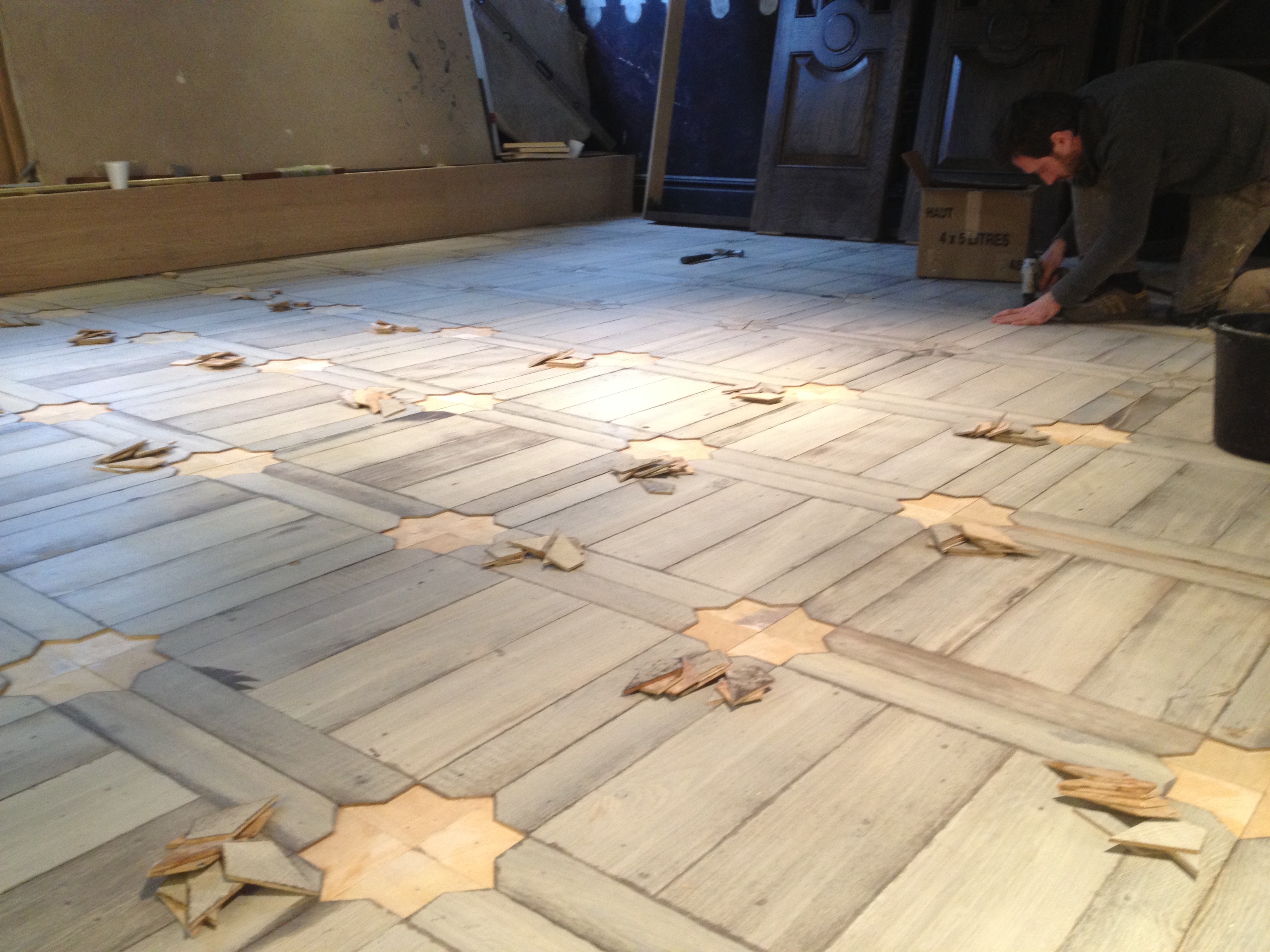 When Coya in Piccadilly first opened probably 9,10 years ago we were delighted to have provided all the wood floors. In particular the ones you see here. A panel of 600 mm x 600 mm ovelay oak to a 12 mm birch ply base. The centres of each four panel set are a rose of fossil cut oak, slightly under sized to create an old authntic feel.