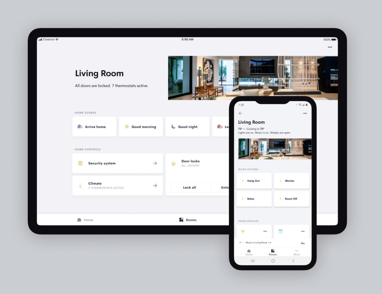 Crestron Home makes all the devices and systems work the way you want them to, offering one simple experience from anywhere.