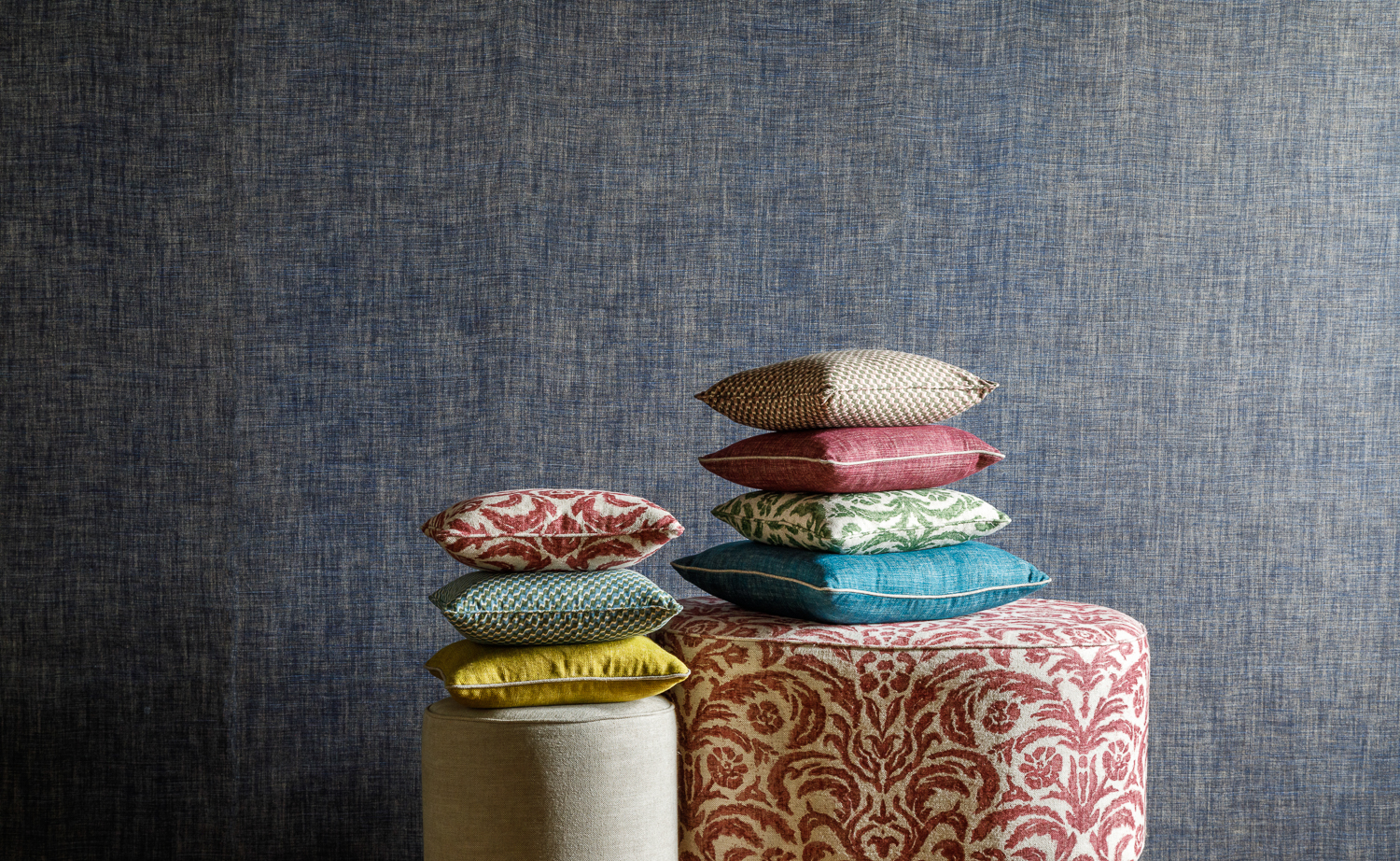 All Fermoie cushions are piped, with a hidden zip and are supplied with a pad. Our cotton, linen and union fabric cushions are supplied with a feather-and-down pad and Indoor-Outdoor cushions are supplied with a man-made fibre pad.
