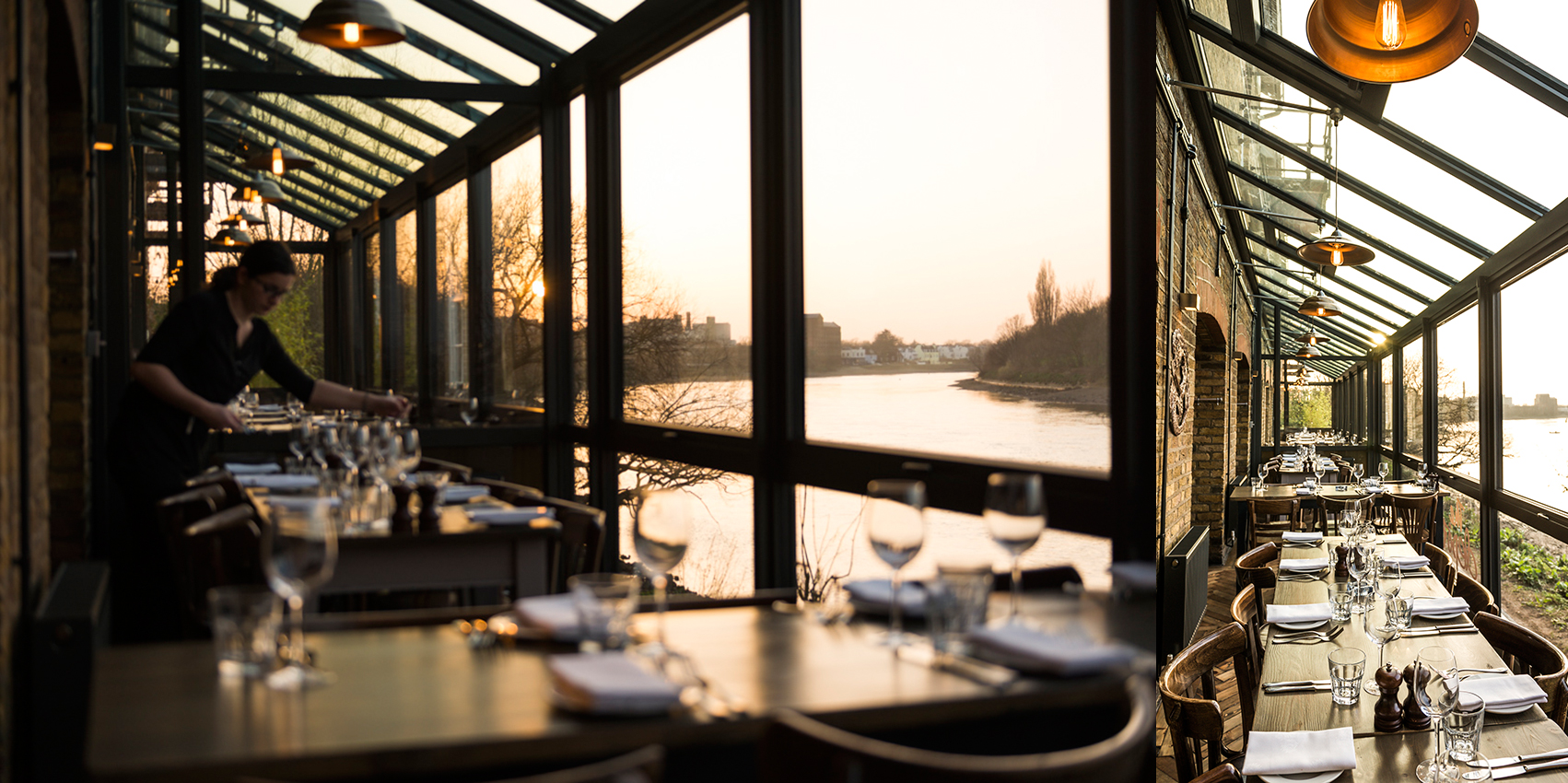 When Mark Milton, co-owner of the Depot Riverside Brasserie appointed Sybaris to just get some advice on a lick of paint and few new lights, little did he know what he was getting himself into. With our signature gusto we shook this gentle English soul right out of his comfort zone, unleashing a whole new look that injected a dash of trendy Hoxton into the sleepy idyll of riverside Barnes. Just as the trusty old wooden conservatory was ousted by the arrival of a modern anthracite aluminium & glass structure, out went the cosy blanket of earthy tones that wrapped this old Victorian stables interior for nearly a decade.