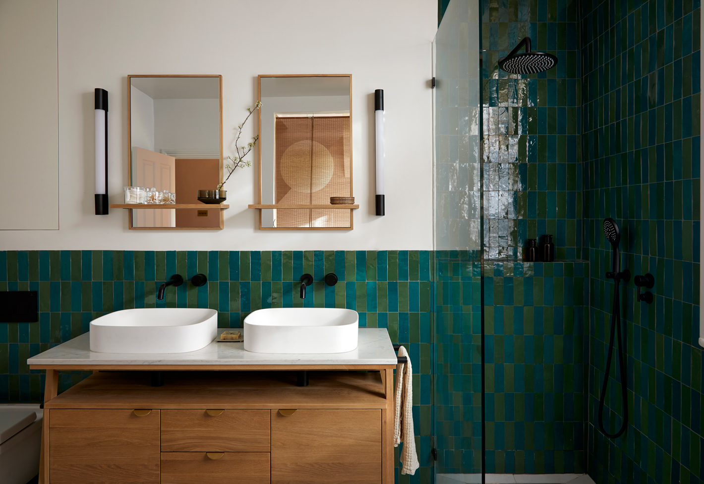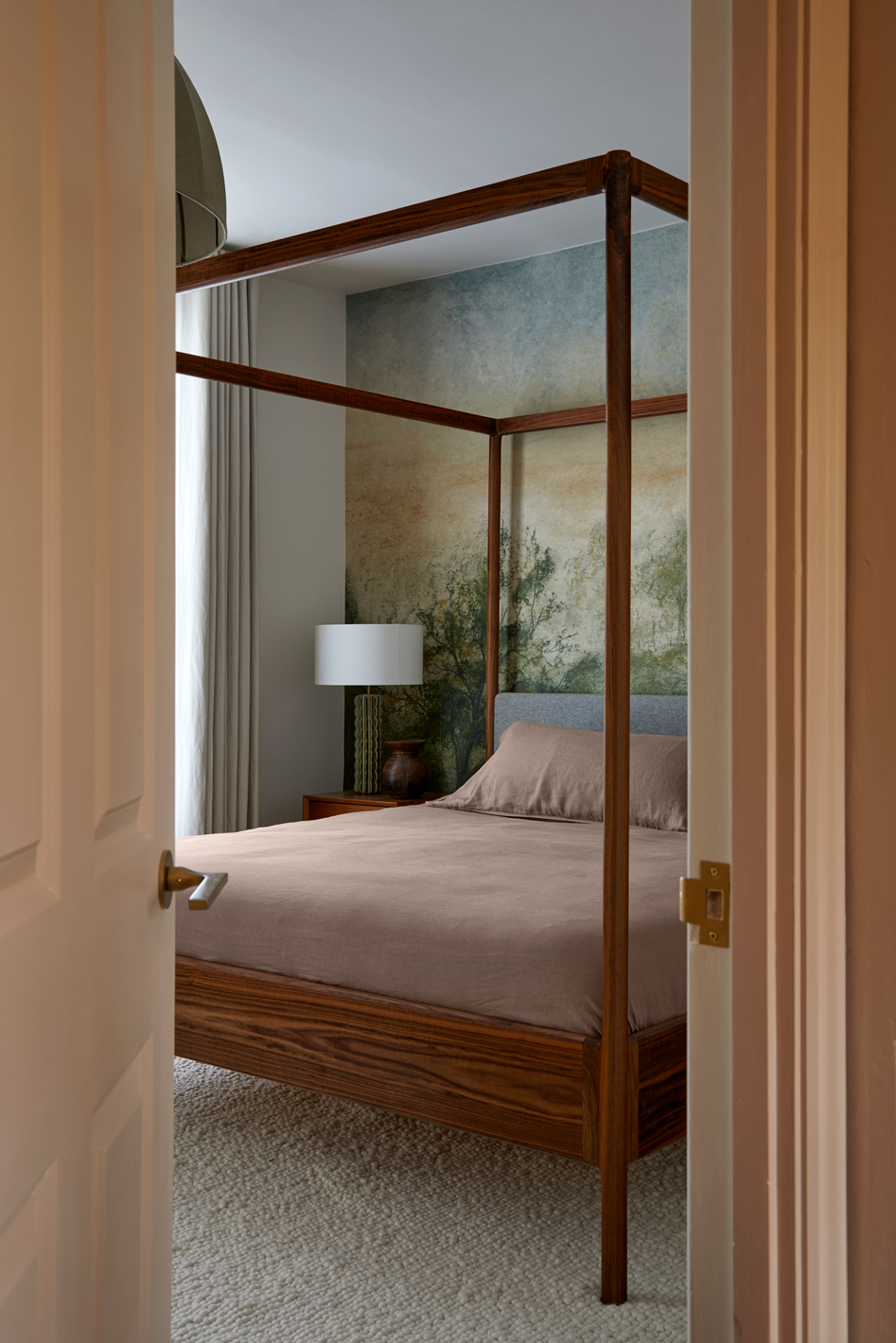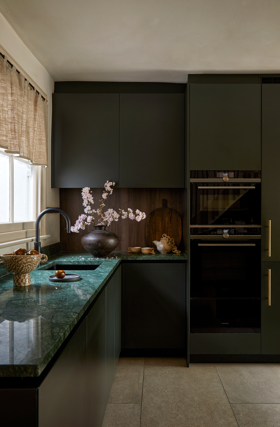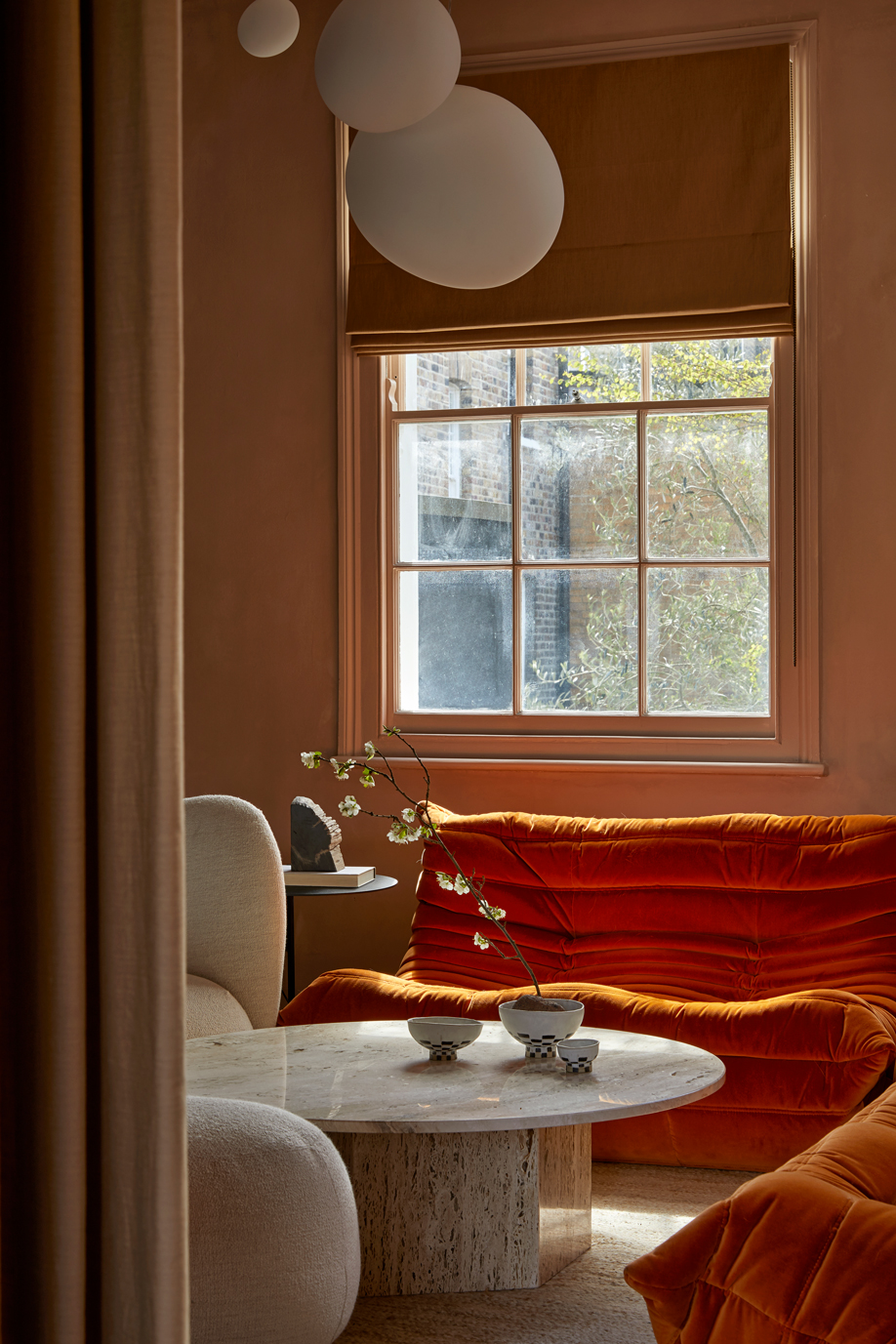 From the golden-hour terracotta walls in the reception to the walnut and green marble kitchen, every space reflects their lifestyle — a balance of global influence and grounded calm. Thoughtful interventions improved safety, acoustics, and light throughout, while intimate moments, like a canal-facing home office and forest-inspired bedroom, bring a sense of retreat to busy city living.