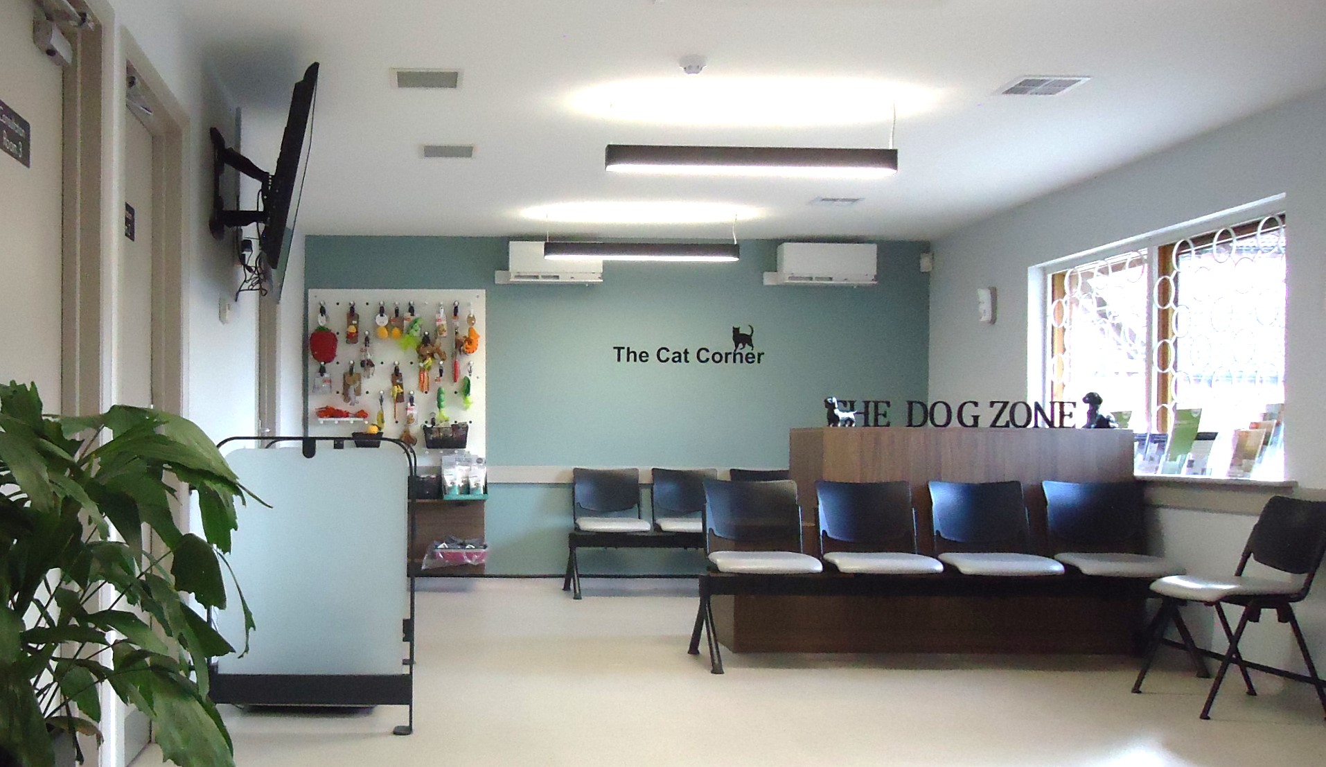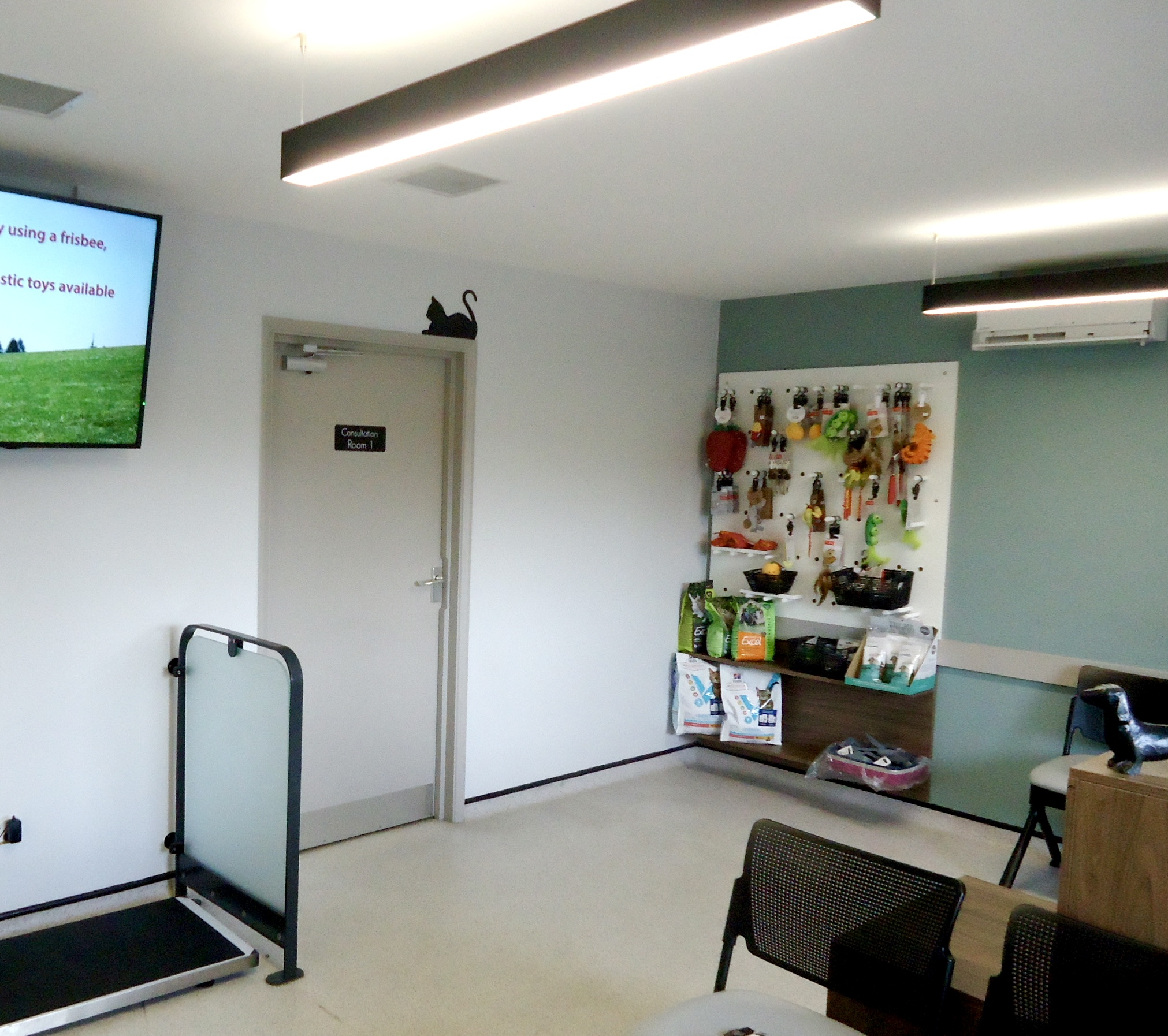 We also designed the waiting area to create a more modern area for clients that was uncluttered and which created two separate areas for cats and dogs to wait.