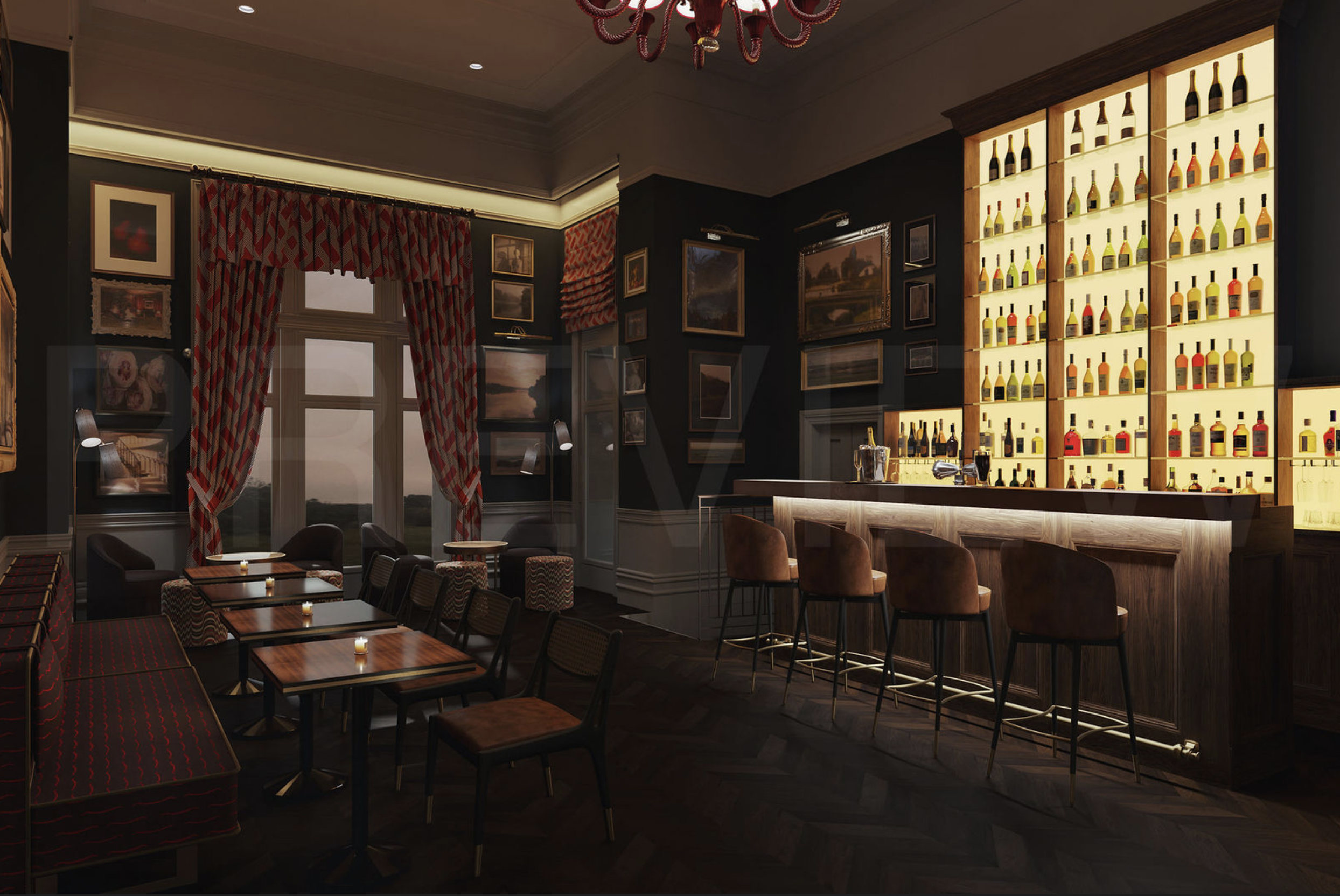 The scope of this stage of the total refurbishment of the hotel included the re-design and refurbishment of the cocktail lounge and bar at the Down Hall Hotel in Bishop's Stortford, Essex.