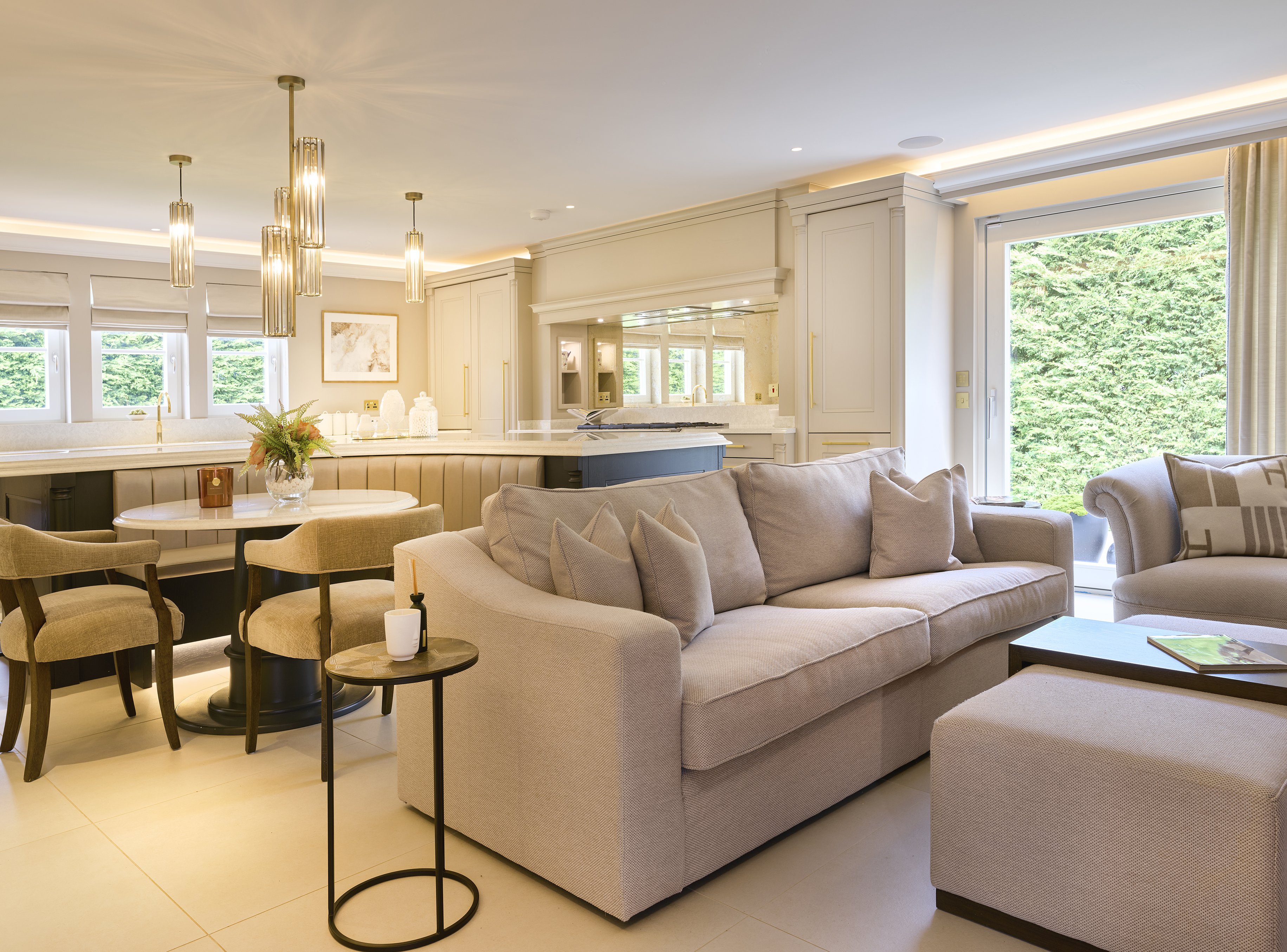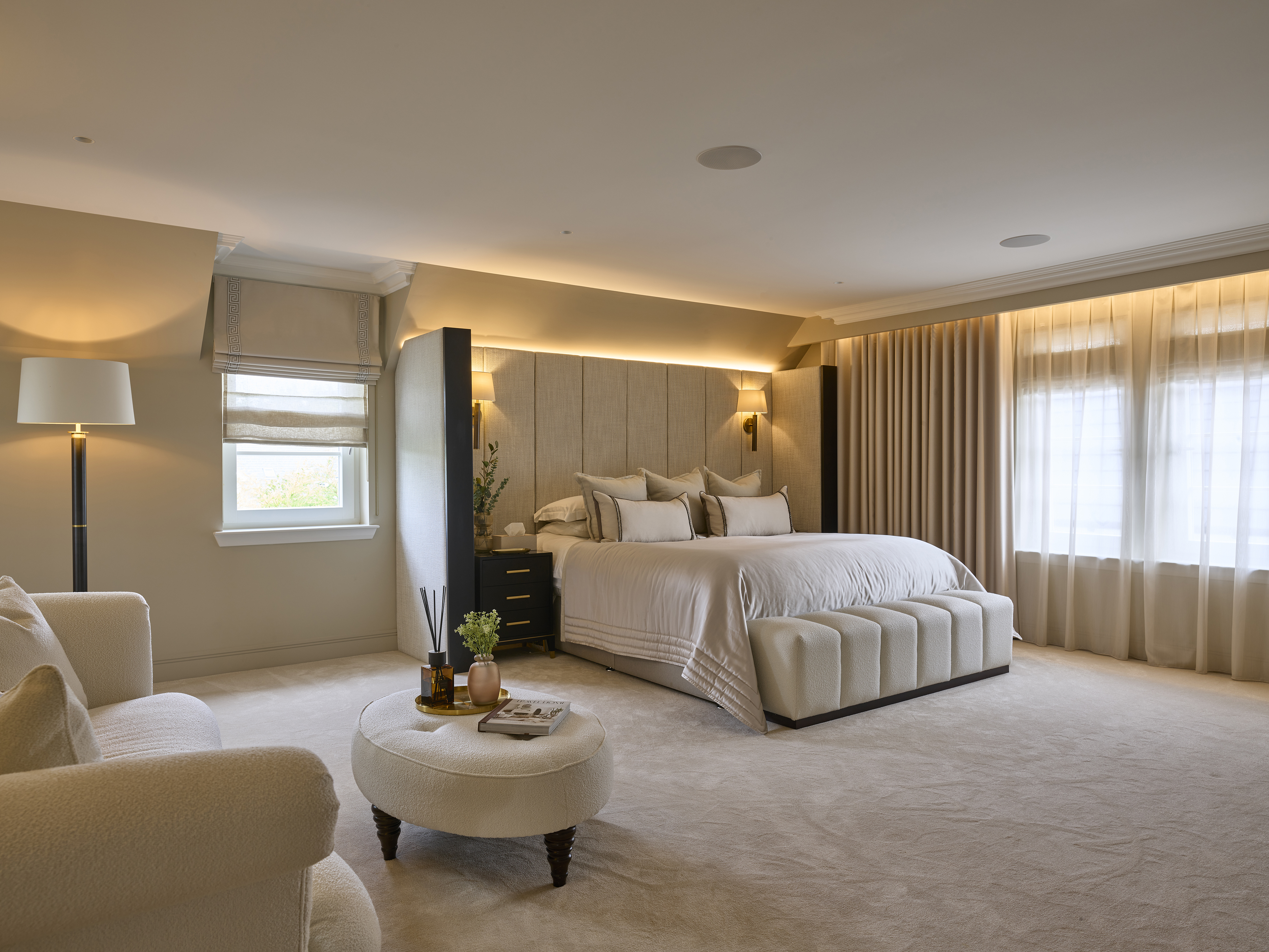 This project was a full refurbishment and extension to existing 6 bedroom property in Scotland. The extension has created a larger master suite and kitchen area. The clients brief was to create a warm, friendly family home with a classic contemporary feel.