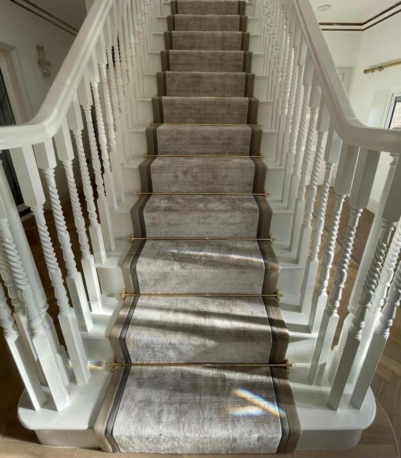The installation of Riviera Homes Monaco carpet in the luxurious Silver Seas colour has transformed this staircase into a modern and elegant focal point.
