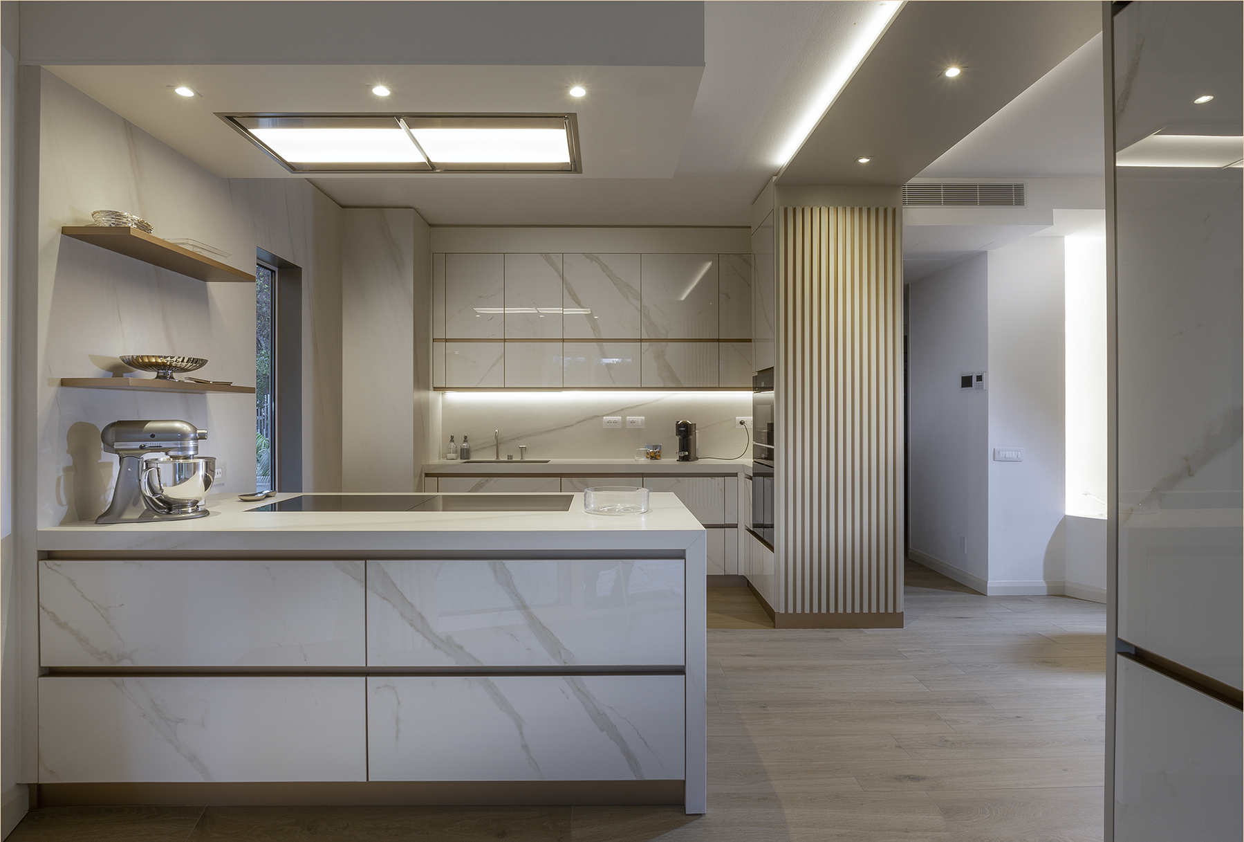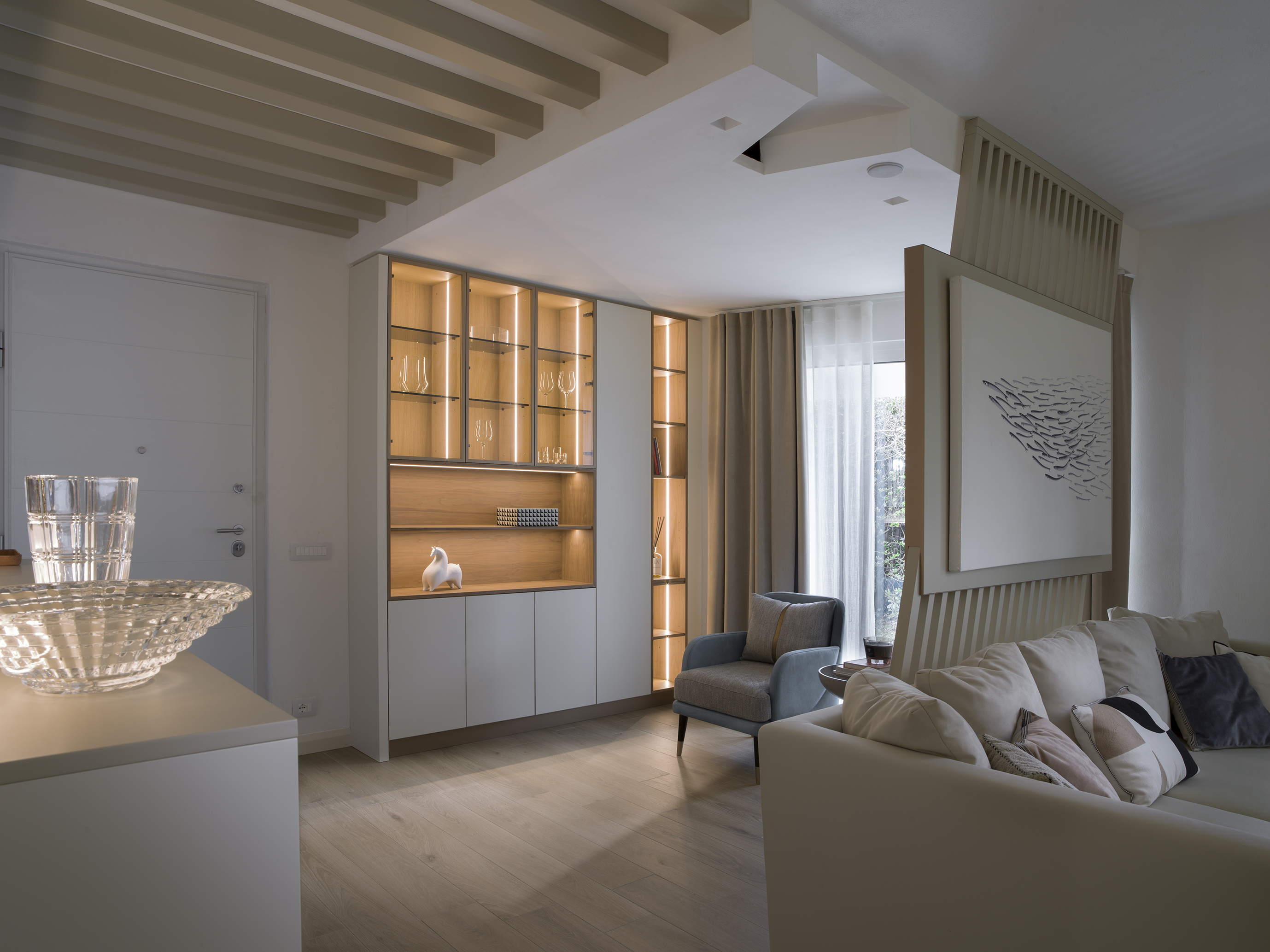 The outcome is a home with impeccable stylistic and colour harmony. Wooden surfaces complement soft fabrics, the various furnishings’ finishes blend flawlessly, and each material selection has been meticulously considered to create environments where a sophisticated yet gentle style can be felt, captivating the eyes and soothing the senses.