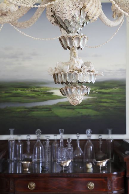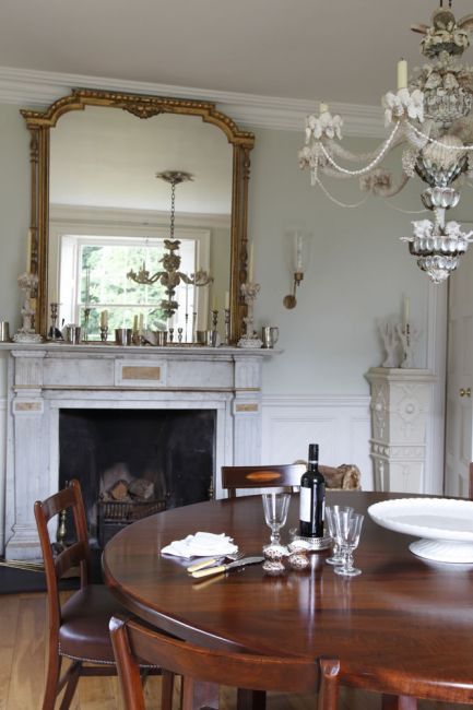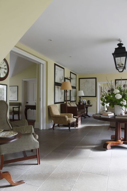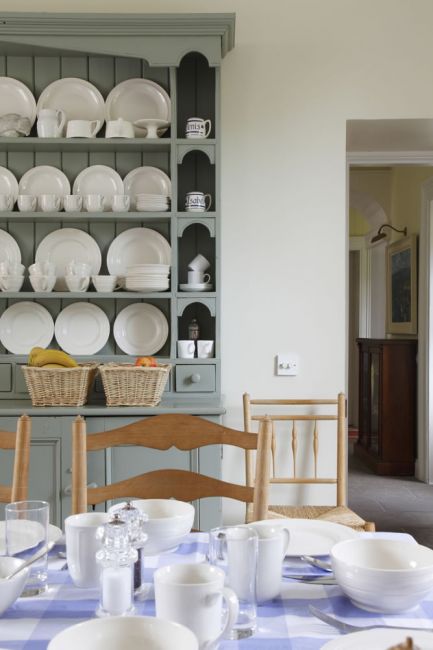 Philippa worked with the owners, who were inspired by the 2002 film The Hours, and wanted a ‘Bloombsury palette’: thus the drawing room colour scheme echoes the pink of the nineteenth century Ushak carpet, the study is a tranquil smoky green and the huge farmhouse kitchen has been done out in Farrow and Ball’s ‘Bone’ and ‘Blue Grey’.