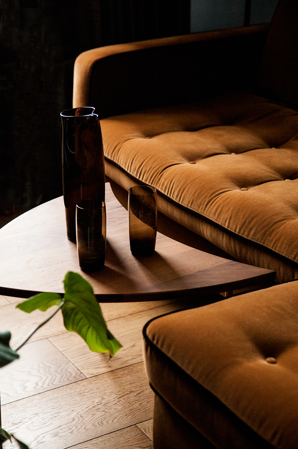 The colour and texture palette are rich, with deep ochres and midnight blues. Beautiful and unique fabrics were specified including plush cotton velvets and woven textiles. We especially loved zooming in on the special details - like velvet trims to the curtains and the contrast piping on the sofa.