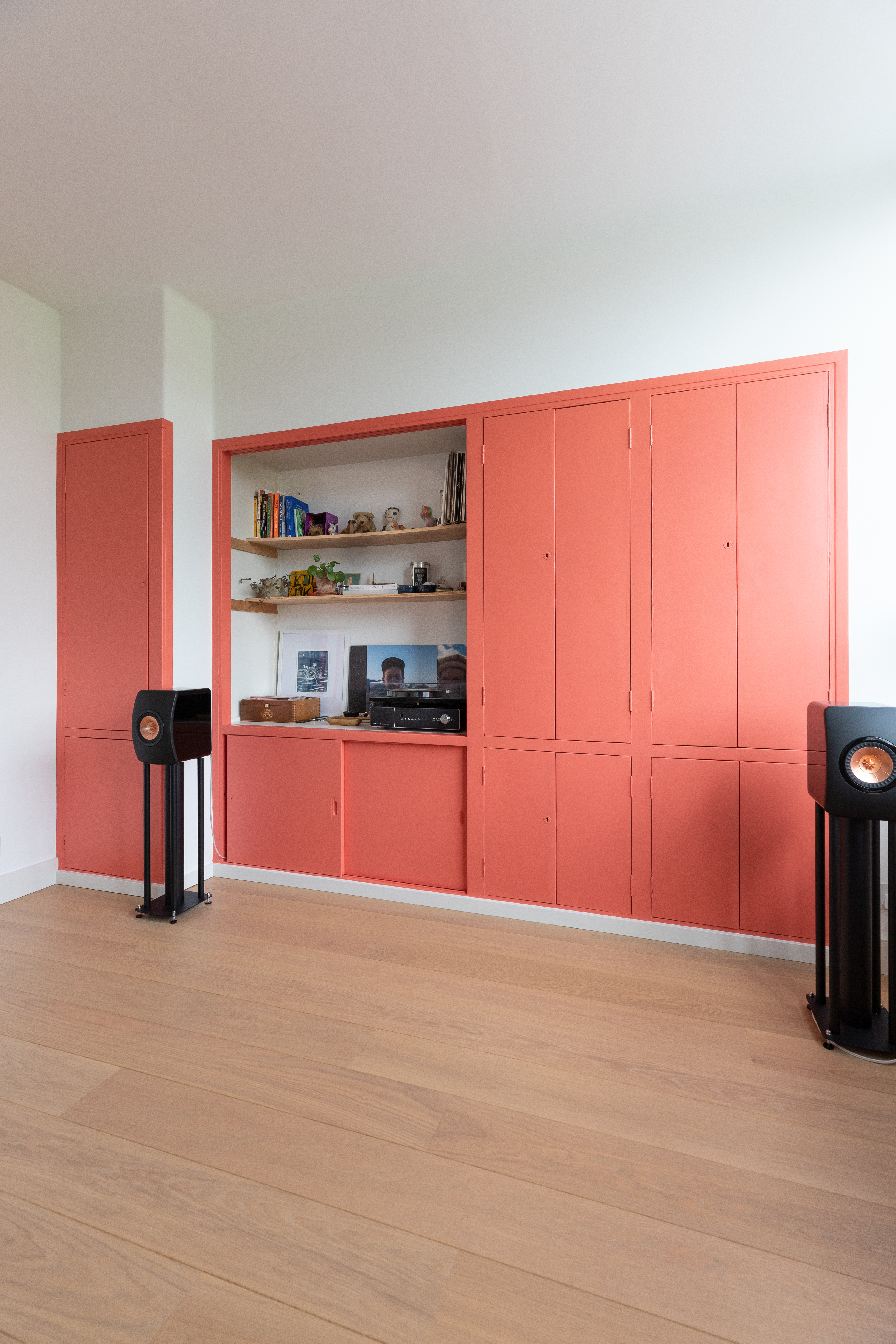 We renovated a second flat of this beautiful Grade ll listed converted hospital building in Hackney. The works created useful new storage space, better insulation, and colourful new finishes.