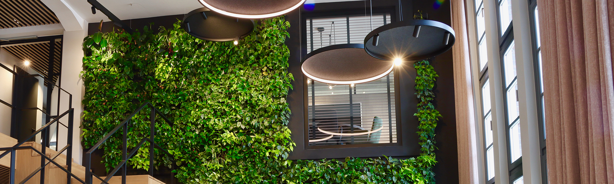 The visual highlight of the lounge area is the plant wall. “We were delighted to be part of this unique project. The integration of plants in the design is something special. We chose the plant wall in the lounge area for its attractive appearance, but also for its positive impact on room acoustics and indoor air quality. The space is open, allowing the fresh air to circulate throughout the building,” says Max Gregg of Gärtner Gregg, who was responsible for the project’s execution. Click here to read more about this project.