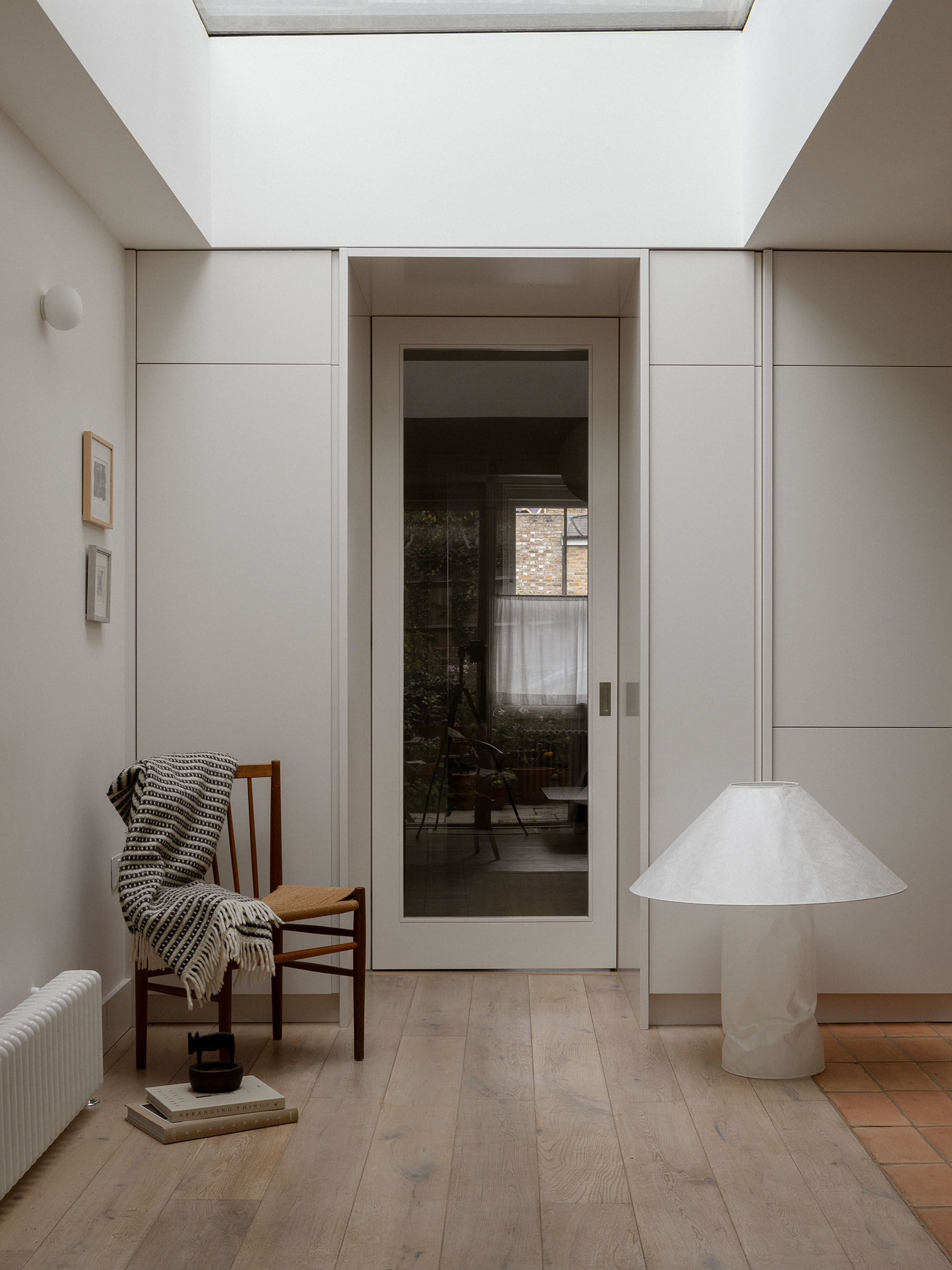 To the rear, the new ground-floor extension facade is finished in brick, complemented by triple-glazed Velfac windows and doors to enhance acoustic and thermal performance. Wood fibre insulation was installed to all extended parts of the house, improving thermal performance while maintaining the breathability of the traditional solid walls.