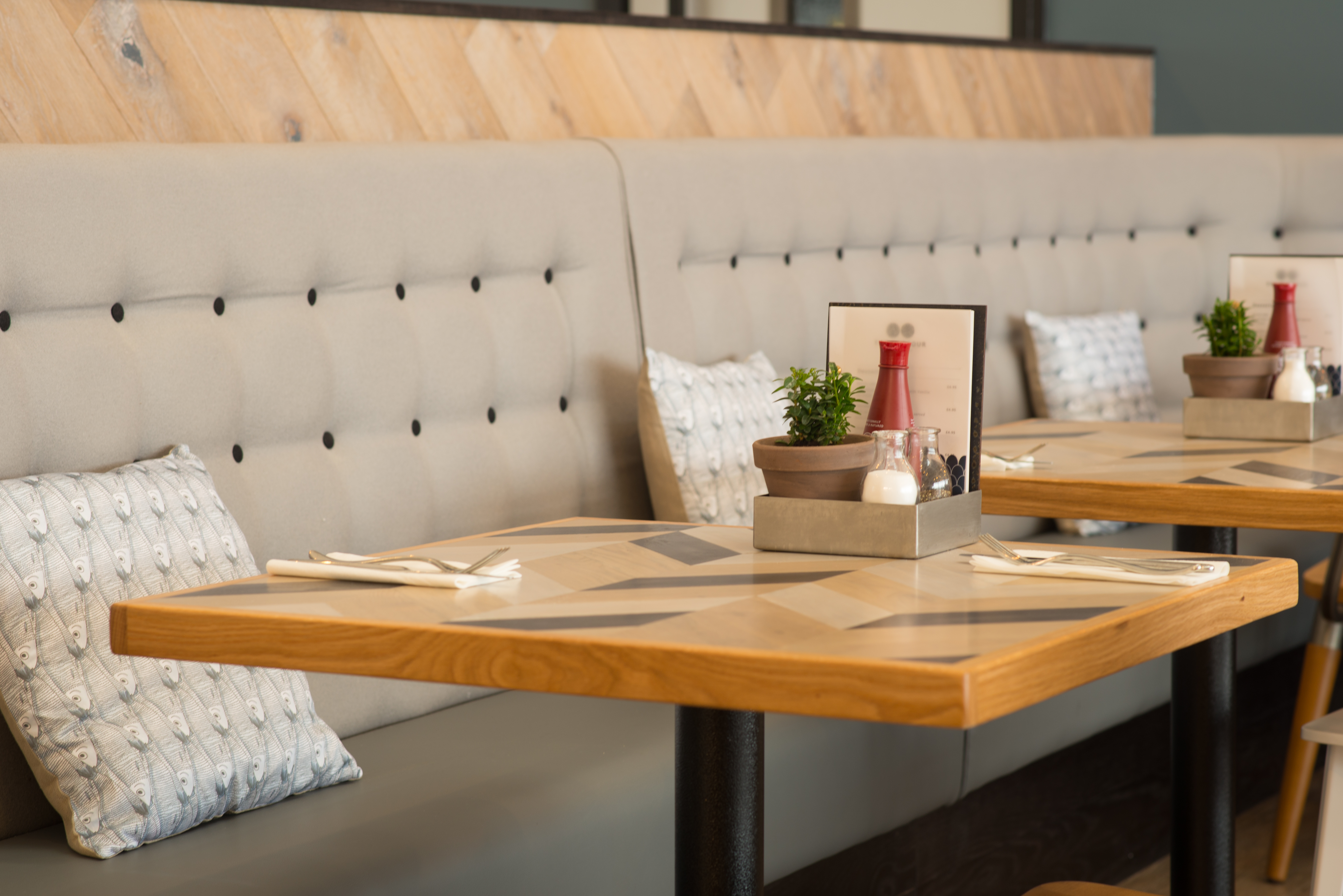 We strove to create a much more welcoming atmosphere for all to enjoy, warming the interiors up with lime washed oak cladding on two key walls, cosy cushions, booth seating and mix of vintage style seating. The restaurant was completely transformed with renewing all elements throughout including the main dining area, bar, servery, state of the art kitchen facilities and smart WC area.