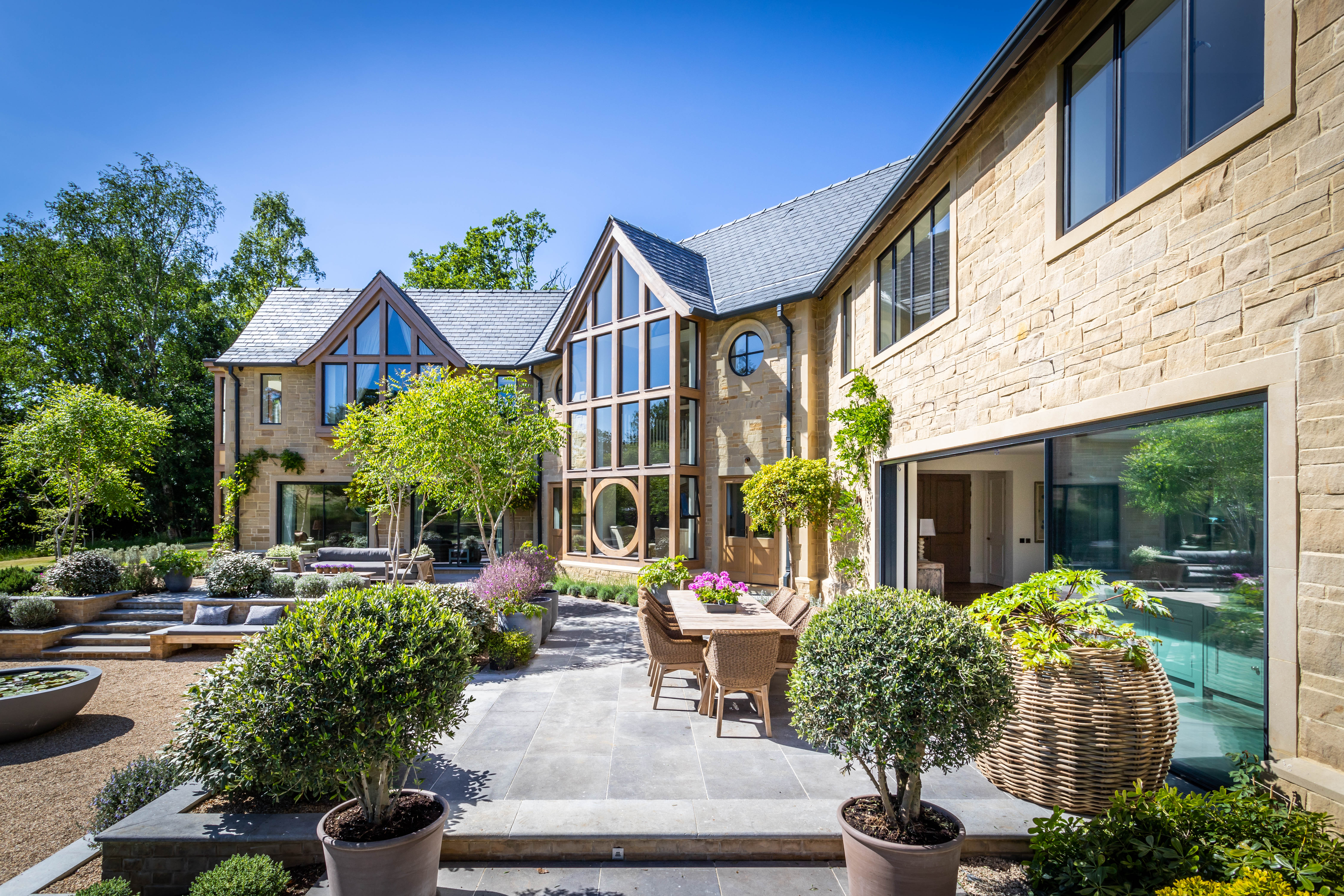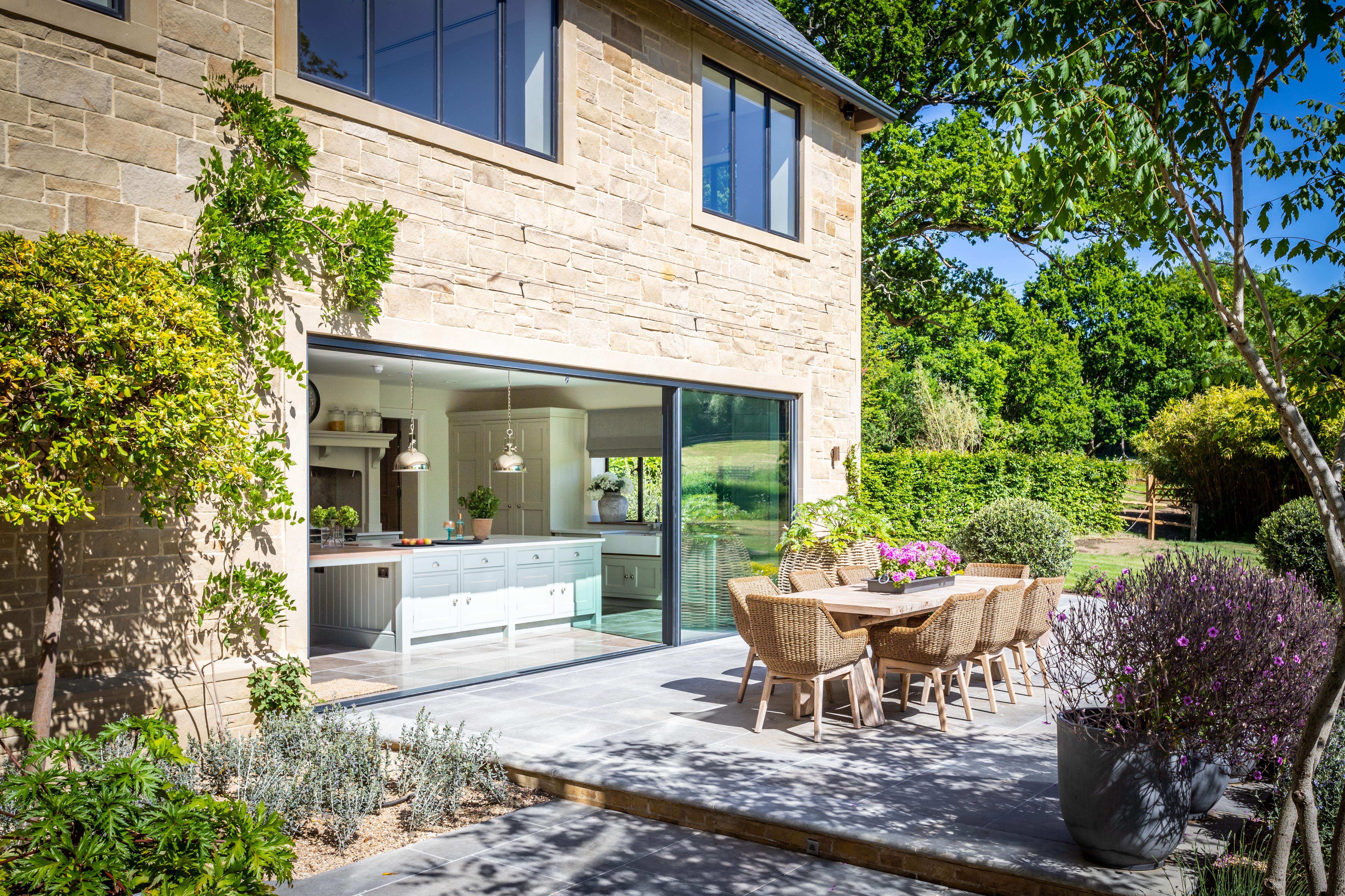 Nestled deep in the English countryside, this stunning gem of a property boasts not only a breath-taking landscaped garden but also a spacious, open-plan kitchen perfect for entertaining. The exterior, with its different zones for relaxing, dining and soaking up the sun, features Ca' Pietra's Kimmeridge limestone in a tumbled and etched finish. Cool and contemporary, it’s the perfect stone to weather the elements as well as enhancing the natural beauty of the home’s exterior façade.