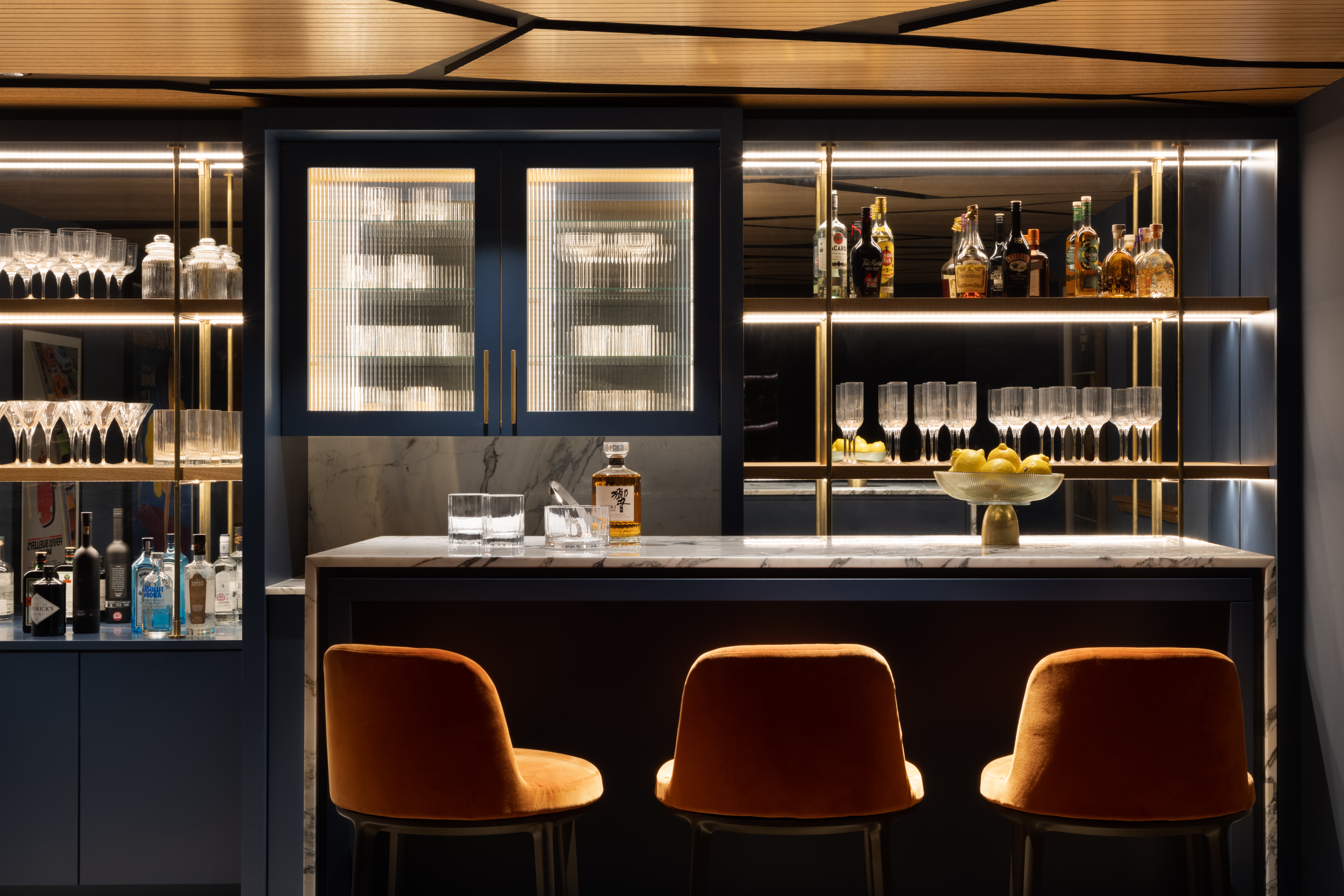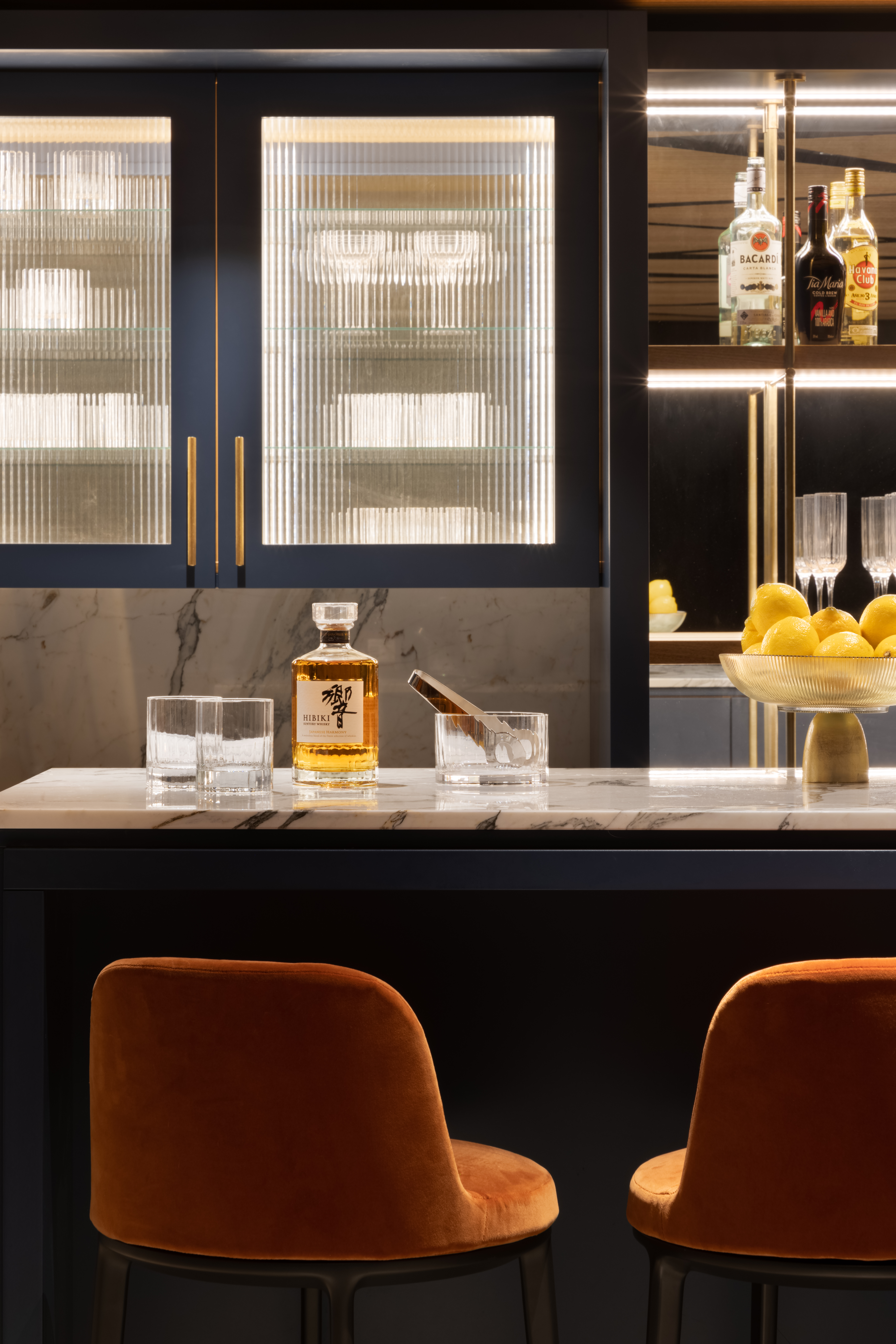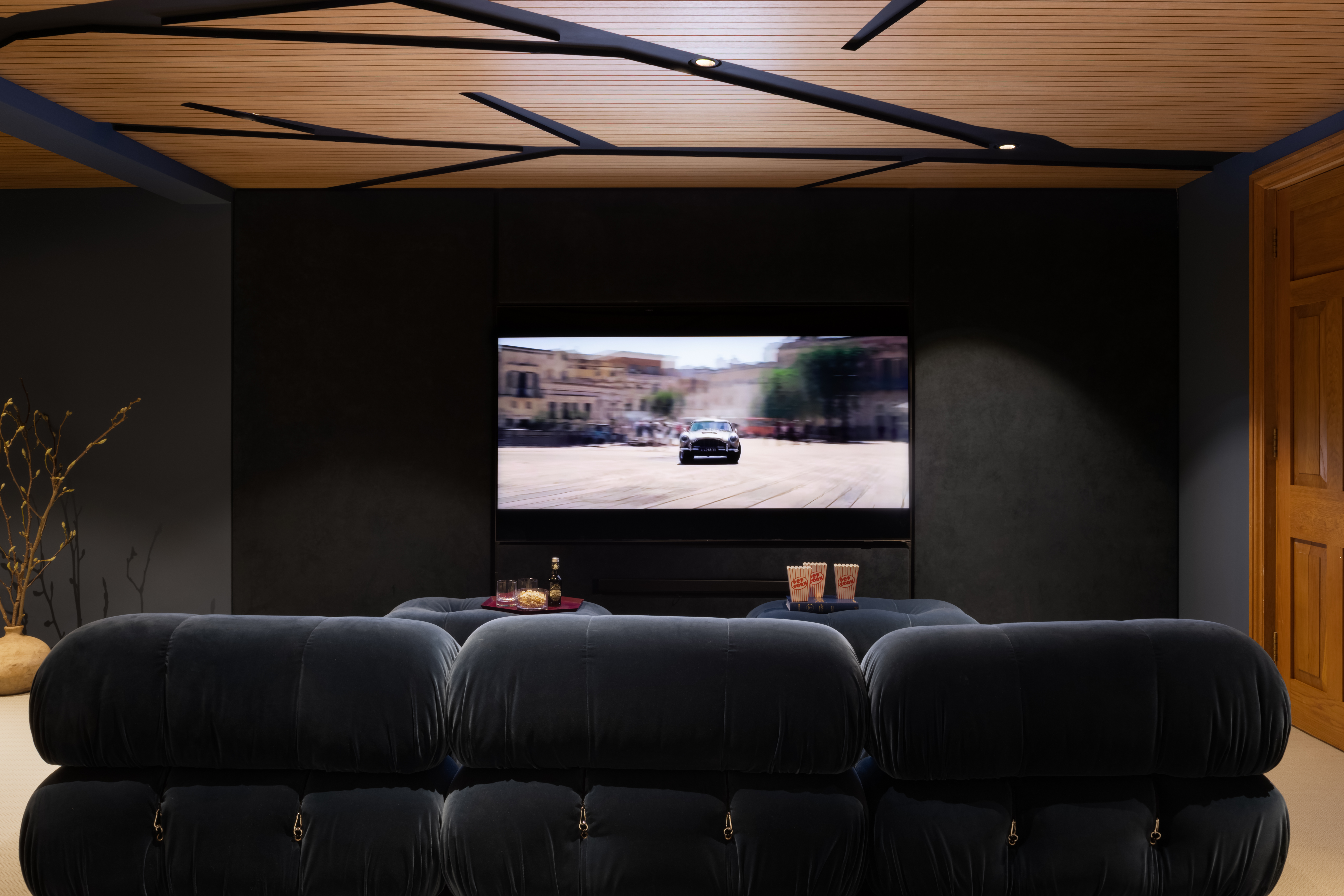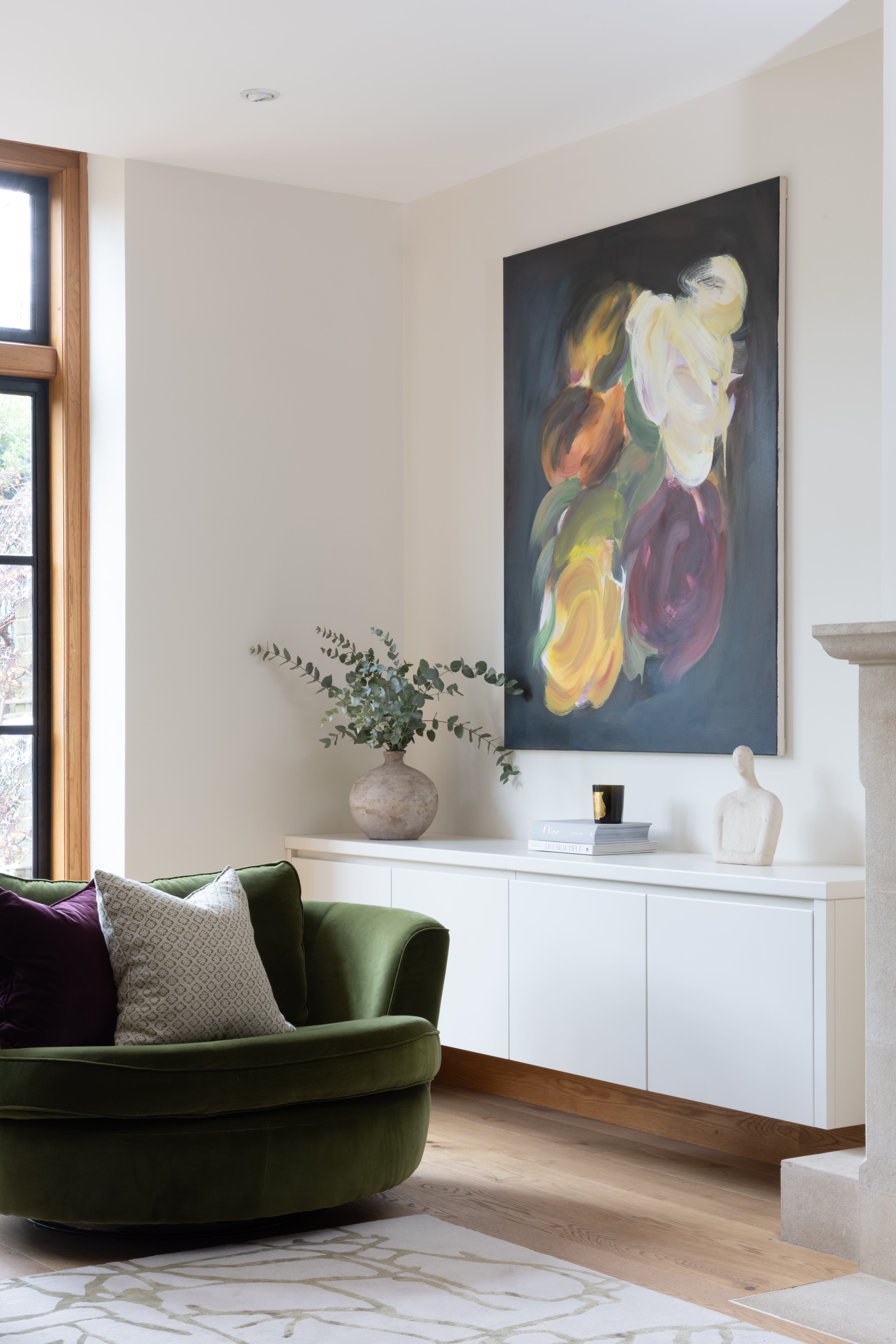 Working in collaboration with an architectural practice we designed key rooms of this beautifully situated residential home, with a brief to create the interiors reflecting the call for nature from the exterior of the home, we designed schemes, sourced furniture, desgined joinery with a feel for nature in terms of materials, colours and textures. We also transformed a lower ground floor series of rooms to create a cinema/ family room for the whole family to enjoy, entertain and chill