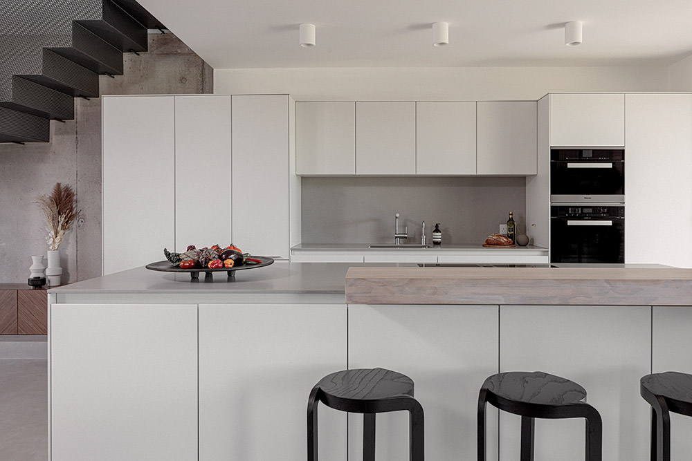 Wood is pivotal in introducing warmth and tactile elements to the interiors. Purposefully leaving some concrete exposed as a nod to the building's structure, the slight imperfections in the material add a unique texture, making it a focal point of the space. Soft, natural fabrics were strategically chosen to enhance the minimalist architecture, creating a warm and inviting atmosphere.