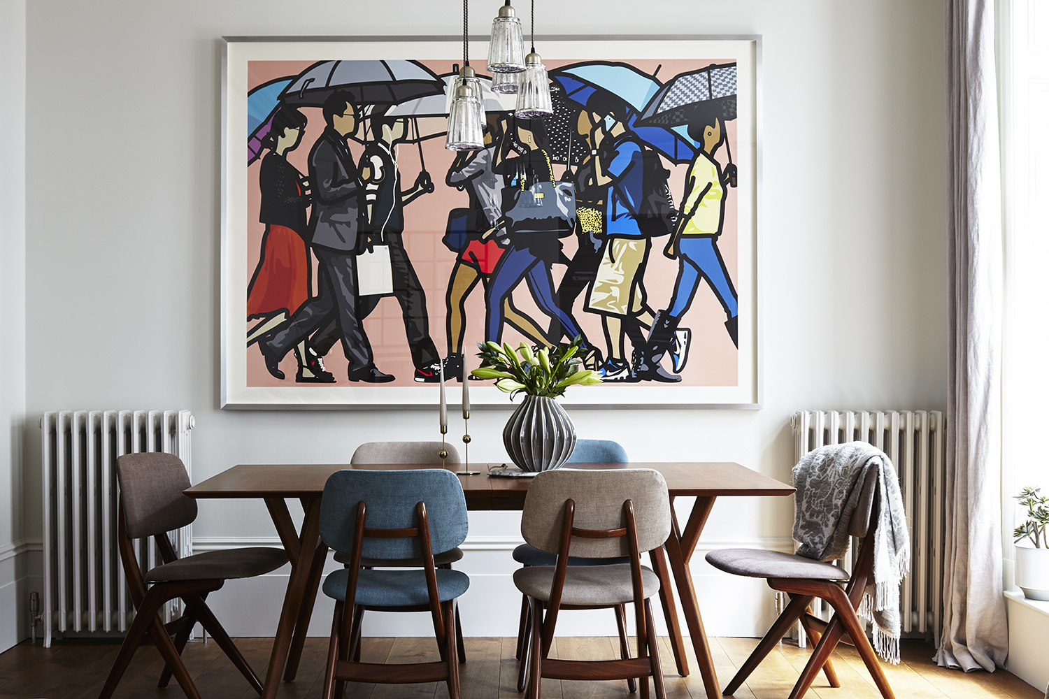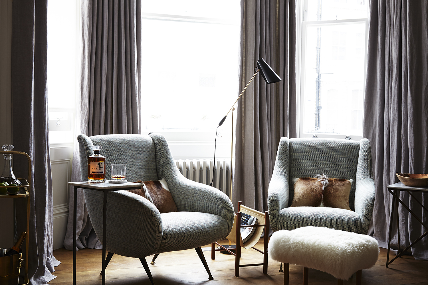 The interior dressing, decoration and styling of a large, light-filled glamorous apartment in the heart of Kensington in London.