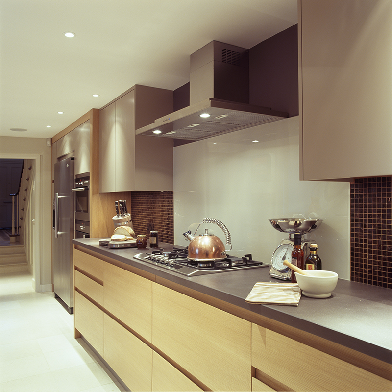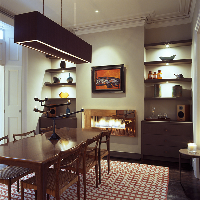 This elegant Kensington townhouse required the reception rooms and kitchen to create a stunning contemporary welcome for guests, whilst providing a laid-back and carefully designed home for the owner. The completed interior combines colour, pattern, lighting, storage and detailing to give a sophisticated feel and provides the busy professional owner with a perfect refuge at the end of a busy day and a warm space for entertaining.