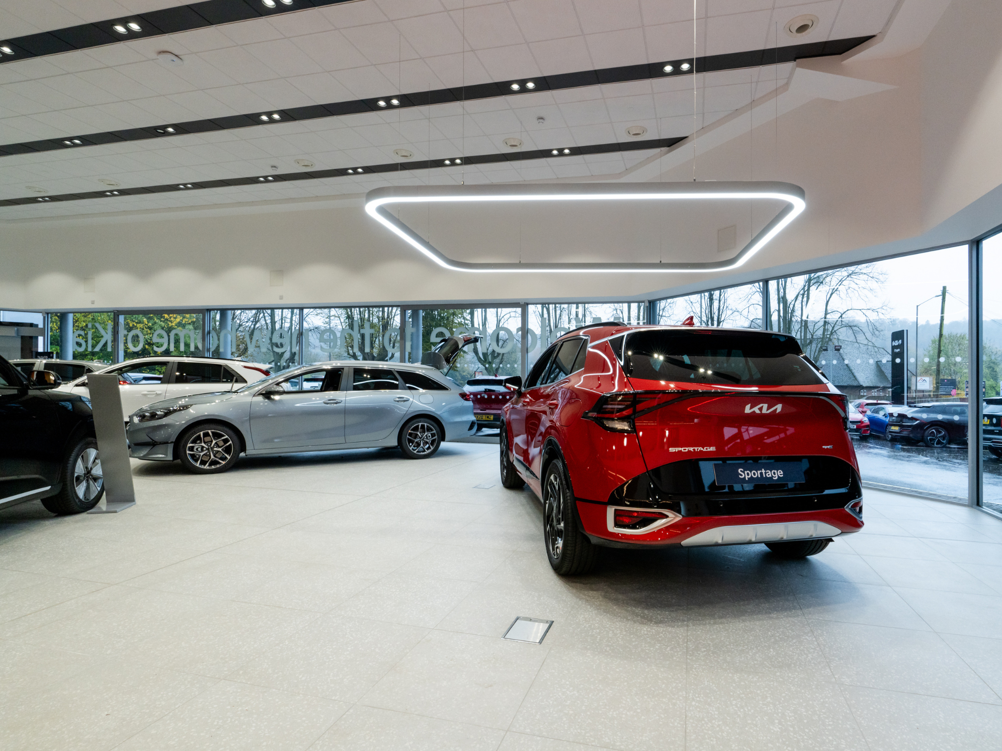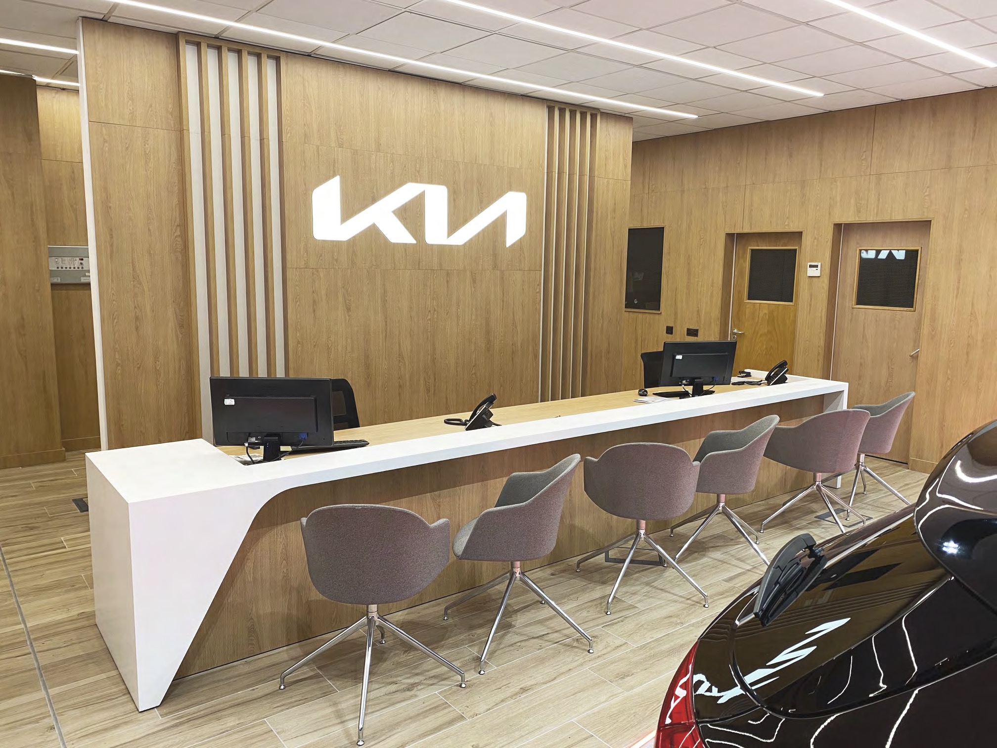 The new lighting design needed to embody the new Kia brand identity, ensure optimal lighting to highlight the features and aesthetics of the cars on display, create a welcoming ambience for Kia customers as well as incorporating energy efficient lighting.