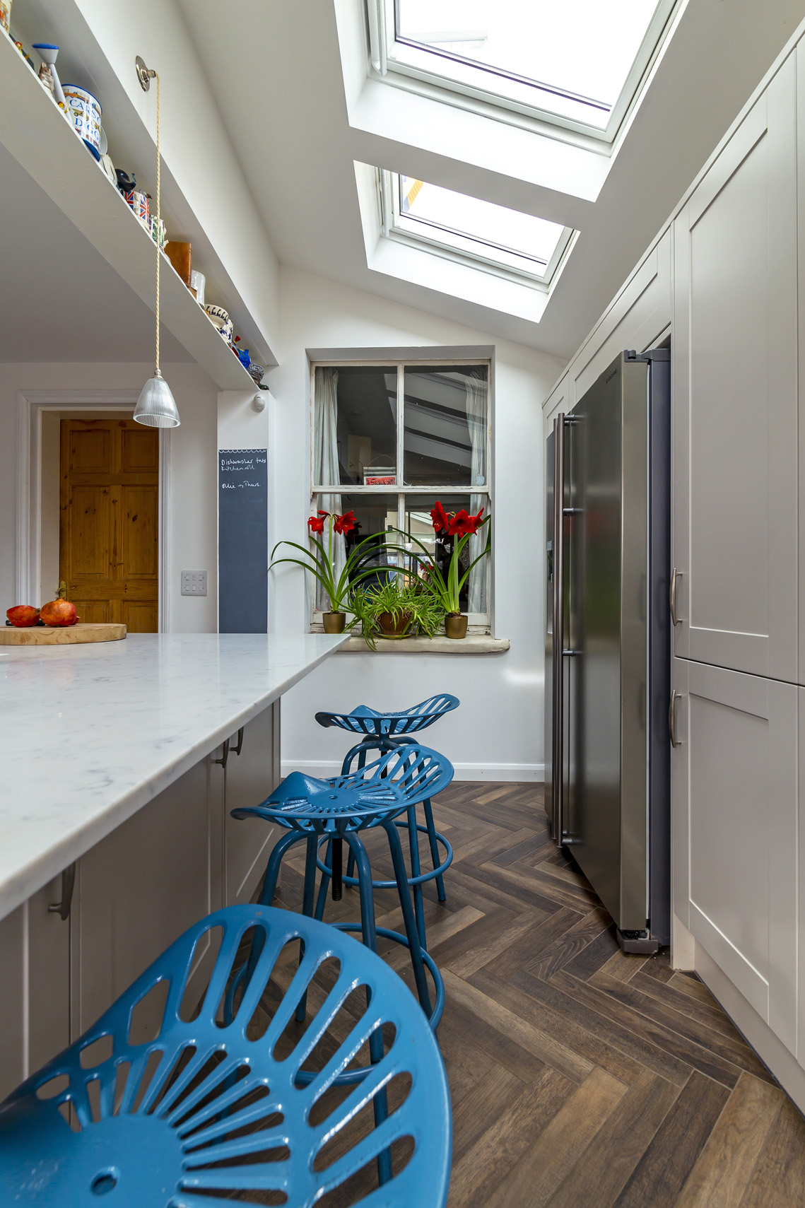 As well as sourcing and installing the key elements, we helped the client to incorporate existing furniture pieces into her new kitchen, including original Ercol chairs and external window and sill. The result is a seamless integration of old and new.