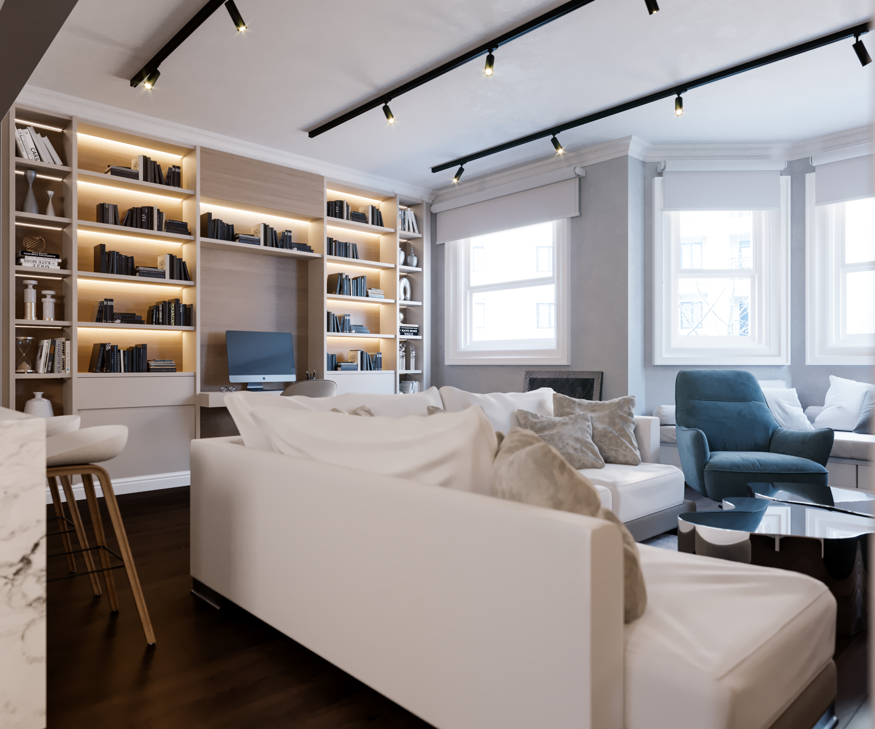 We have recently completed a modern and welcoming duplex project situated in close proximity to Harrods. Our company offered an extensive range of services, encompassing interior architecture, layout reconfiguration, bespoke joinery, furniture, fittings, and coordination with various consultants such as property management, structural engineers, and mechanical engineers. Furthermore, we obtained the required permits to execute structural modifications, prioritizing meticulous attention to detail and cultivating a cozy ambiance throughout the entire space.