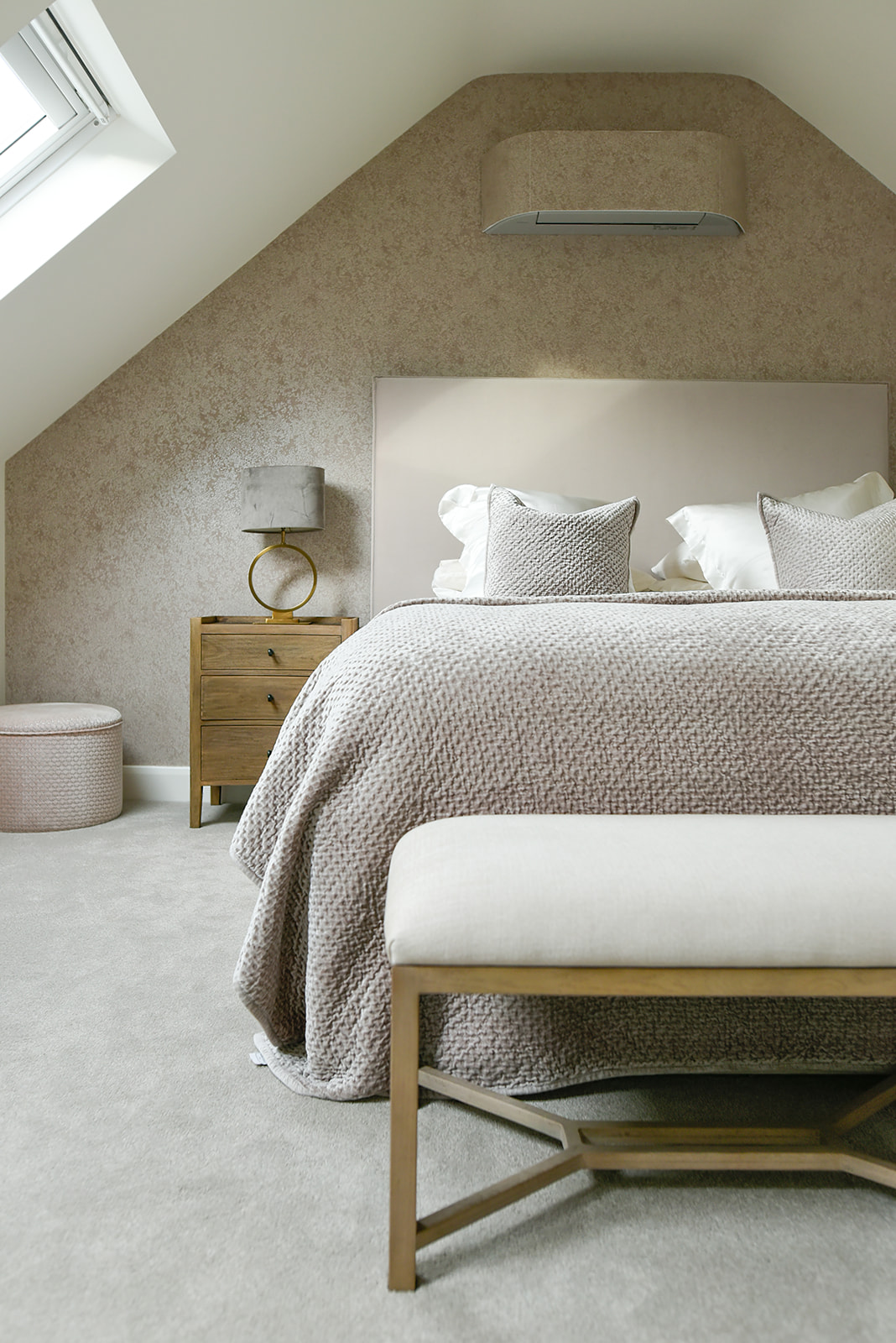 A stunning four-bedroom family home nestled in the highly sought-after area of Cobham. After recently downsizing, the homeowners wanted to bring a fresh, personal touch to their new build. A soft, inviting colour palette was introduced to add warmth throughout the space. By seamlessly blending indoor and outdoor elements, the kitchen was transformed into a light-filled, welcoming hub of the home. Natural materials in the furniture and lighting—such as the elegant Porta Romana bamboo pendant—further elevated the space with texture and character.