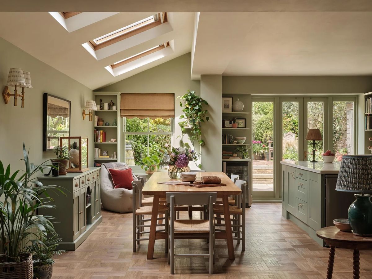 Based in North London, our client approached Nefarious with a clear and thoughtful vision for the ground floor of their Victorian home. Their strong sense of style and decisive input made the design process a true collaboration — they felt like an extension of the Nefarious team. The concept for the kitchen was inspired by the charm of a potting shed, bringing the outdoors in with a calming palette of green hues. A bespoke partition was introduced between the snug and the living room, offering both privacy and sound insulation. In the living room, a soothing blend of blues was layered with bold patterns to create a tranquil oasis that feels both vibrant and serene.