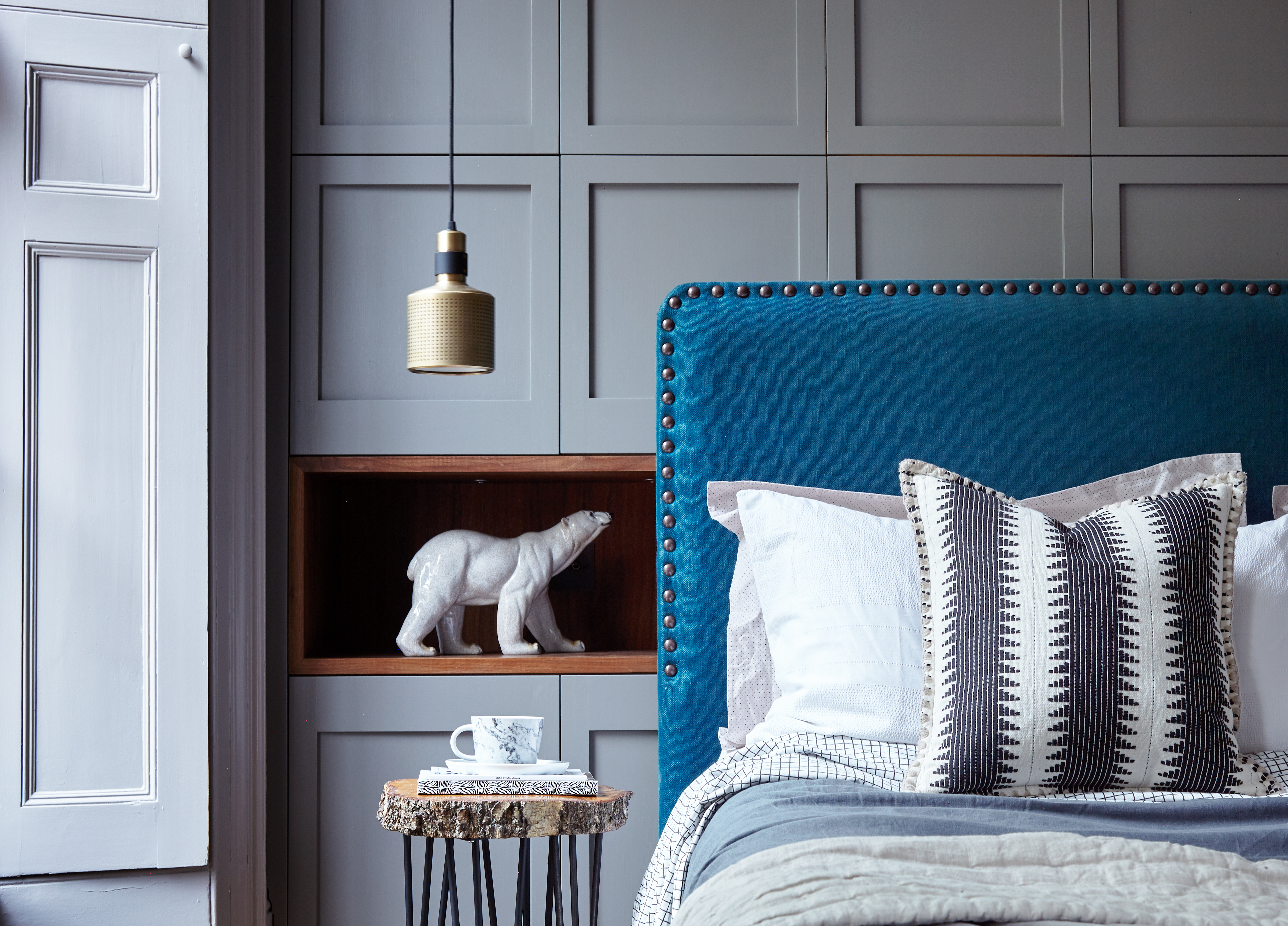 The concept, planning, compliance, technical design, specification, furnishing and styling of a grand Master Suite in a Grade II Listed Islington Townhouse. Set across the whole first floor, the suite comprises a huge master bedroom and en-suite.