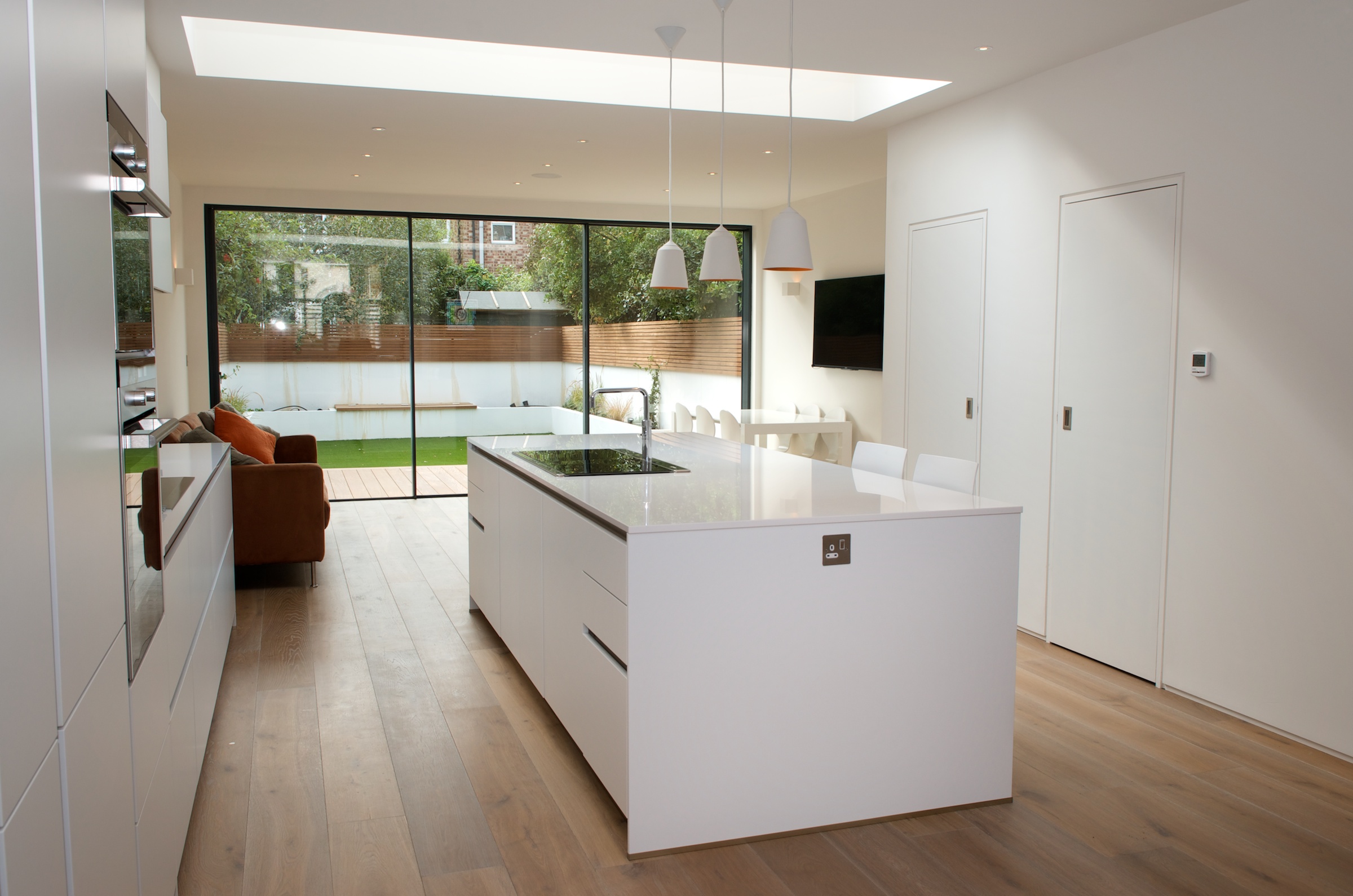 The space planning was the starting point to create the maximum use of the space before planning permission was obtained. The finishes were carefully chosen and kitchen quotes compared to get the best supplier. Lighting was discretely integrated into the scheme. Budgets were monitored to achieve the look required without unnecessary expense. The design has a timeless simplicity which the client was delighted with.