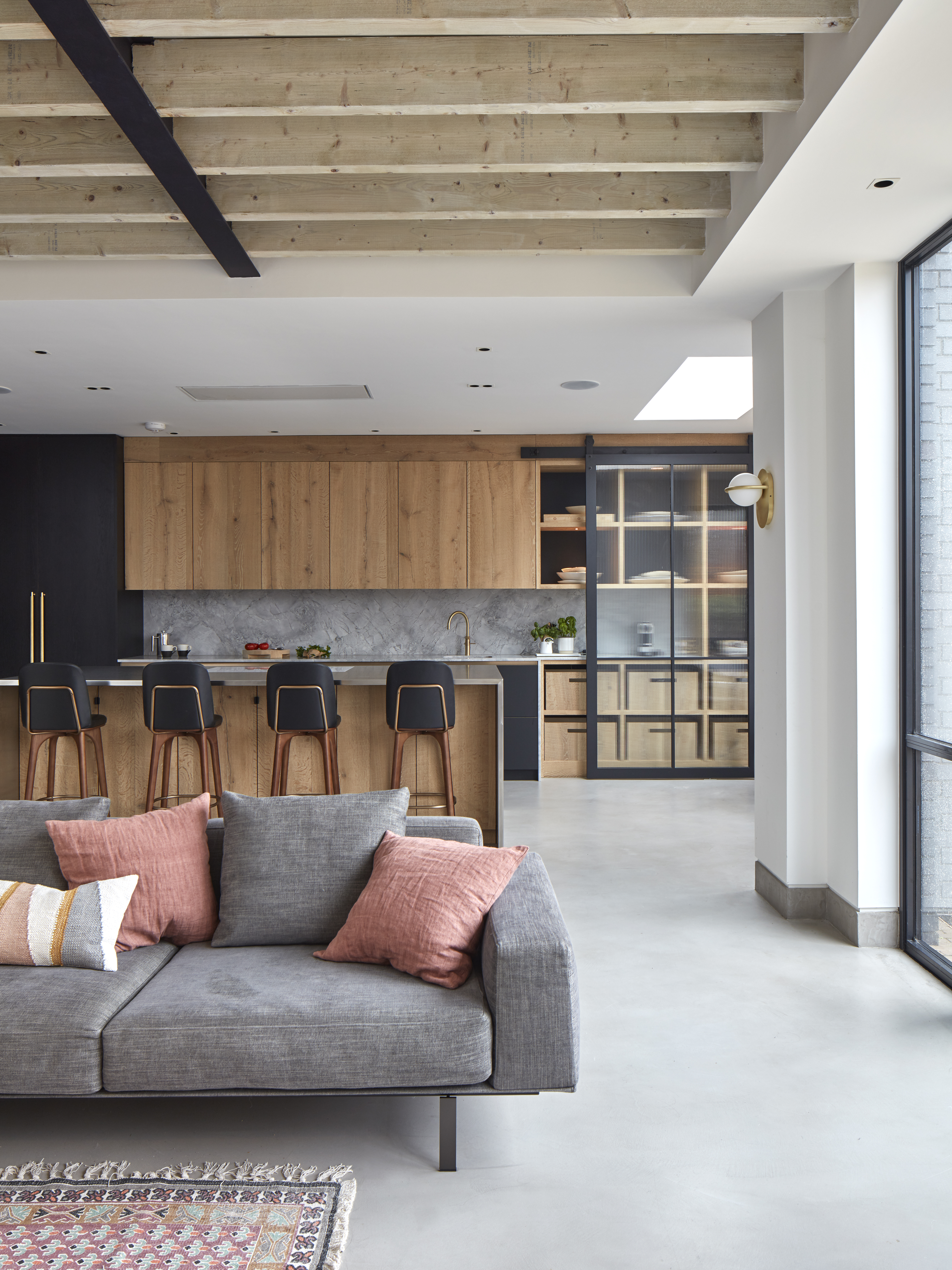 Overall the house still holds its period feel and proportions at the front, but a crisp contemporary edge permeates all the spaces.