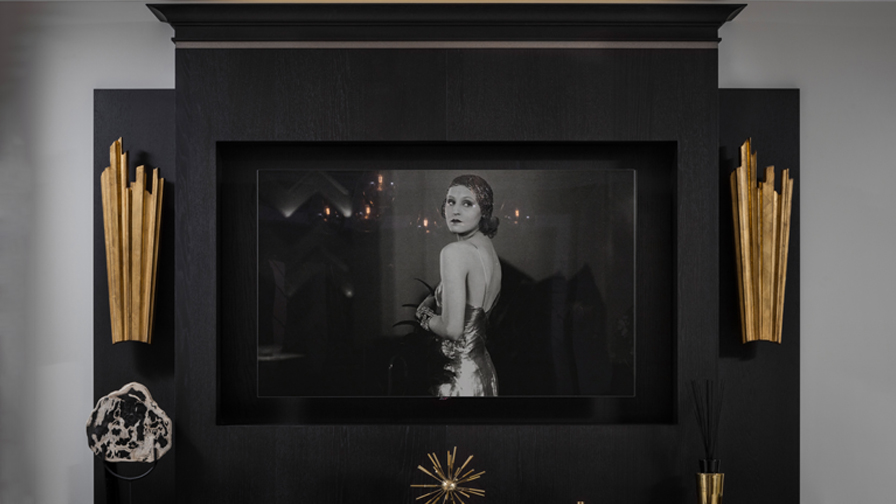 Sub-Zero and Wolf appliances feature throughout the kitchen. The Wolf Dual Fuel Range Cooker with iconic red control knobs is paired with a Wolf Pro Wall Hood with infrared heat lamps to keep meals at the perfect temperature until ready to serve. The custom mirrored doors create a dramatic yet elegant statement on either side of the Sub-Zero Wine Cabinet, concealing the individual Sub-Zero fridge and freezer. Layered framing of timber, metallic bronze and Statuarietto Extra marble surrounds the Sub-Zero appliances, continuing the stepped design narrative and forming the focal point of the room. As a functional family kitchen, our clients required a media area with a television that could be viewed from the dining table. The custom media furniture disguises the television to create a feature of this wall. Dark timber, Art Deco details and bespoke integrated lighting continue the design narrative from the kitchen to create one cohesive environment.