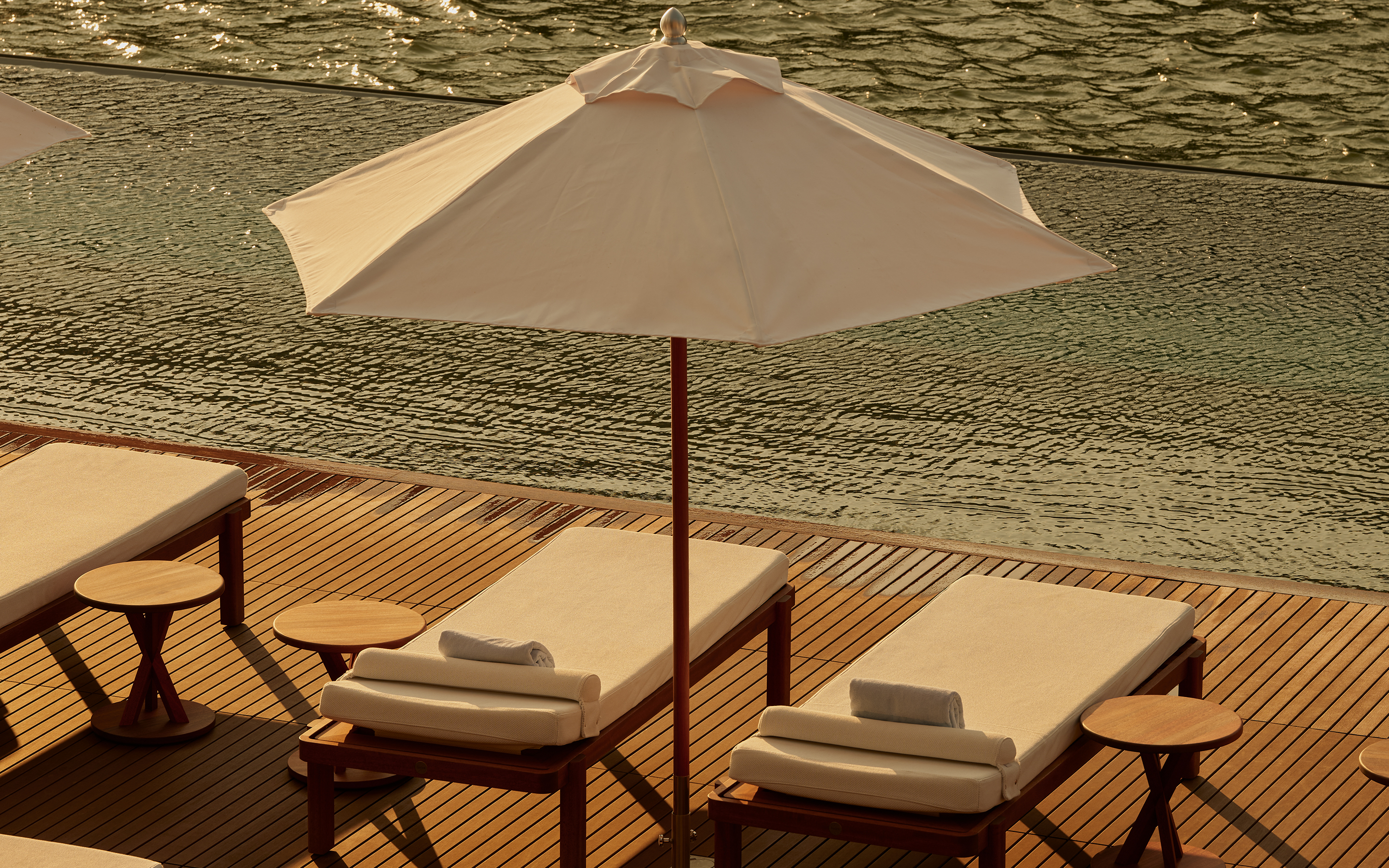 Mandarin Oriental, Lago di Como is a sanctuary of calm, nestled on the sunny forest shores of Lake Como. 19th Century Villa Roccabruna is at the heart of the resort and skillfully renovated to create a sense of modern Italian elegance with a subtle oriental charm. Idyllic lake views can be enjoyed from the resort‘s restaurants, and by new floating pool designed by Swiss architects Herzog & de Meuron. Seora’s customised Monaco collection was selected including single and double cabana sunloungers in Loro Piana fabric.
