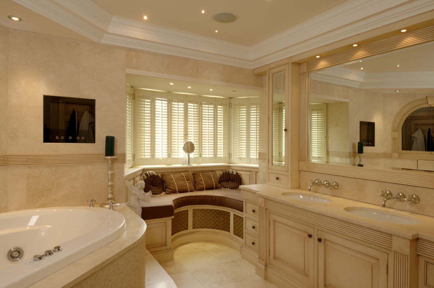 The bathroom was hand painted with a limestone floor and vanity tops which carried through to the dressing room.